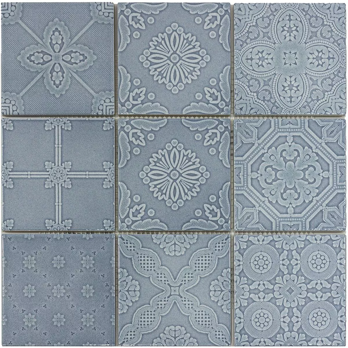 Obudź urok minionych dni dzięki naszym ceramicznym płytkom mozaikowym Rivabella Relief Blue. Te płytki podłogowe, ścienne i mozaikowe o rozmiarze kamienia 97x97 mm nadadzą Twojemu salonowi, kuchni i łazience wygląd retro. Błyszcząca powierzchnia i reliefowy wzór tworzą niepowtarzalną atmosferę. Dzięki grubości 6,5 mm i szerokości spoiny 3 mm są wytrzymałe, a jednocześnie sklejone z siatką i gotowe do montażu.