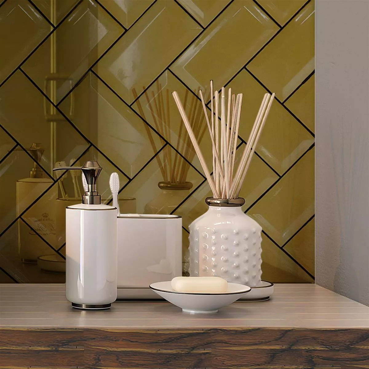 Dopuszczenie do stosowania w obszarach mokrych sprawia, że są one praktycznym wyborem w każdym środowisku. Dostępne pojedynczo umożliwiają kreatywne aranżacje ścian, a ich wysoka jakość wykonania i wygląd zapewniają ponadczasowy połysk. Stwórz stylową atmosferę w swoich pokojach dzięki Heliopolis Facette Gold.