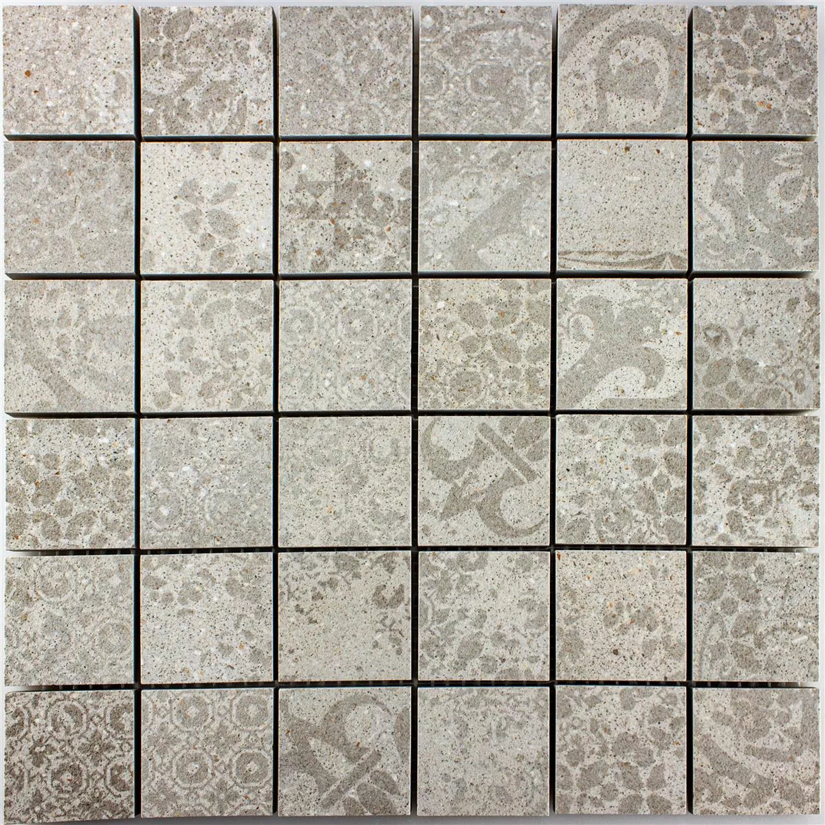 Dzięki rozmiarowi kamienia 48x48 mm i całkowitemu rozmiarowi 29,8x29,8 cm na matę w formacie kwadratowym, płytka Eylem idealnie nadaje się do eleganckich i uporządkowanych wzorów układania. Grubość 10 mm zapewnia dodatkową stabilność i trwałość.