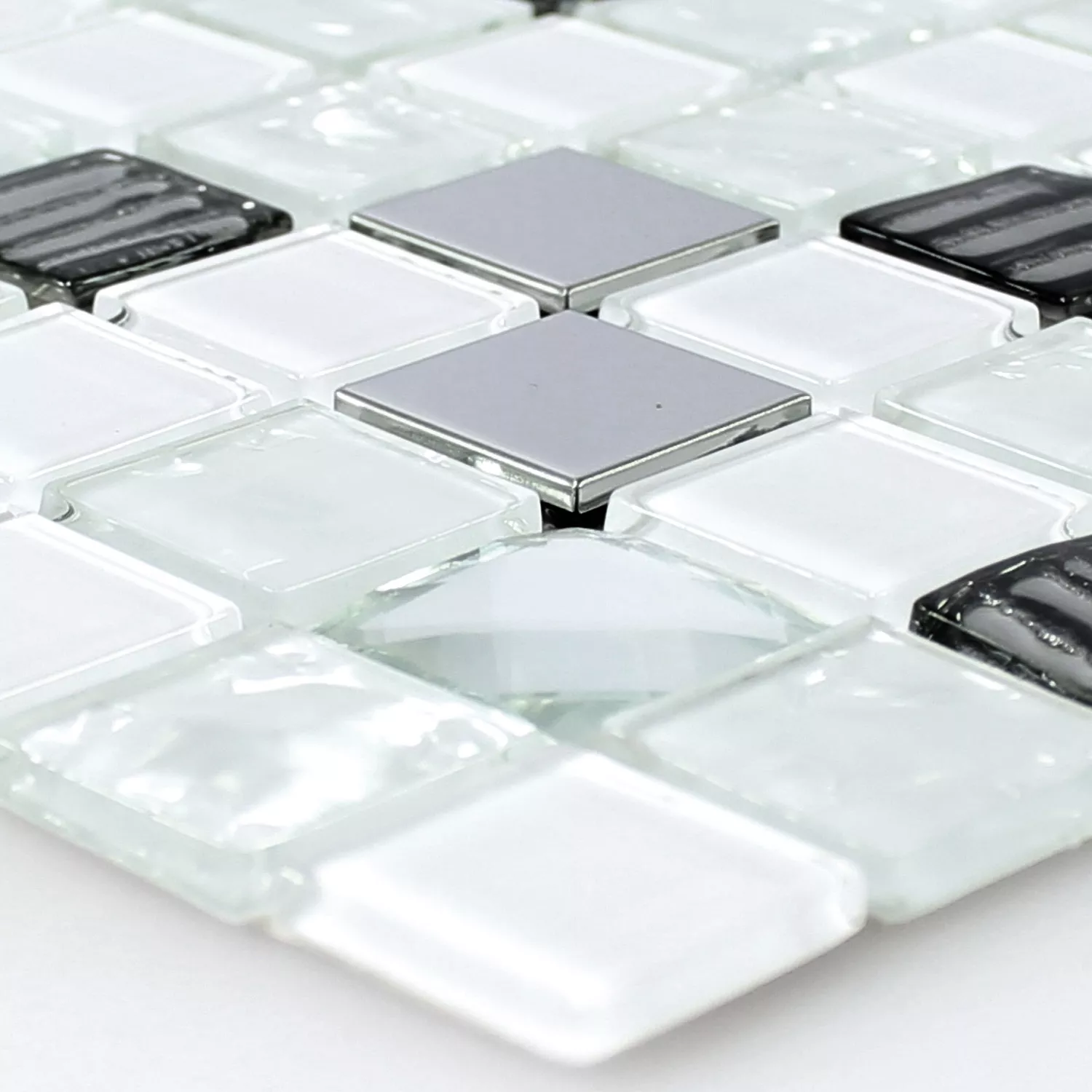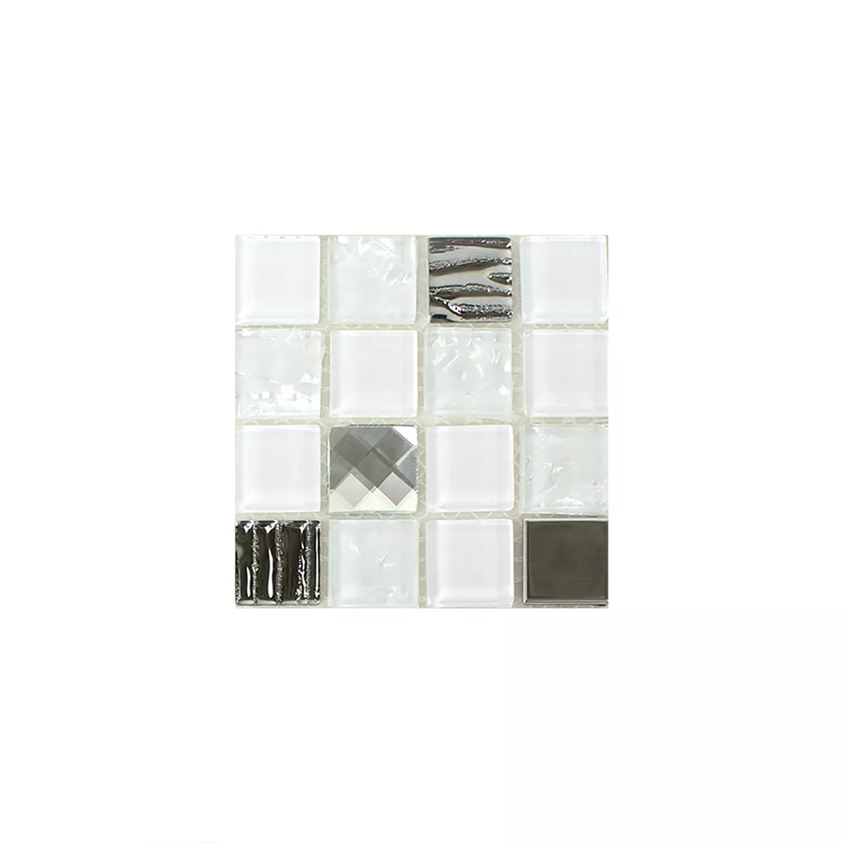 Model din Sticlă Oțel Inoxidabil Mozaic Amasya Autoadeziv Alb Argint