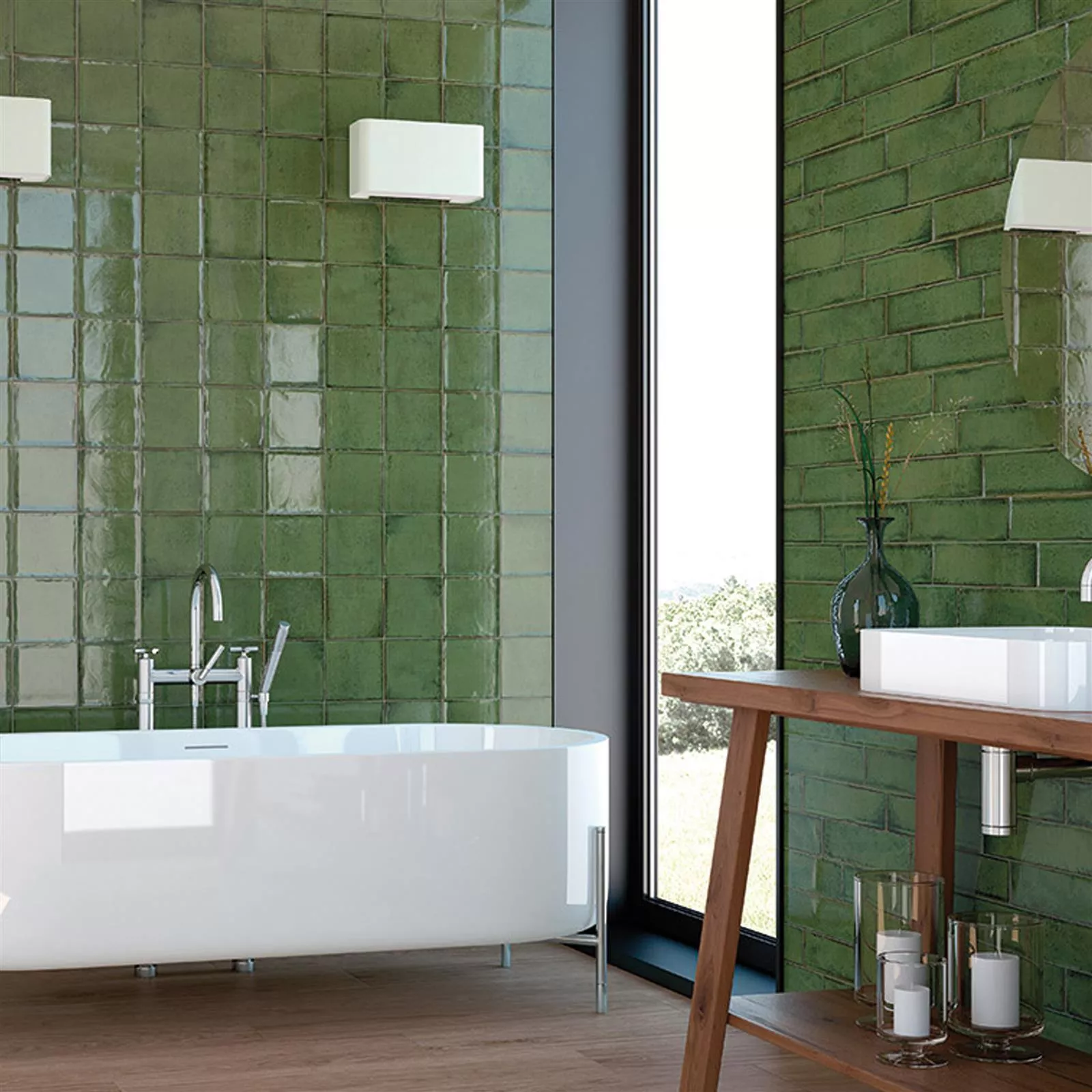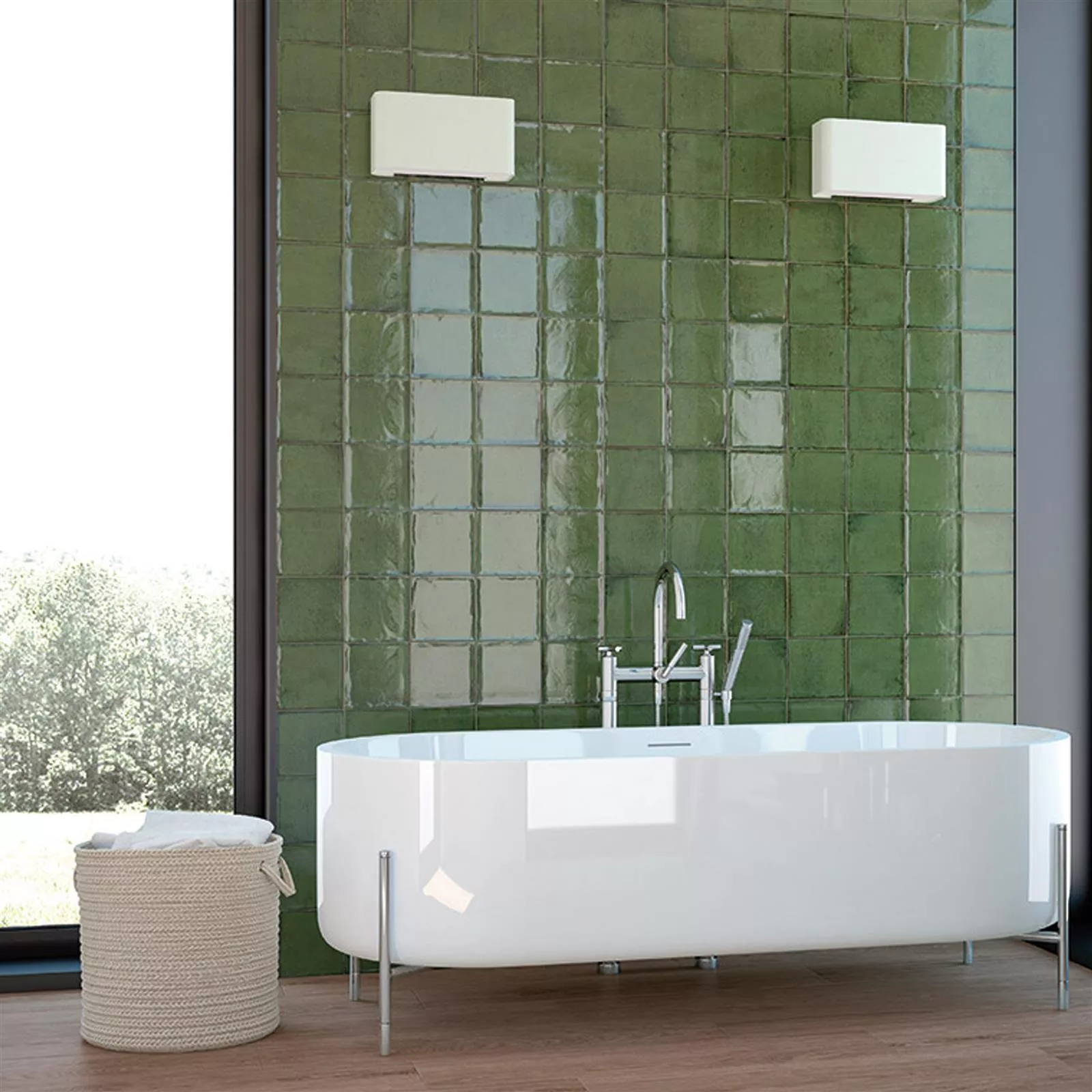 Model Plăci Ceramice Pentru Pereti Maestro Ondulat Strălucitor Verde Măsliniu 15x15cm