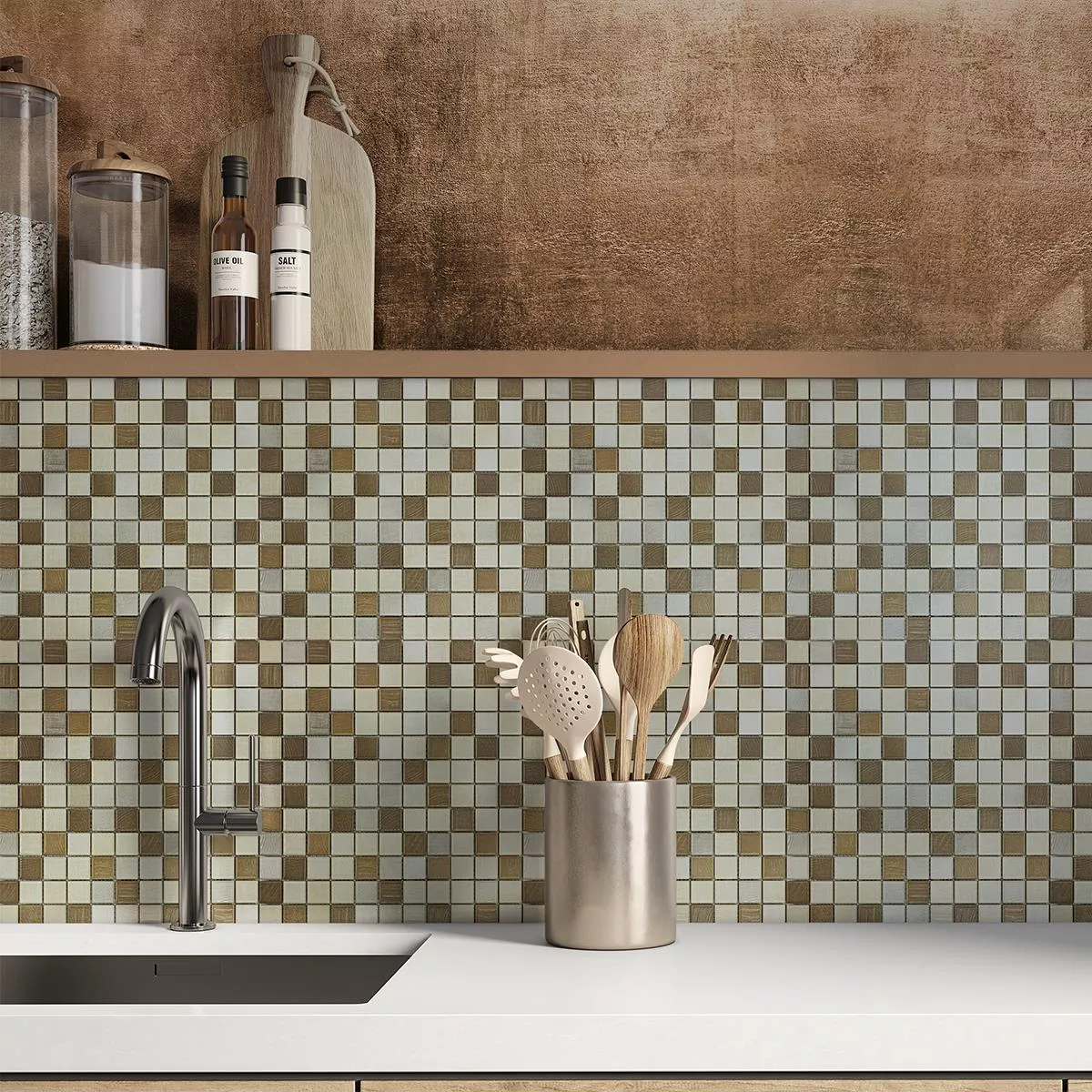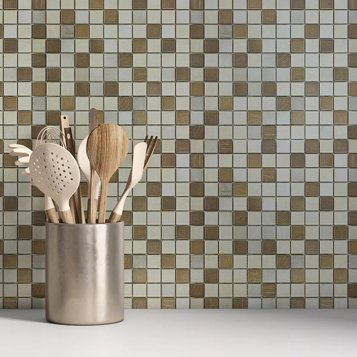 Lățimea rostului de 2 mm asigură un aspect uniform, atractiv și subliniază caracterul elegant al culorii maro-bej. Mozaicul Luminara combină aspectul elegant al lemnului cu proprietăți robuste, oferind o soluție de durată și estetică pentru o gamă largă de aplicații.