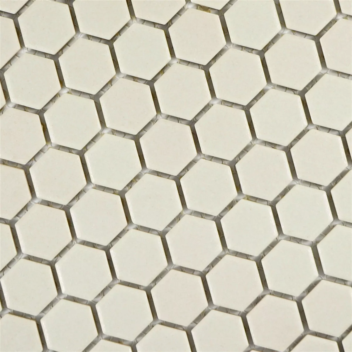 Sample Ceramic Mosaic Tiles Hexagon Zeinal Unglazed Light Beige R10B