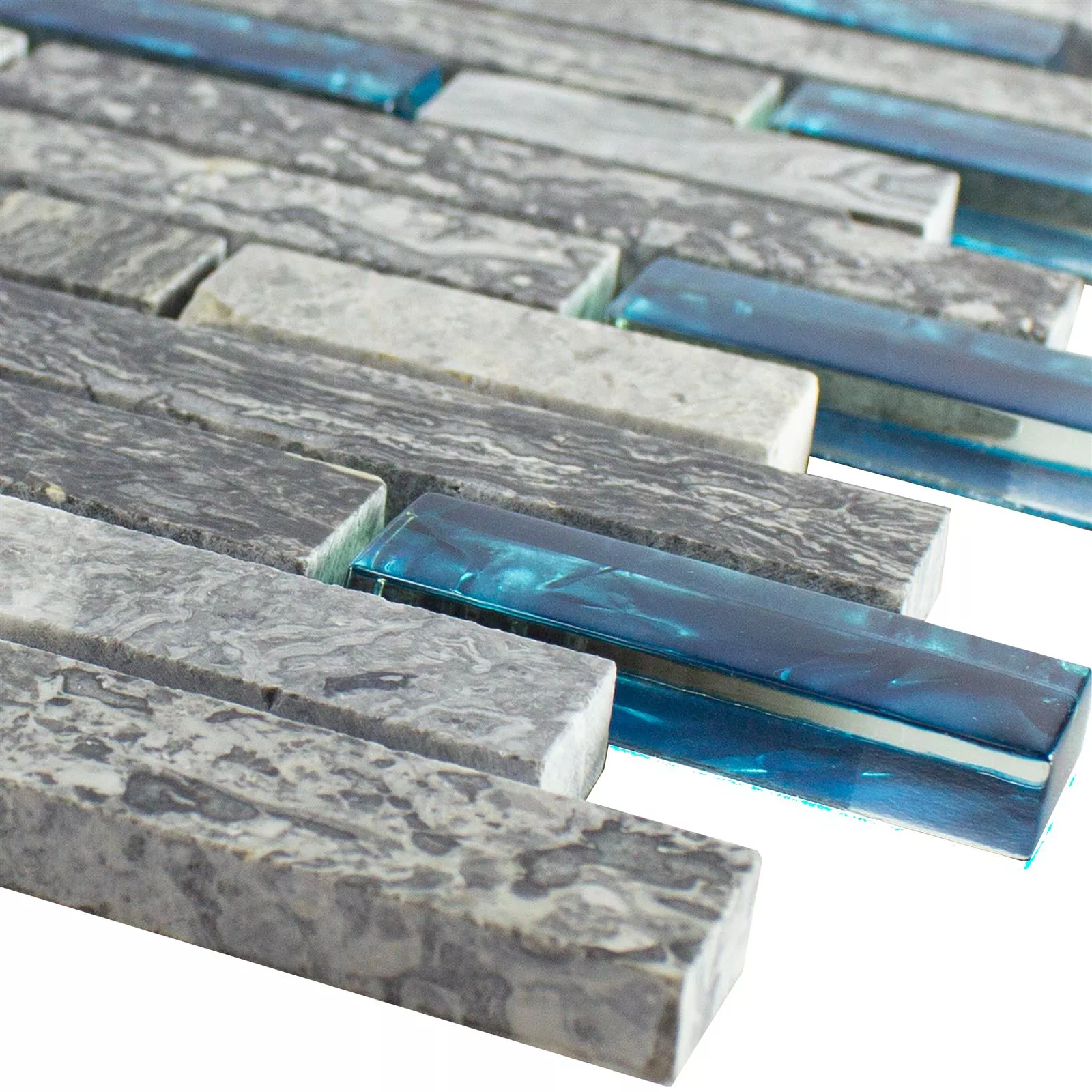 Sample Glass Mosaic Natural Stone Tiles Manavgat Grey Blue Brick