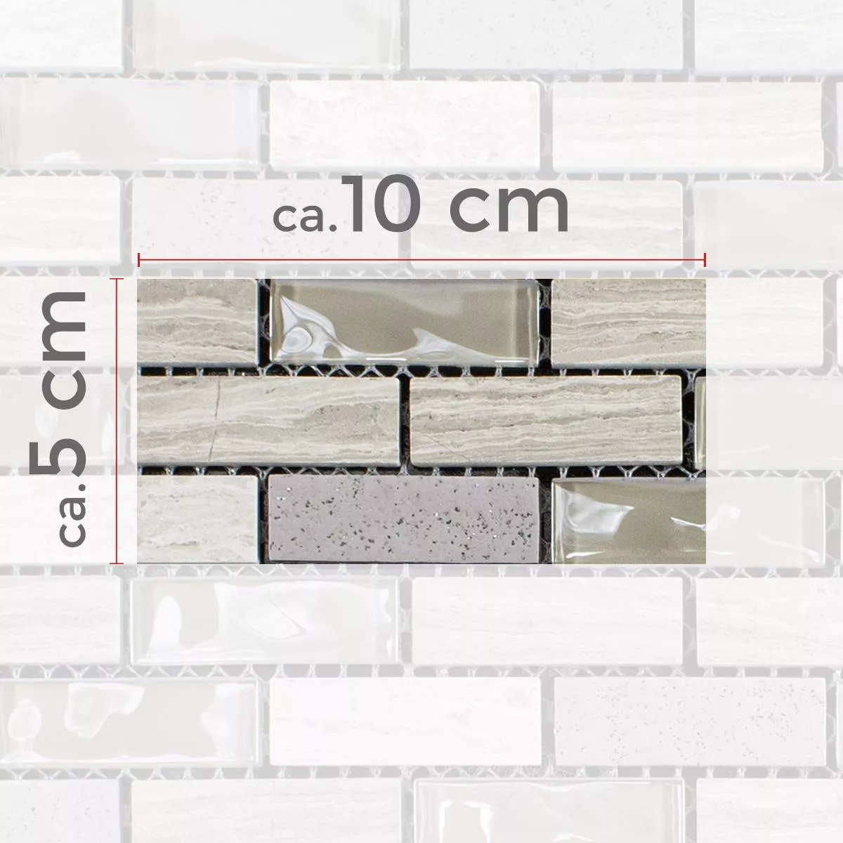 Every tile and every mosaic have different requirements for trimming, laying and und processing due to individual material characteristics and usage conditions. Please ask a local expert for correct and secure laying of your mosaics or tiles. We are not liable for unprofessional usage and faulty workmanship of constructions materials.