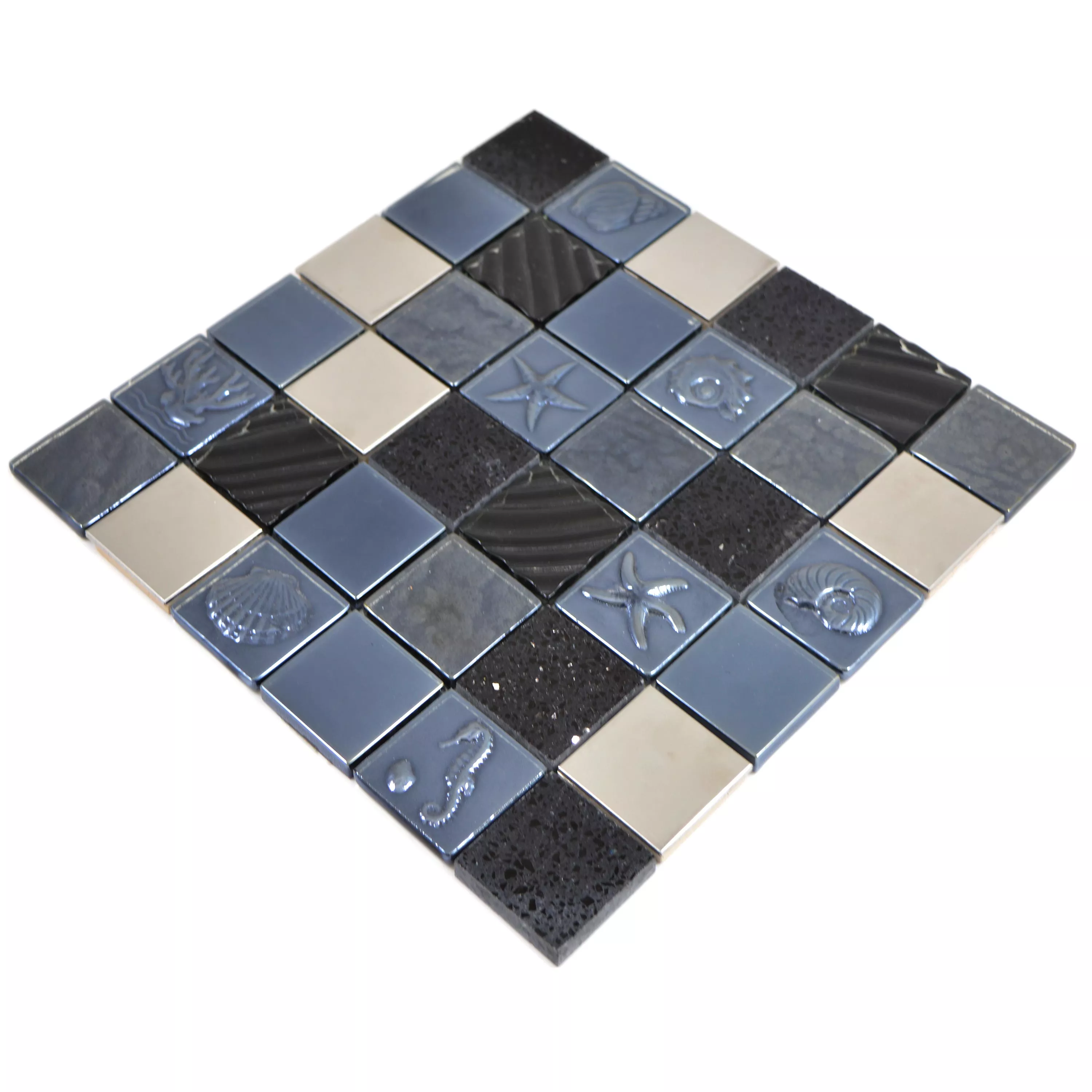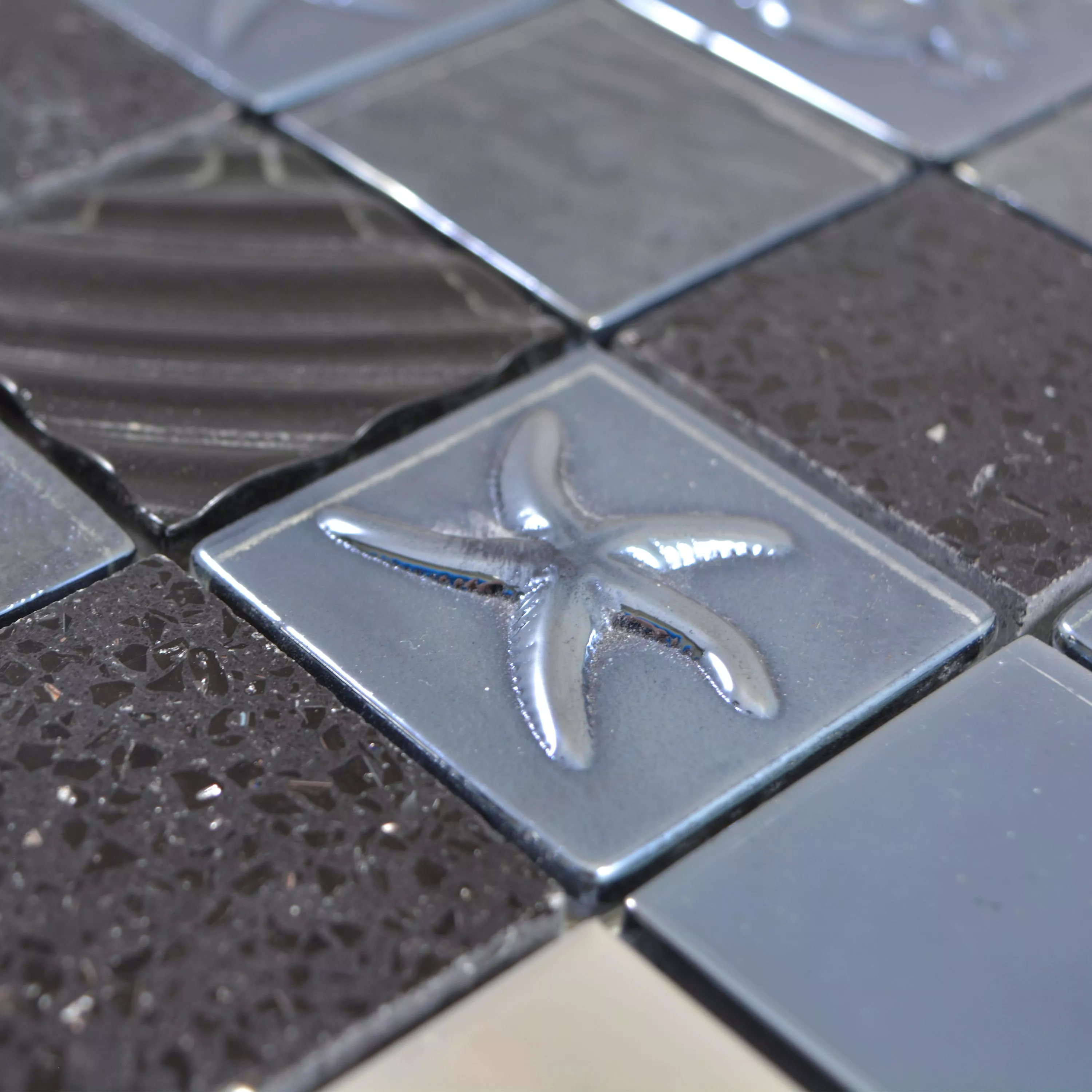 Sample Glass Stainless Steel Natural Stone Mosaic Emporia Black Silver