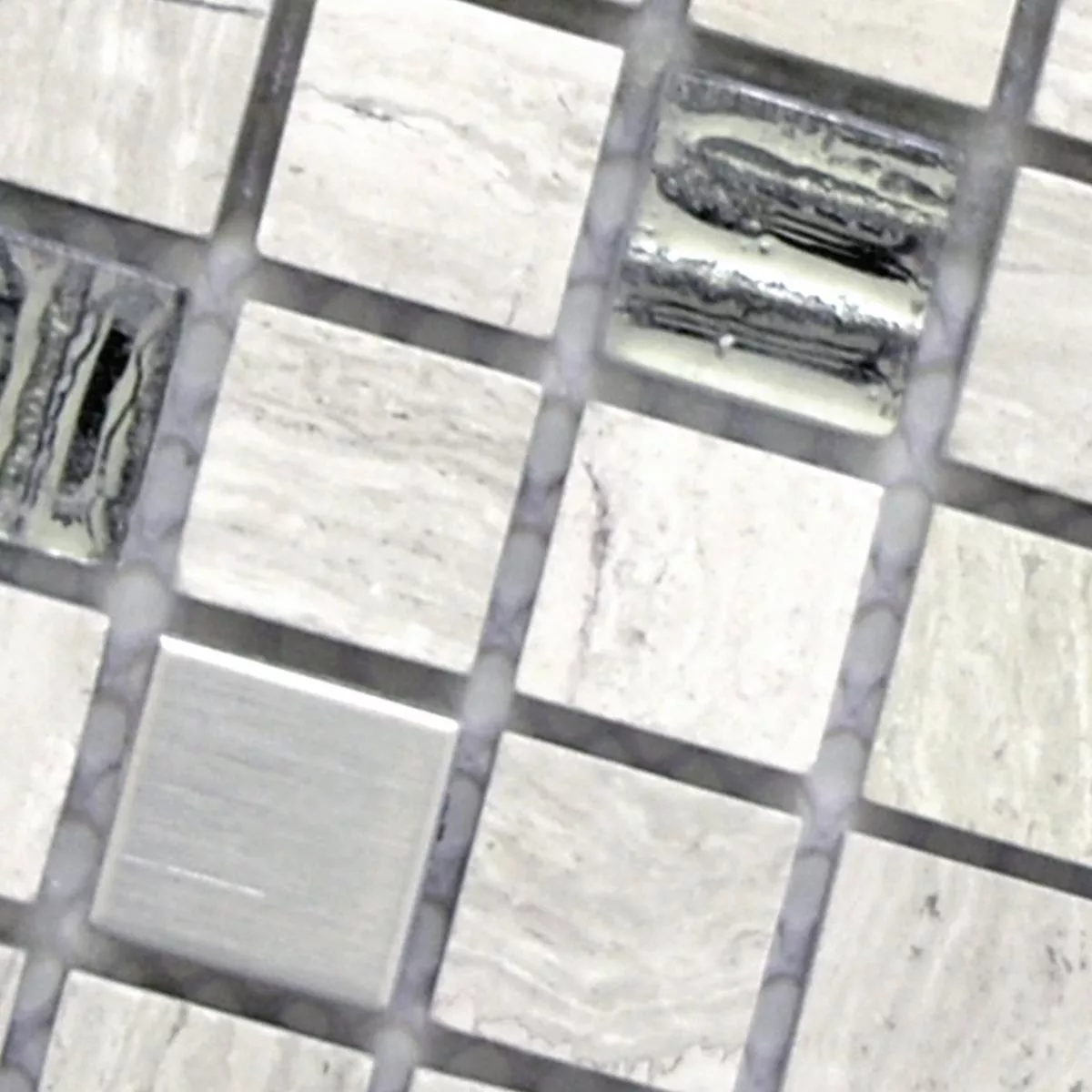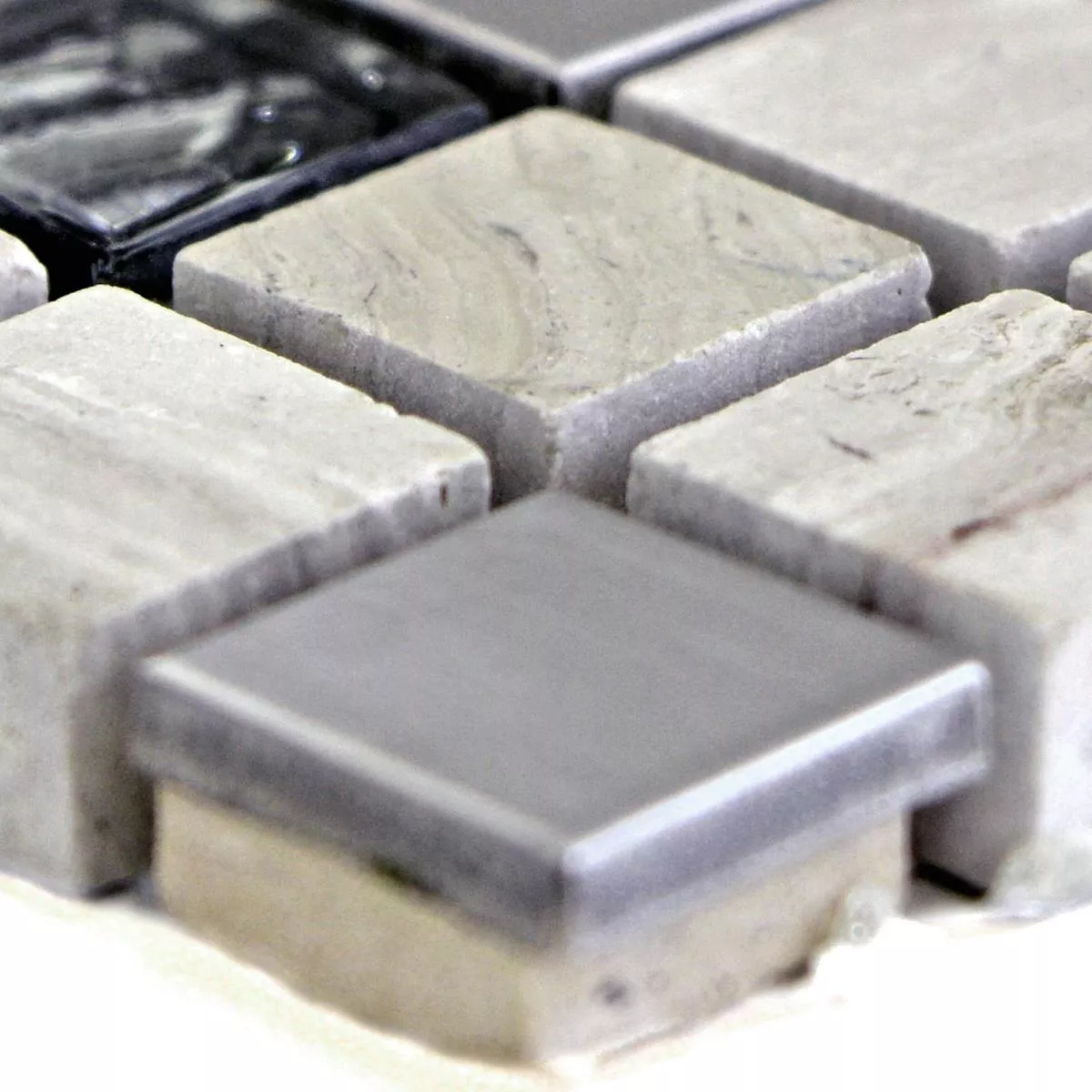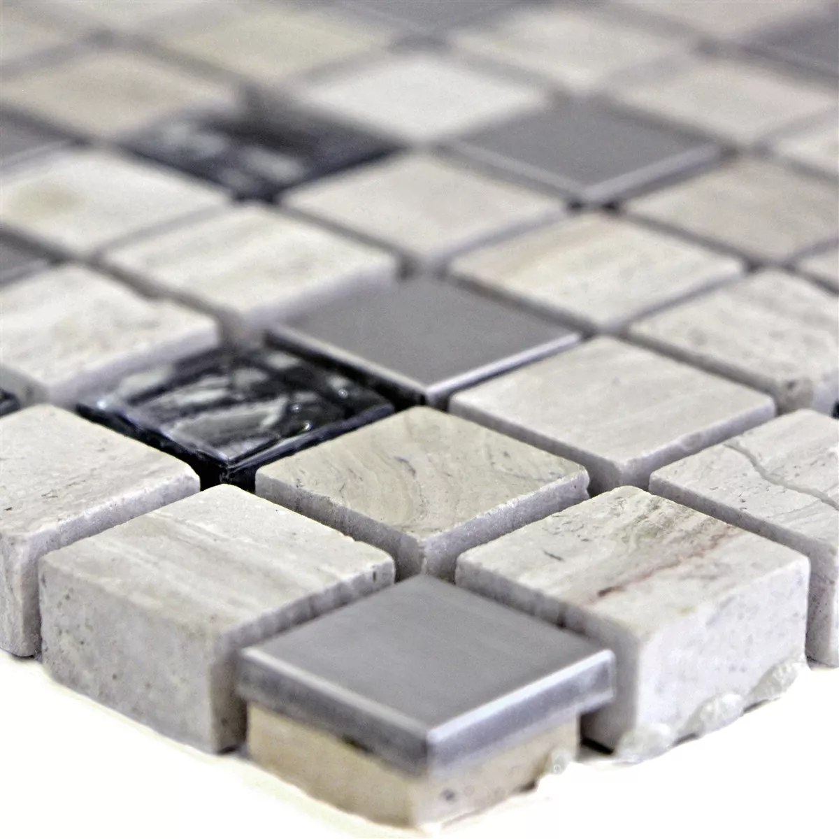 Sample Glass Stone Steel Mosaic Tiles Elektra Grey Square
