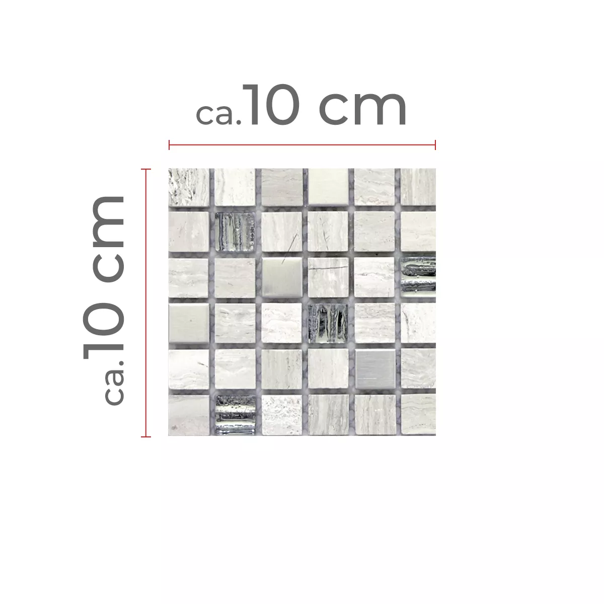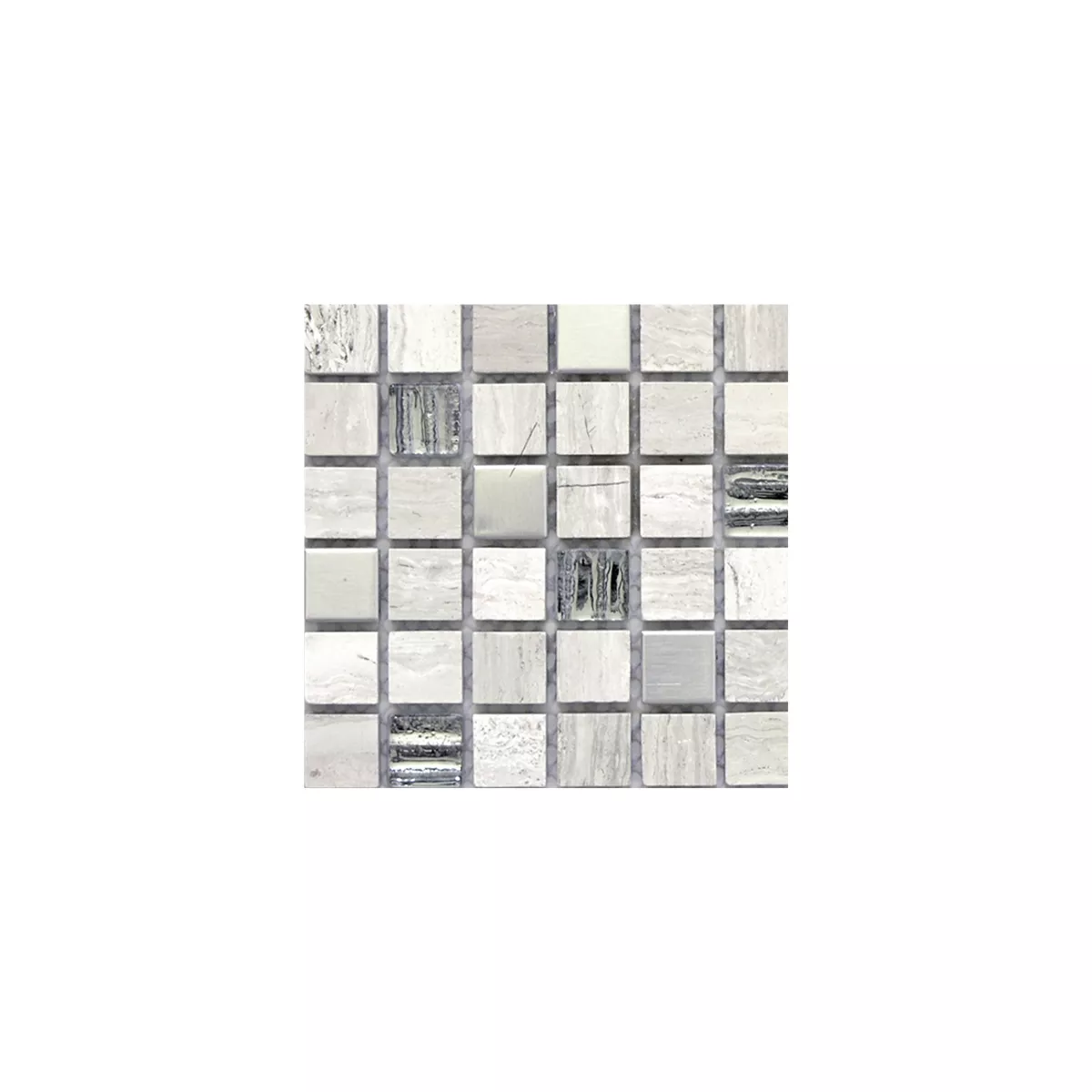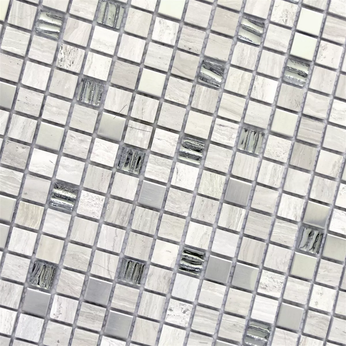 Sample Glass Stone Steel Mosaic Tiles Elektra Grey Square