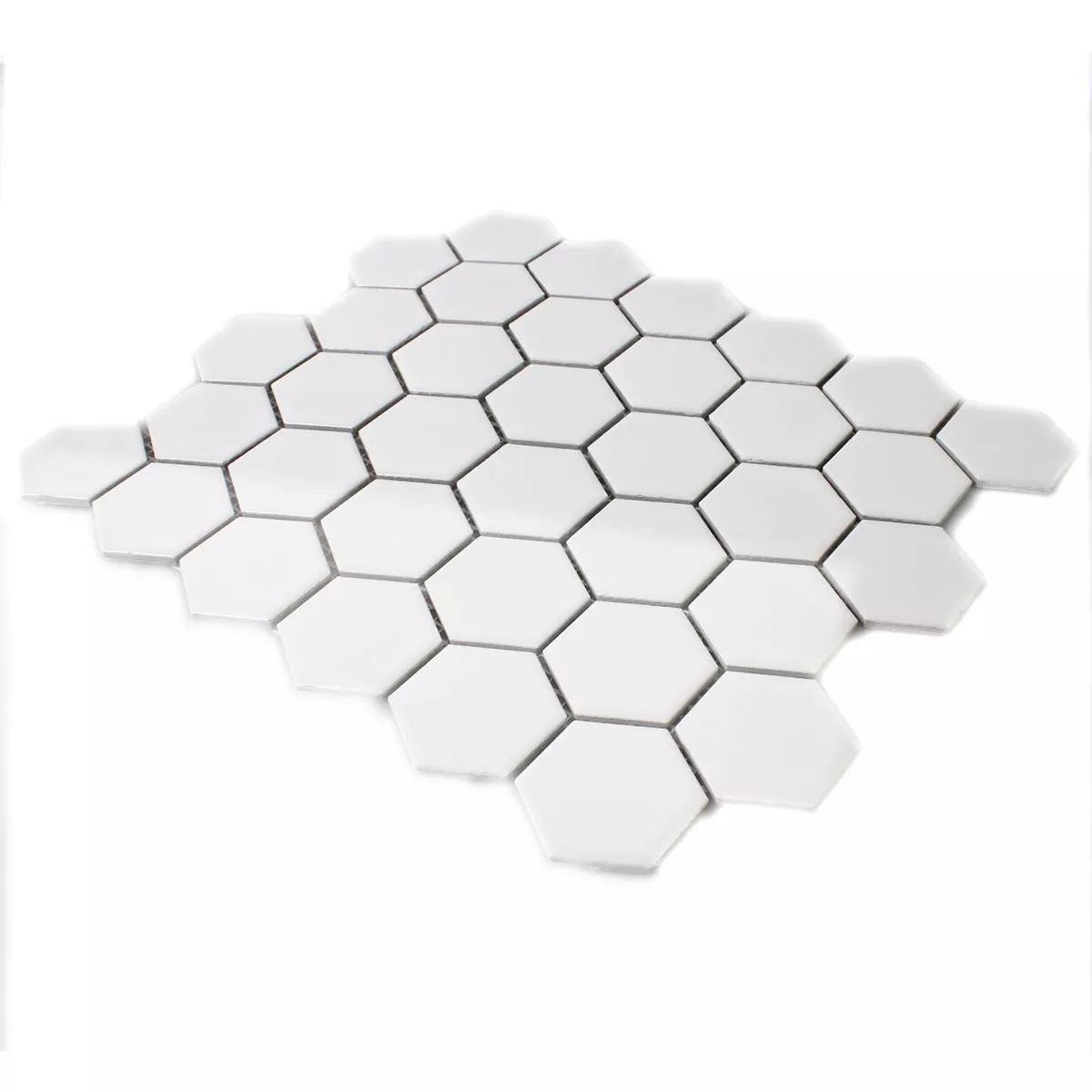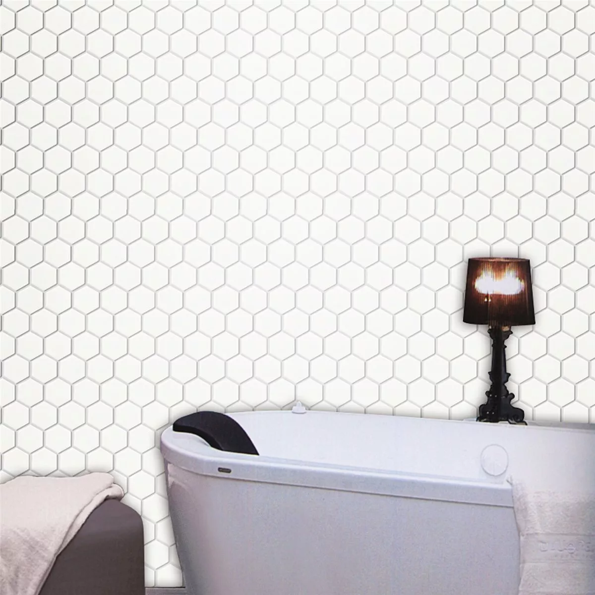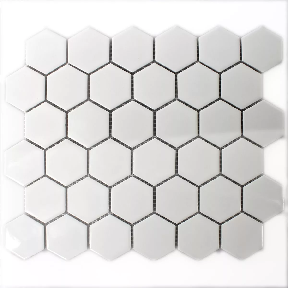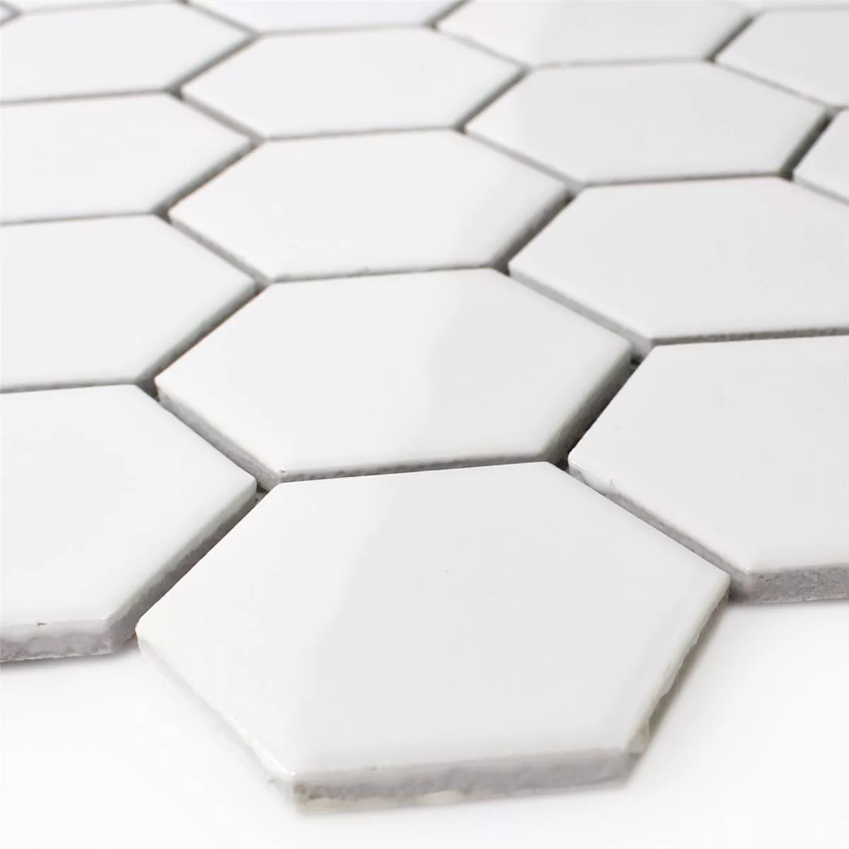 Sample Mosaic Tiles Ceramic Hexagon White Glossy