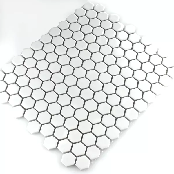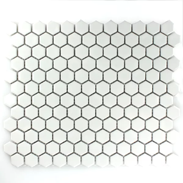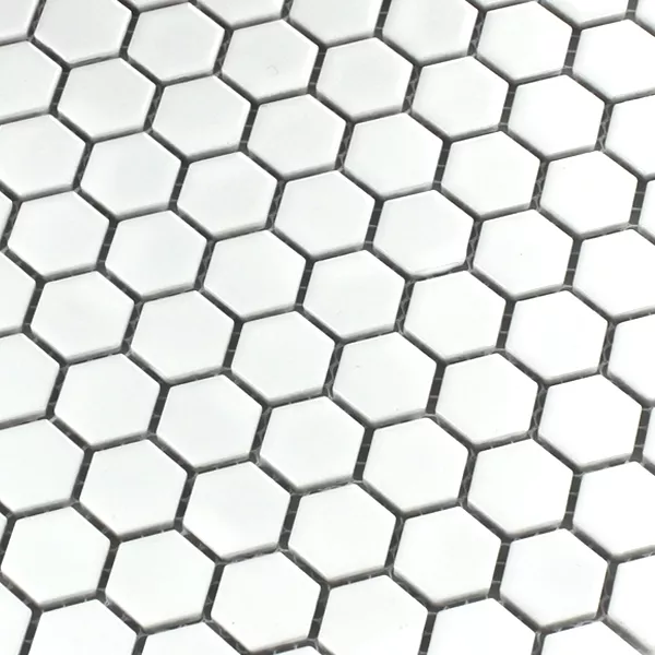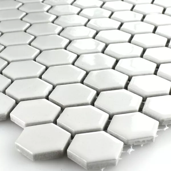 Sample Mosaic Tiles Ceramic Hexagon White Glossy H23