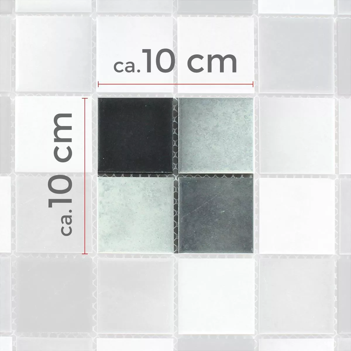 Every tile and every mosaic have different requirements for trimming, laying and und processing due to individual material characteristics and usage conditions. Please ask a local expert for correct and secure laying of your mosaics or tiles. We are not liable for unprofessional usage and faulty workmanship of constructions materials.