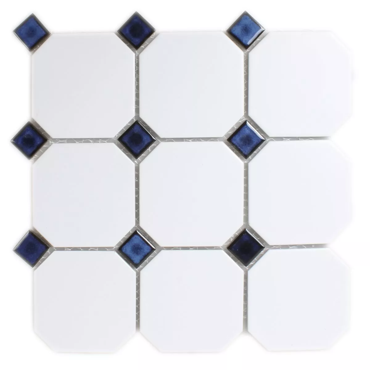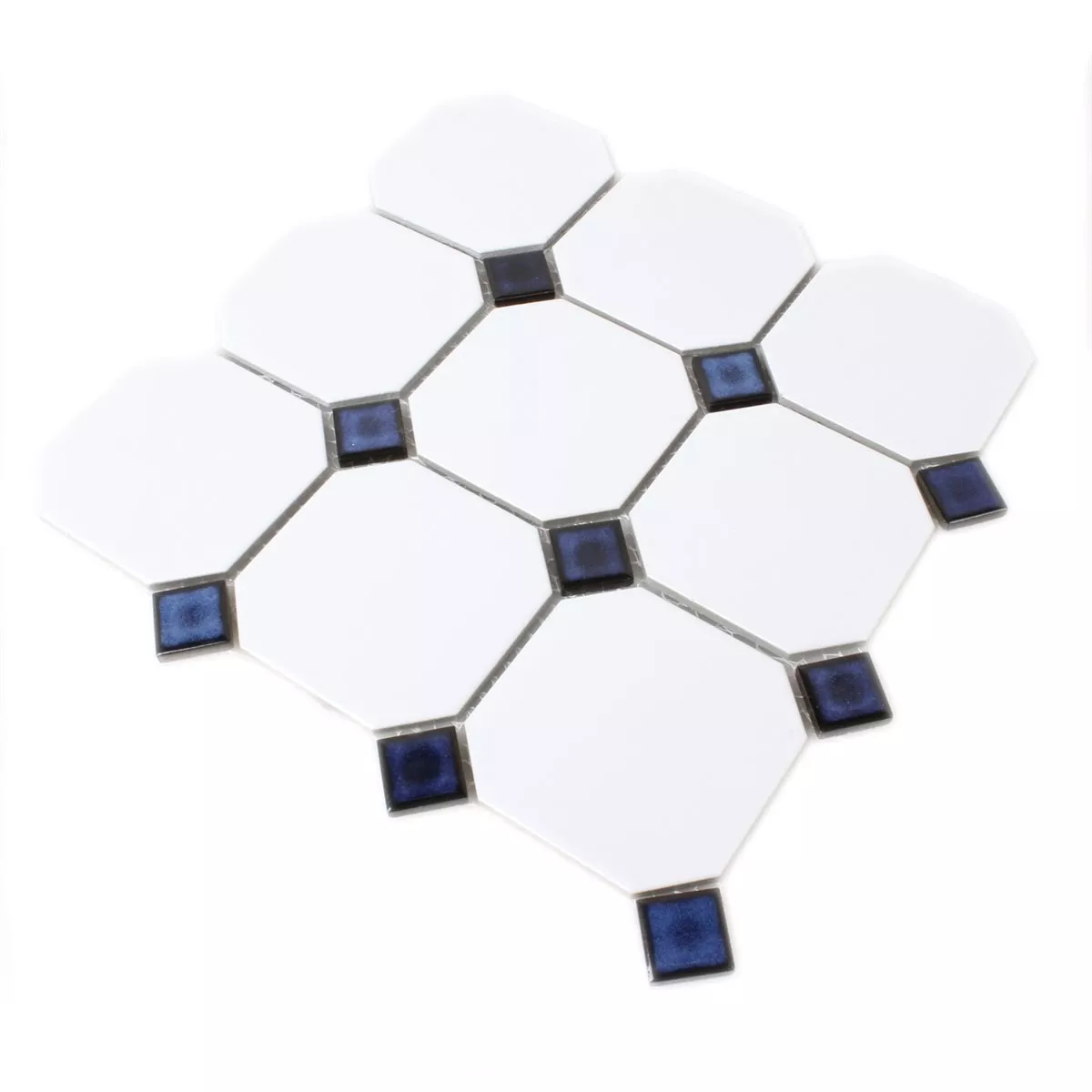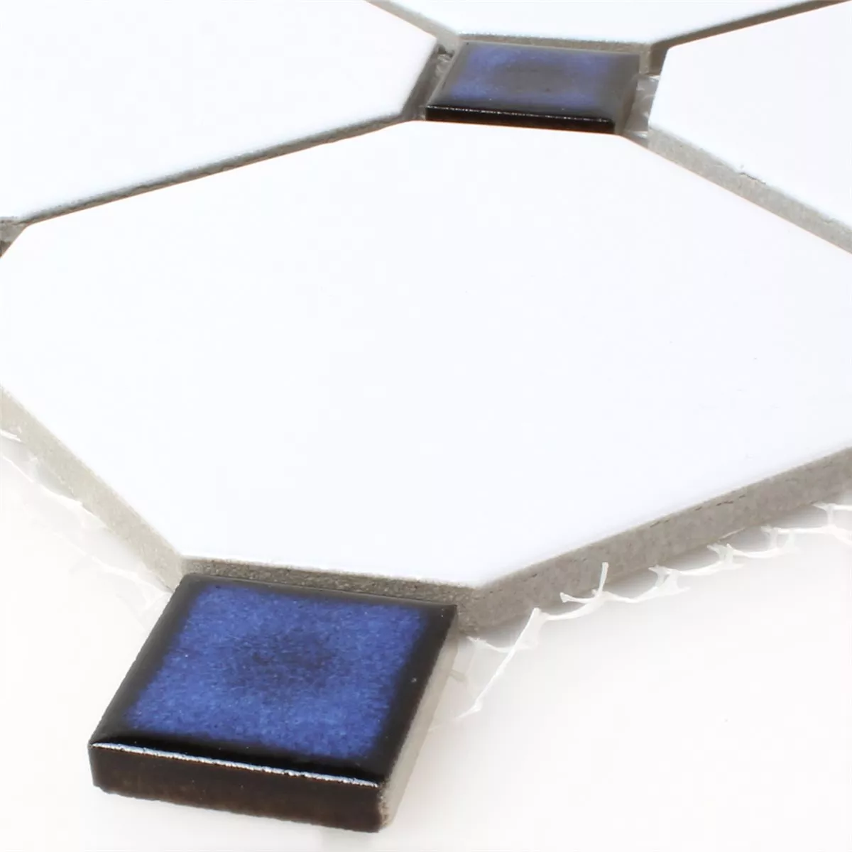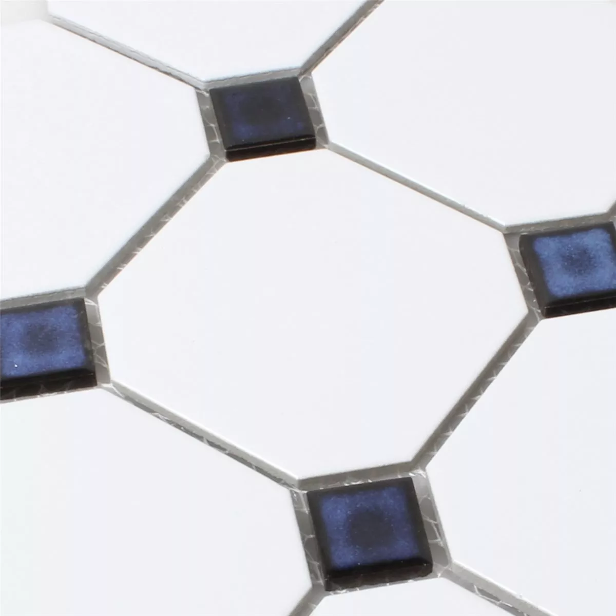 Sample Mosaic Tiles Ceramic Octagon White Blue Mix