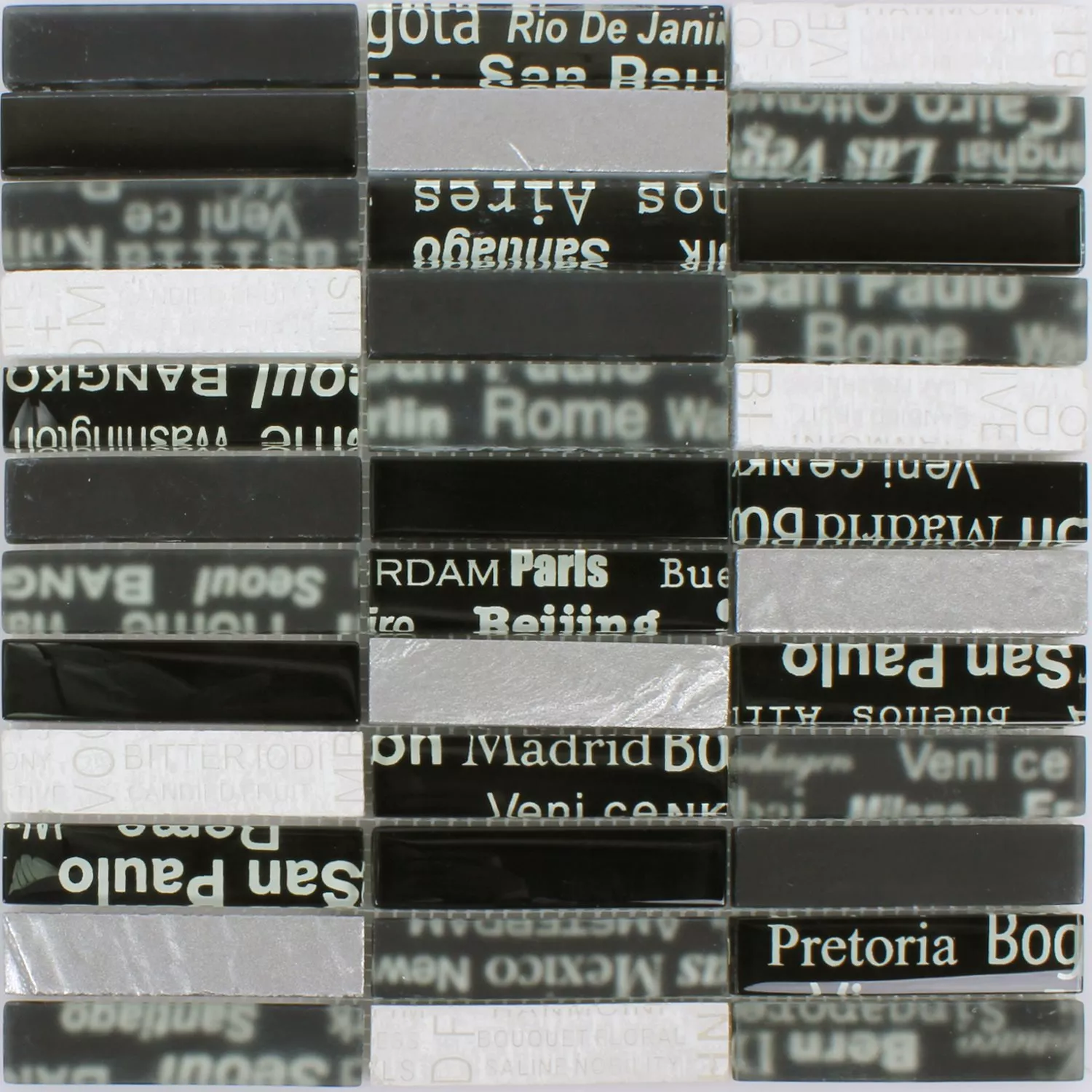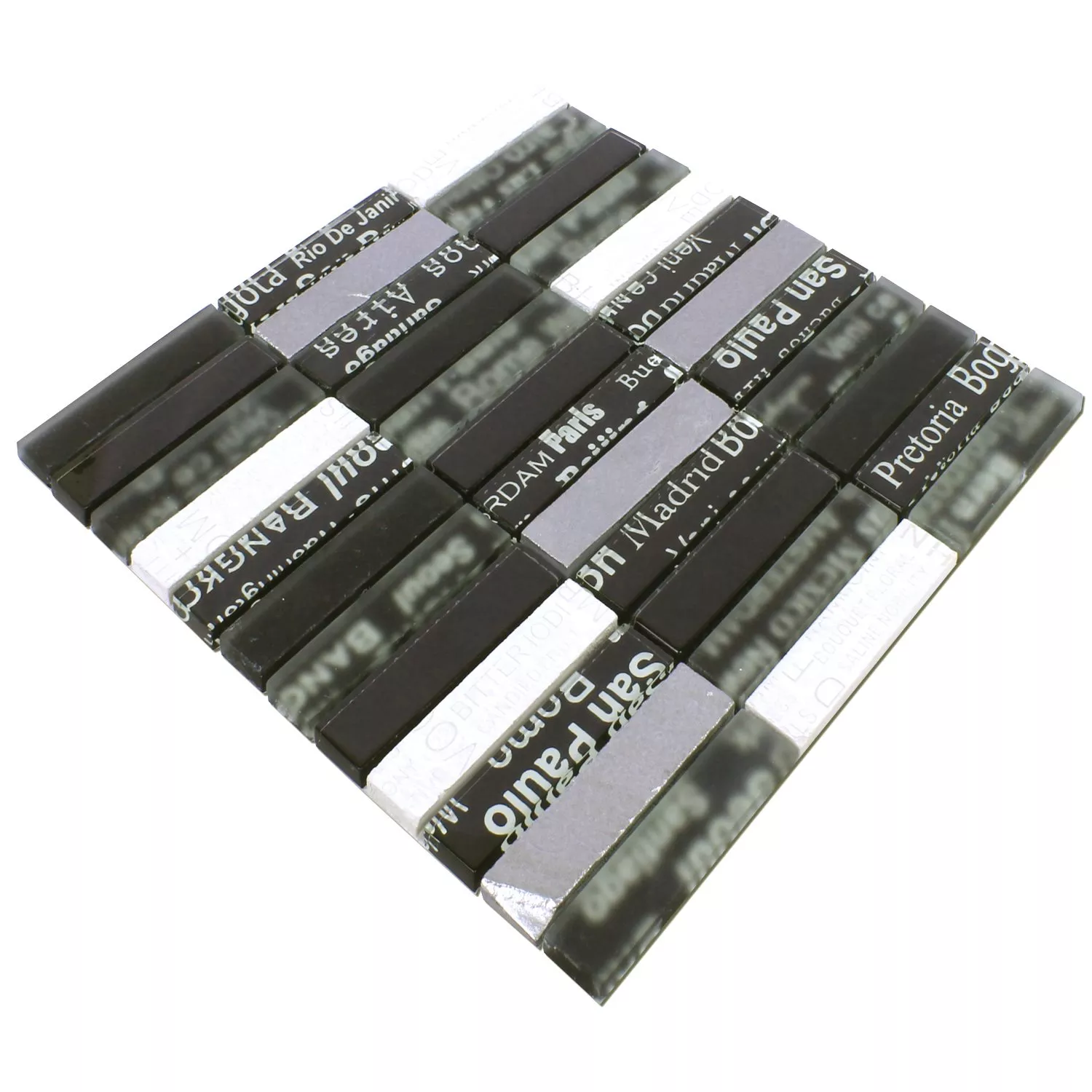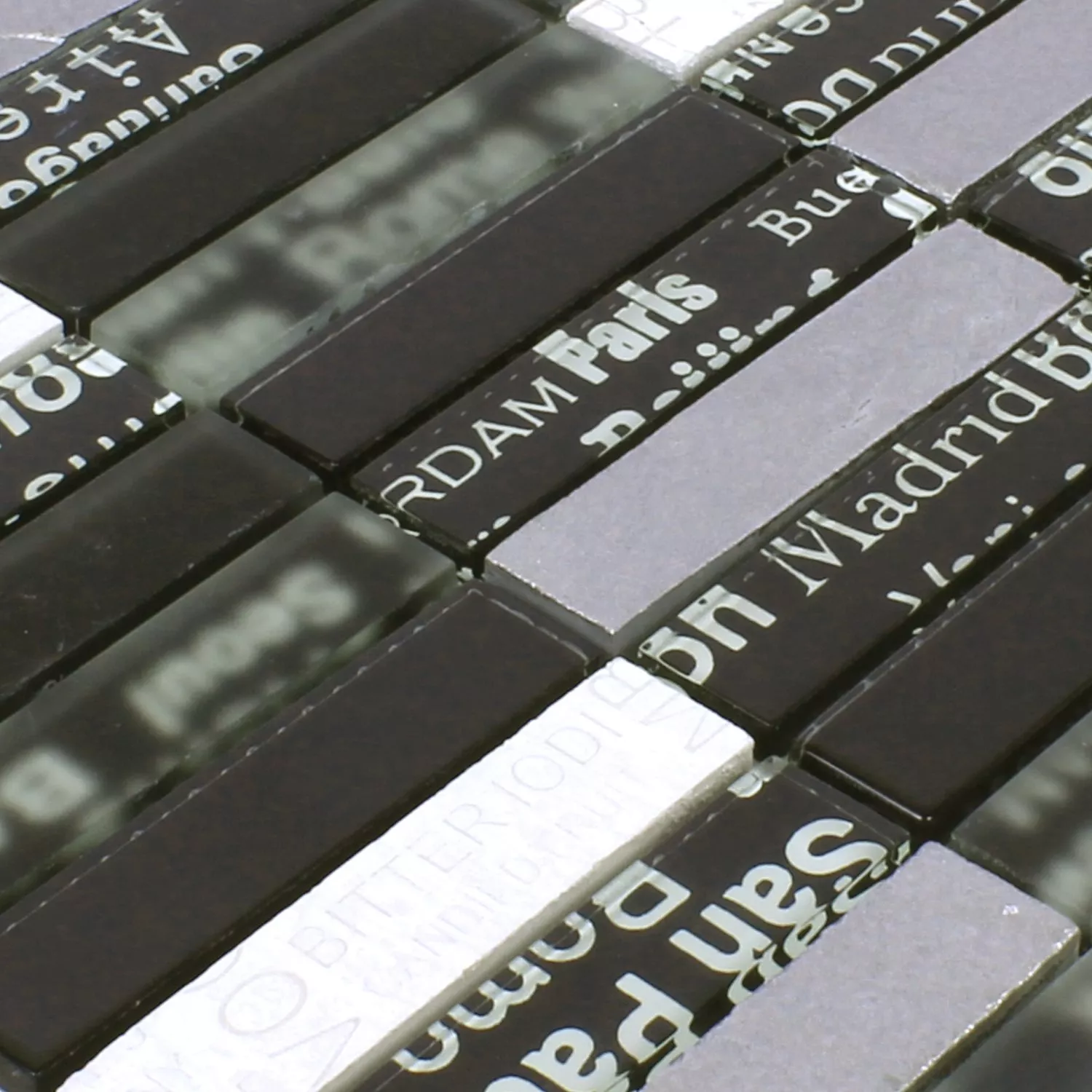 Sample Mosaic Tiles Glass Natural Stone City Mix Black
