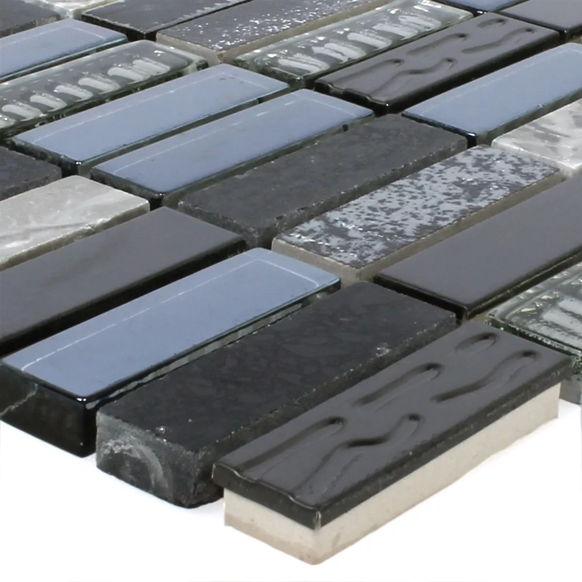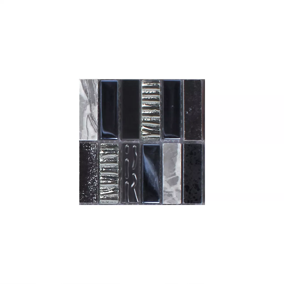 Sample Mosaic Tiles Metal Glass Natural Stone Black Mix