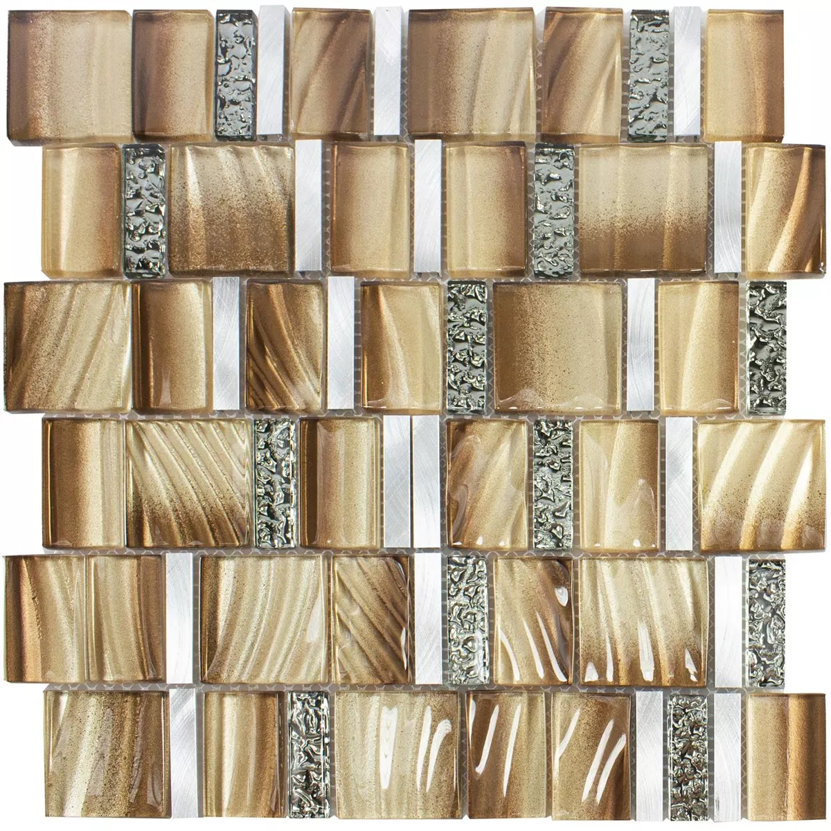 Glas Metall Mosaik Union Brun Silver