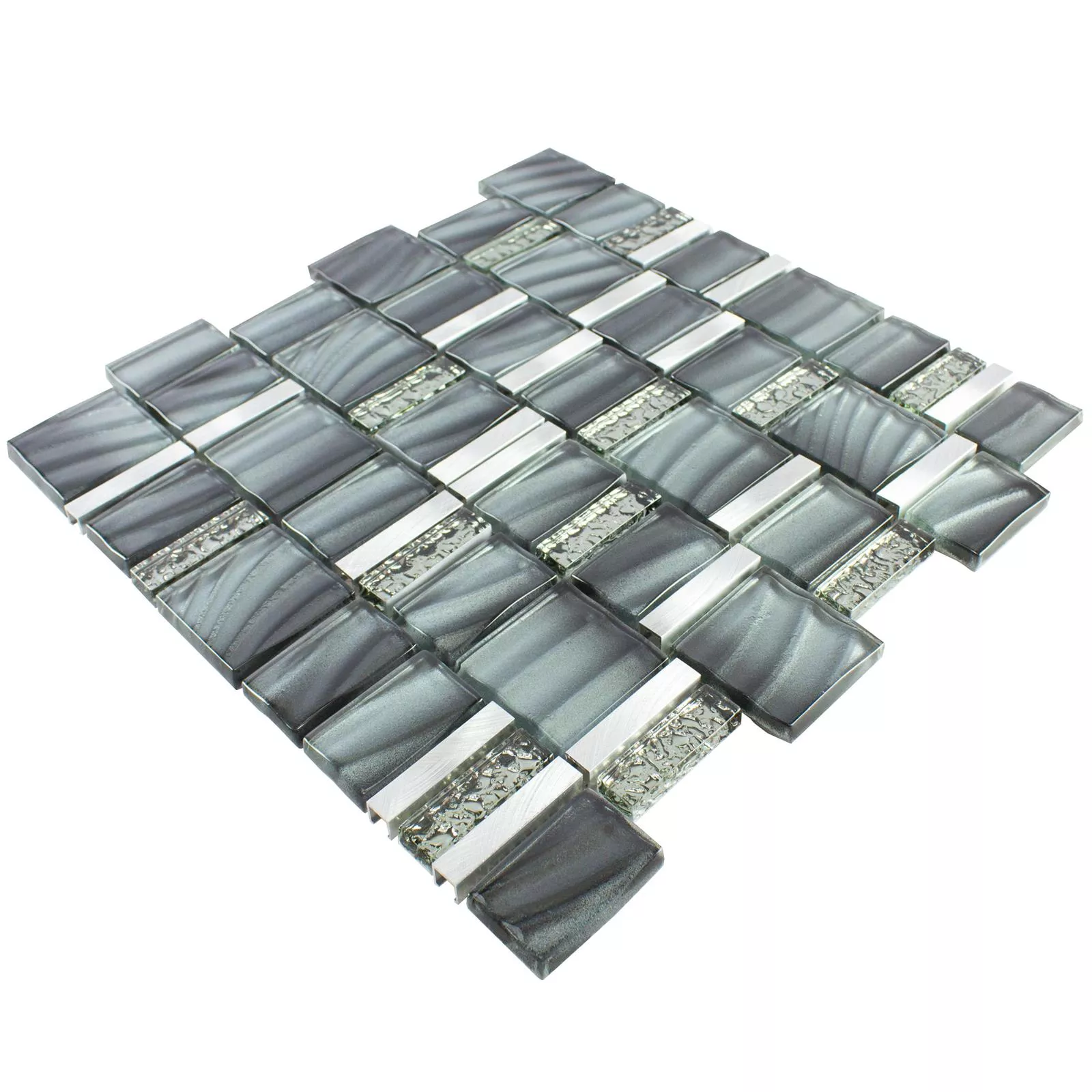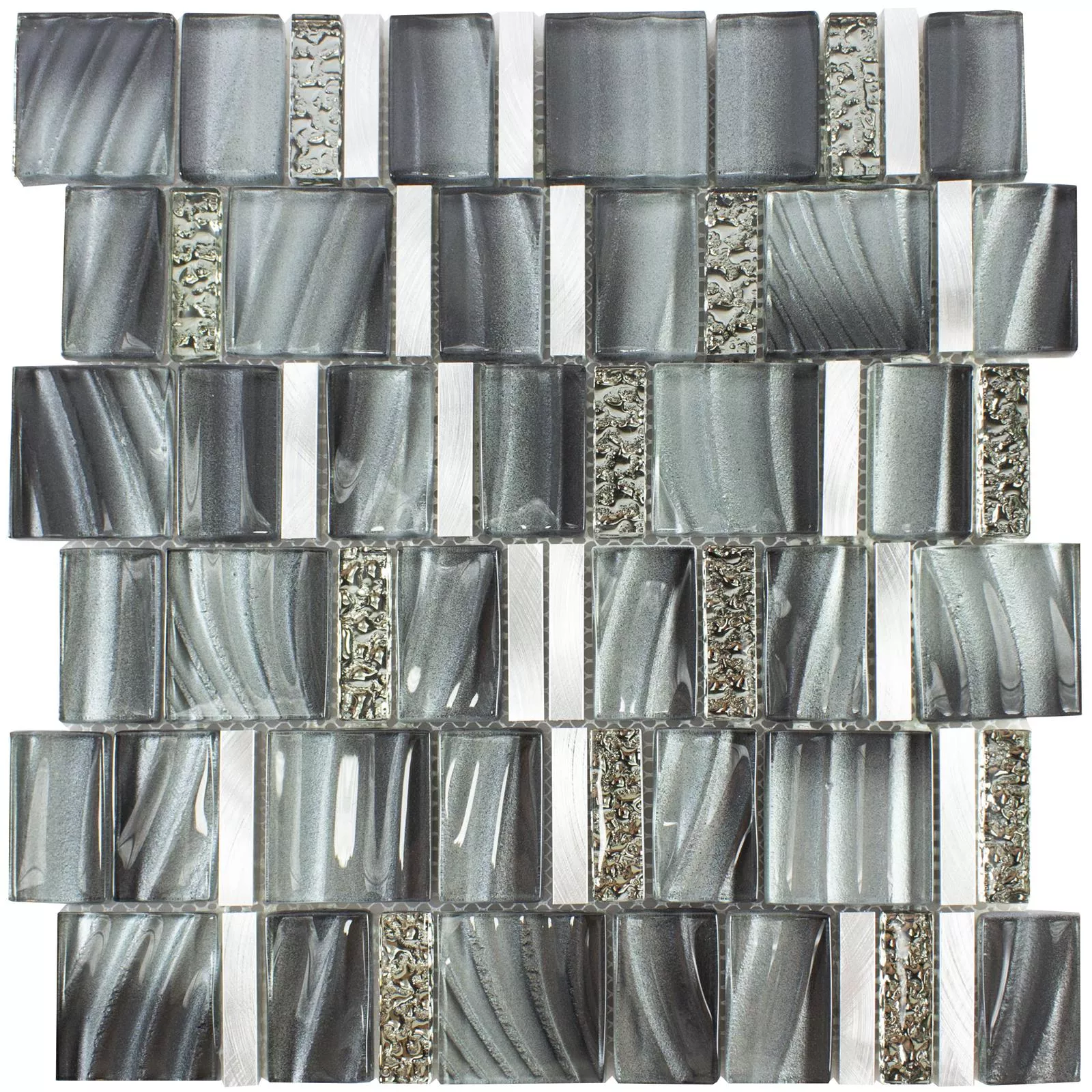 Unionens glas-metallmosaikplattor i grått och silver kombinerar modern design med funktionell elegans. Dessa mosaikplattor är gjorda av högkvalitativt aluminium och glas, som tillsammans ger en snygg och hållbar väggbeklädnad.
