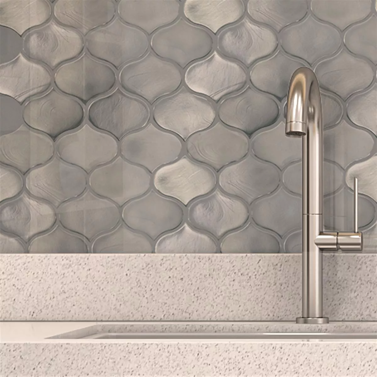 Glasmosaik Plattor Andalucia Arabesque Grå