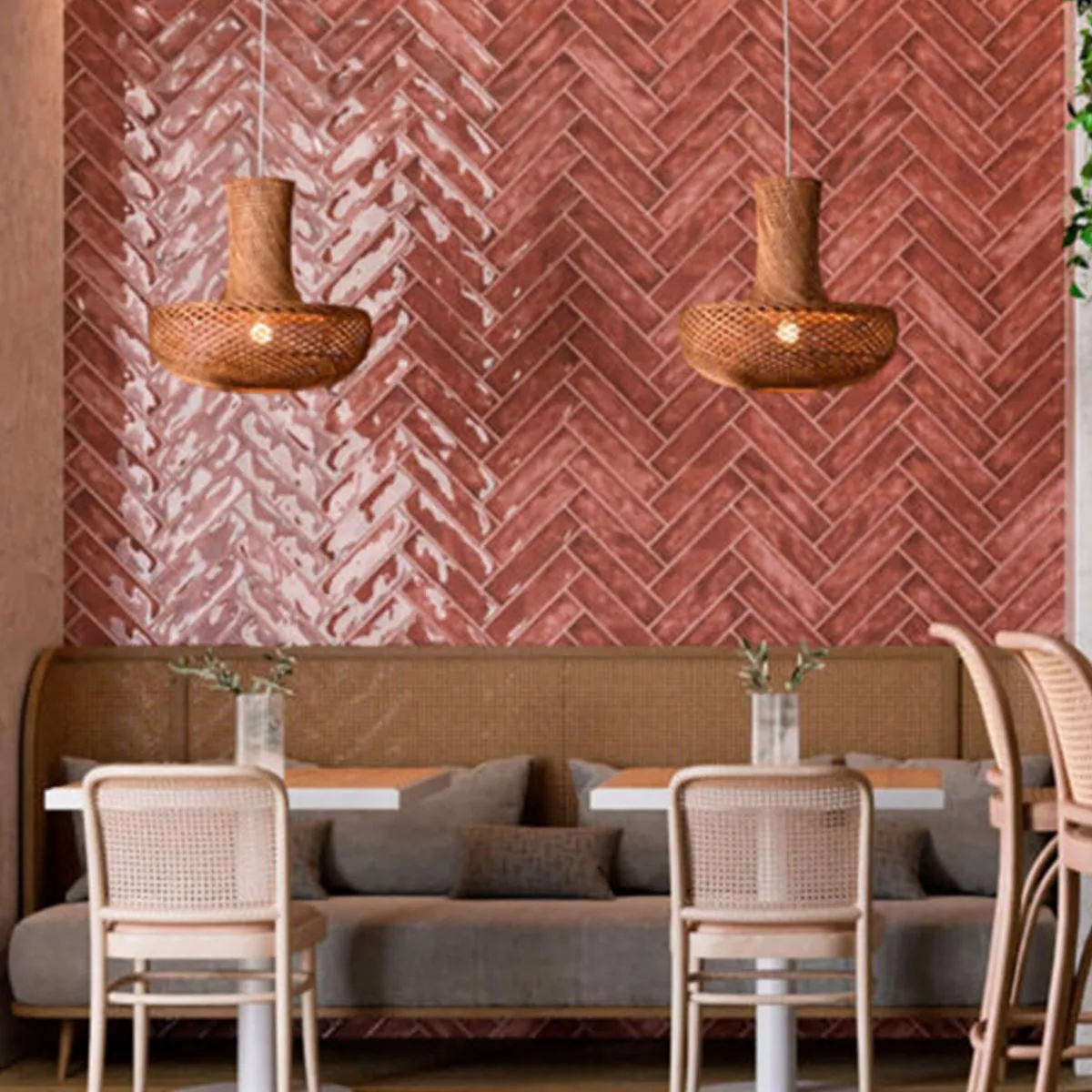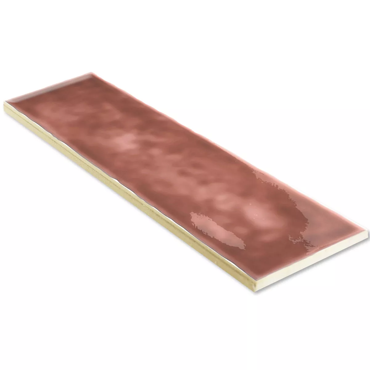 Lägg till en slående touch till dina väggar med våra Lugo glaserade väggplattor i vågigt rött. Dessa rektangulära plattor som mäter 7,5x30 cm ger en dynamisk struktur till dina rum med sin vågiga profil. Den blanka ytan och vintagelooken ger ditt vardagsrum en speciell atmosfär.