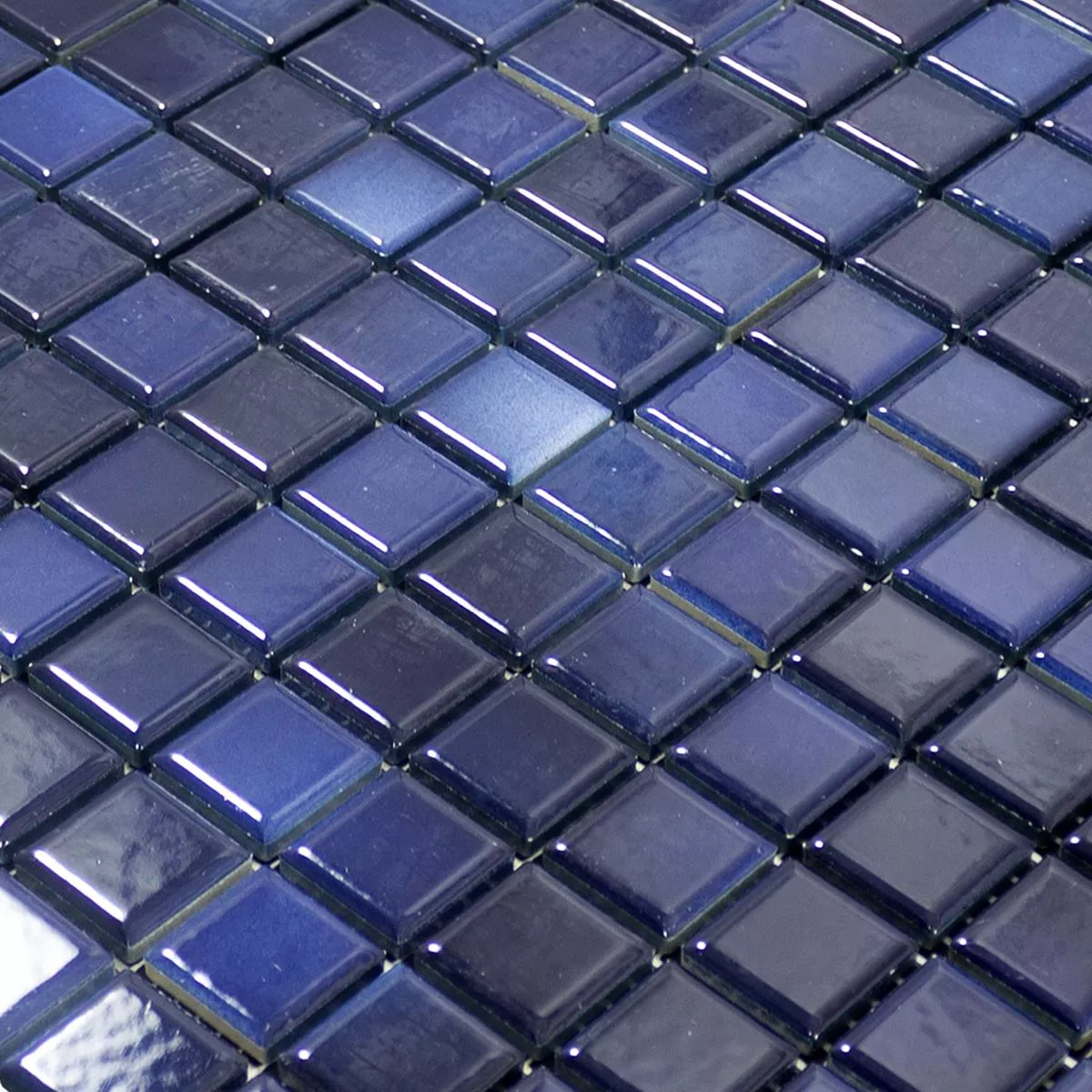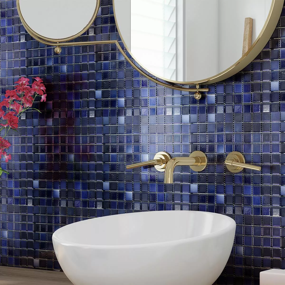 Gallerias keramiska mosaikplatta i en fascinerande blå blandning ger alla rum en iögonfallande och stilren känsla med sin moderna metalllook. Den matta ytan och den kompakta stenstorleken på 23 x 23 mm säkerställer ett varierat och dynamiskt utseende. Med den praktiska kakelmattan i måtten 29,7 x 29,7 cm, som redan är limmad på ett nät färdigt för montering, är installationen på både väggar och golv extra enkel och effektiv.