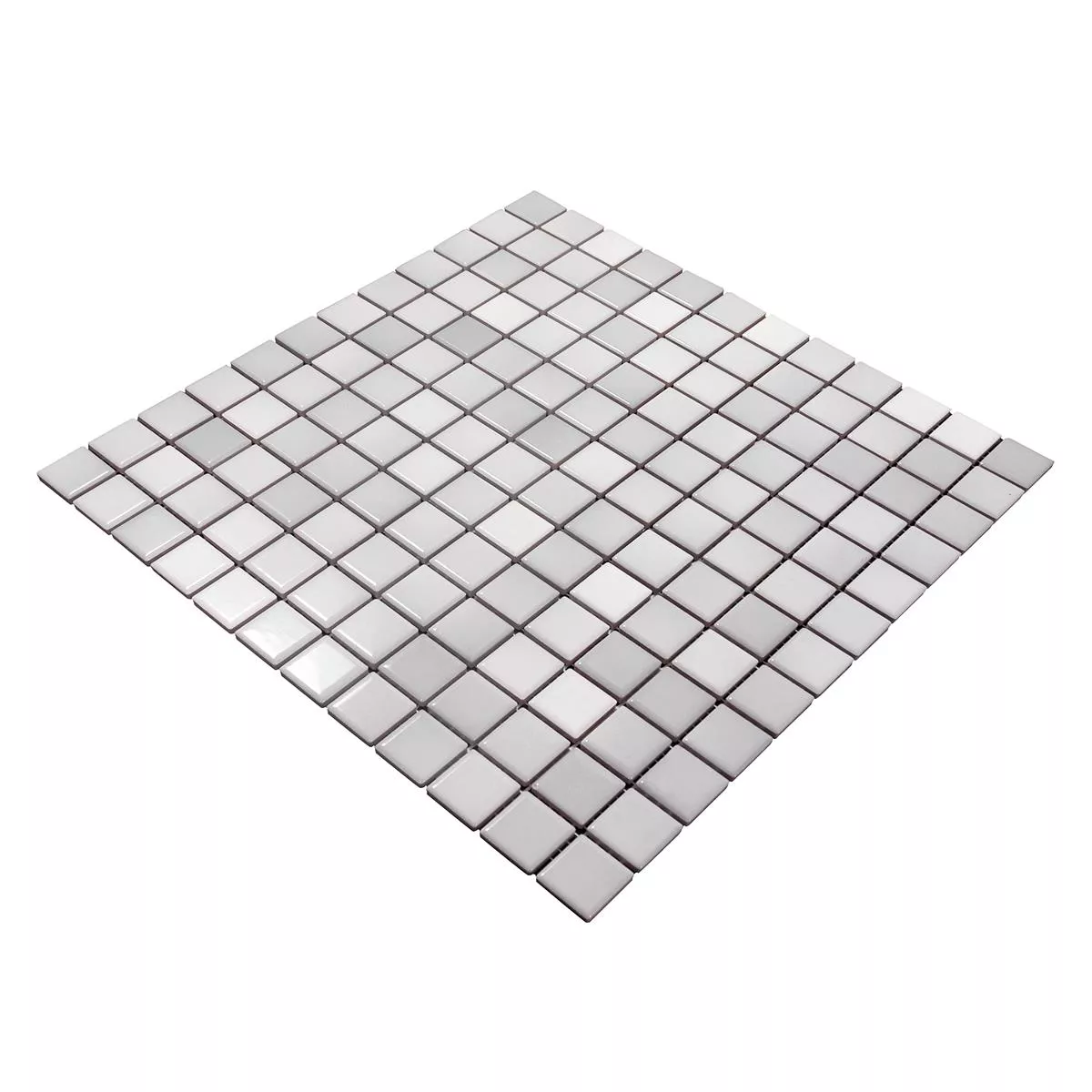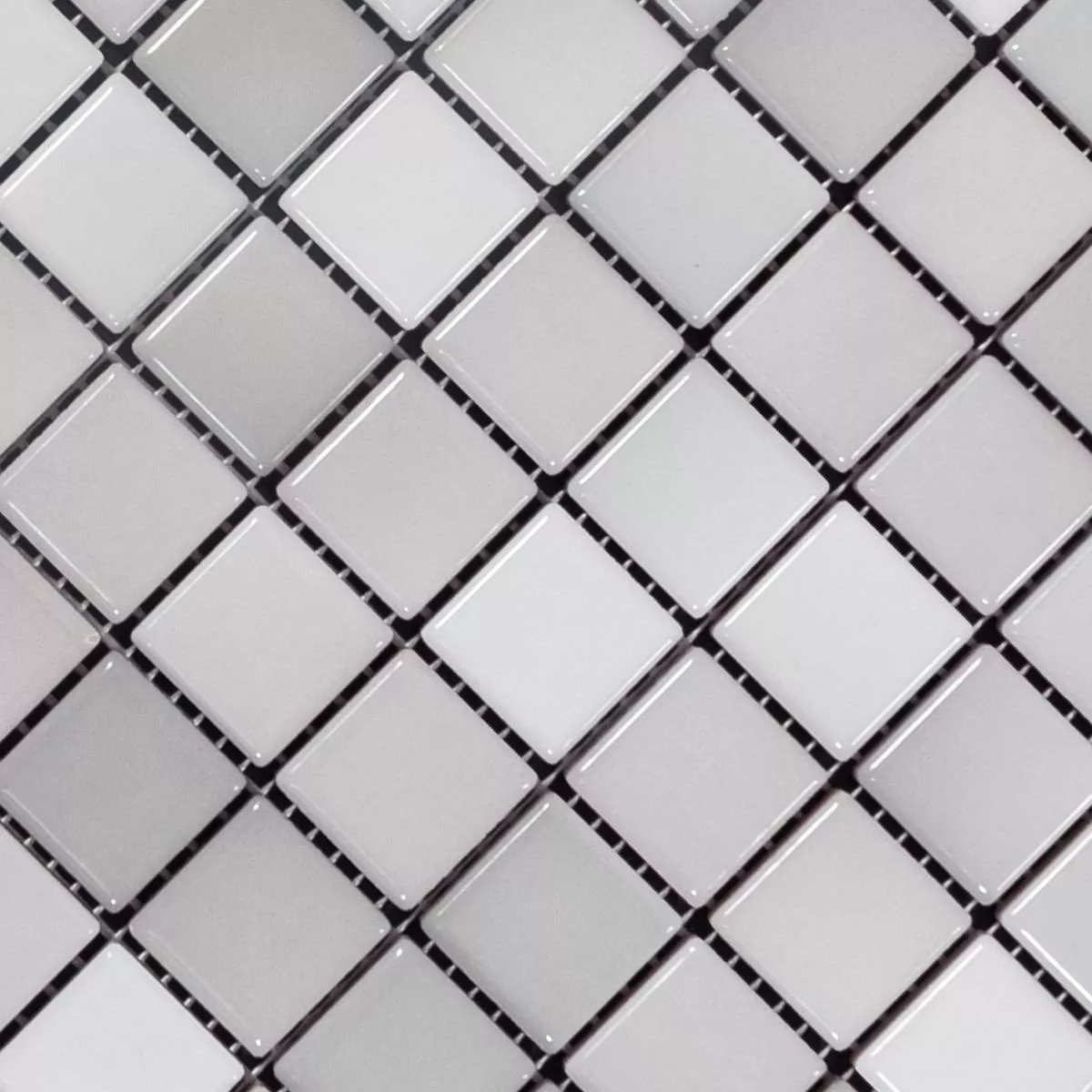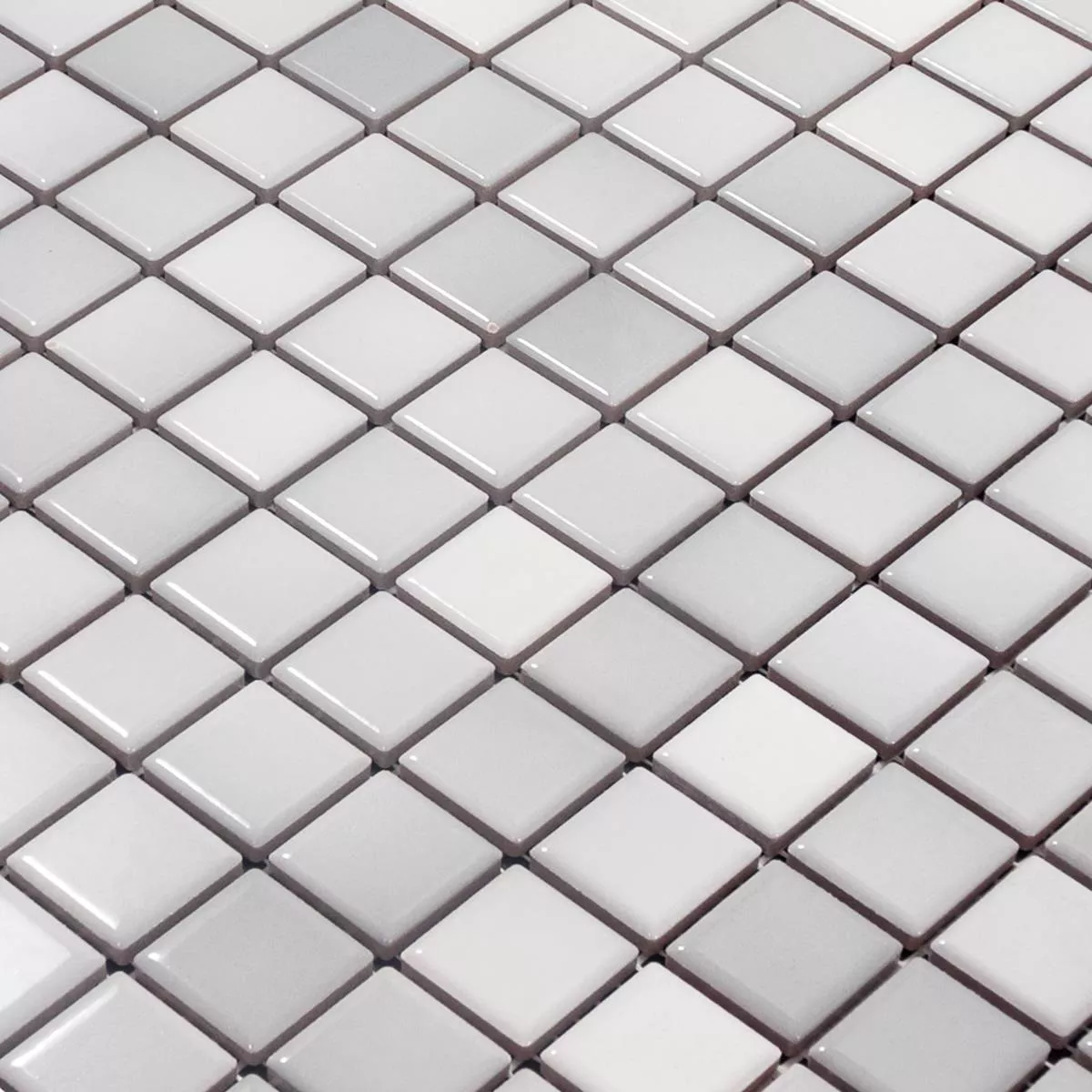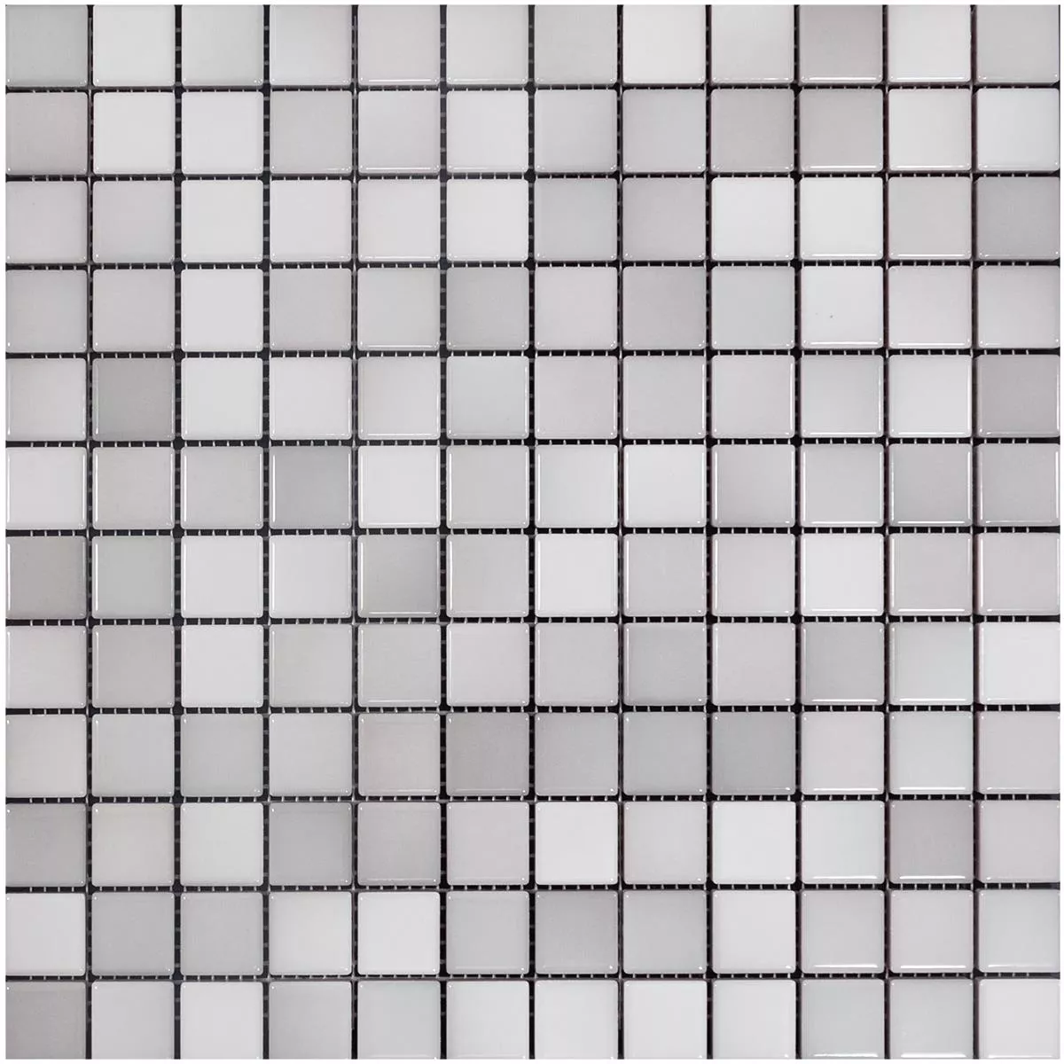 Gallerias keramiska mosaikplatta i grå blandning erbjuder en elegant och mångsidig lösning för dina designidéer med sin moderna metalllook och matta yta. Kakelplattan kommer i praktiska mattor som mäter 29,7 x 29,7 cm, som redan är limmade på ett nät redo för montering. Med en stenstorlek på 23 x 23 mm och en tjocklek på 6,5 mm kan den läggas exakt på både väggar och golv.