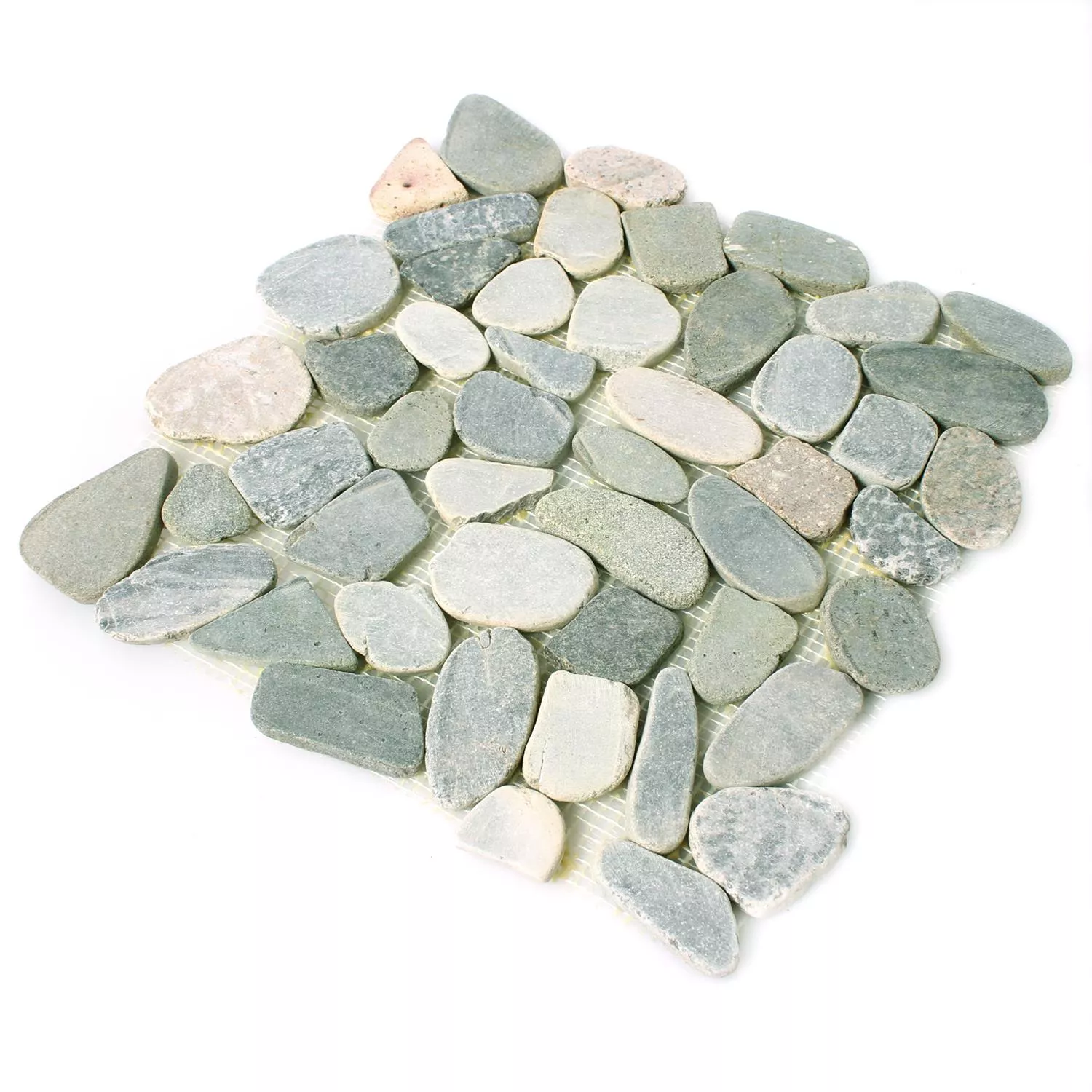 En mycket speciell dekoration kan nu skapas med dessa väggplattor. Tvättställ och mycket mer kan sedan dekoreras med naturstensplattorna. Flodstenarna är varierande i storlek. Denna omständighet gör var och en av väggplattorna eller mosaikplattorna till ett riktigt unikt. Dessa naturstensplattor bör läggas av ett riktigt proffs, då endast denna person har kunskap om korrekt läggning av vägg- och naturstensplattor. Kakelplattorna är perfekta och kan ge en speciell stil till väggen. Köparen kommer att bli förvånad över hela området.