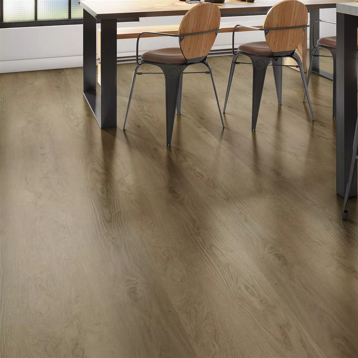Med en tjocklek på 2,5 mm är detta vinylgolv inte bara robust, utan även lämpligt att använda i rum med golvvärme. Den halkfria ytan säkerställer säker användning, särskilt i badrum och våtutrymmen.