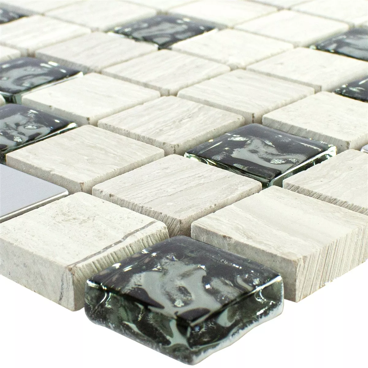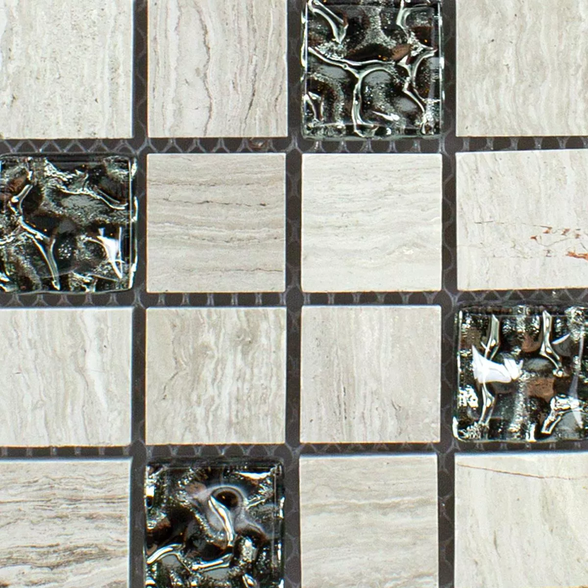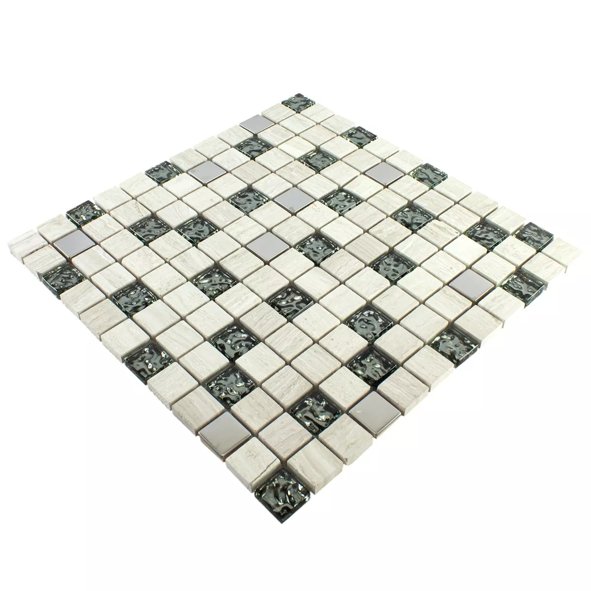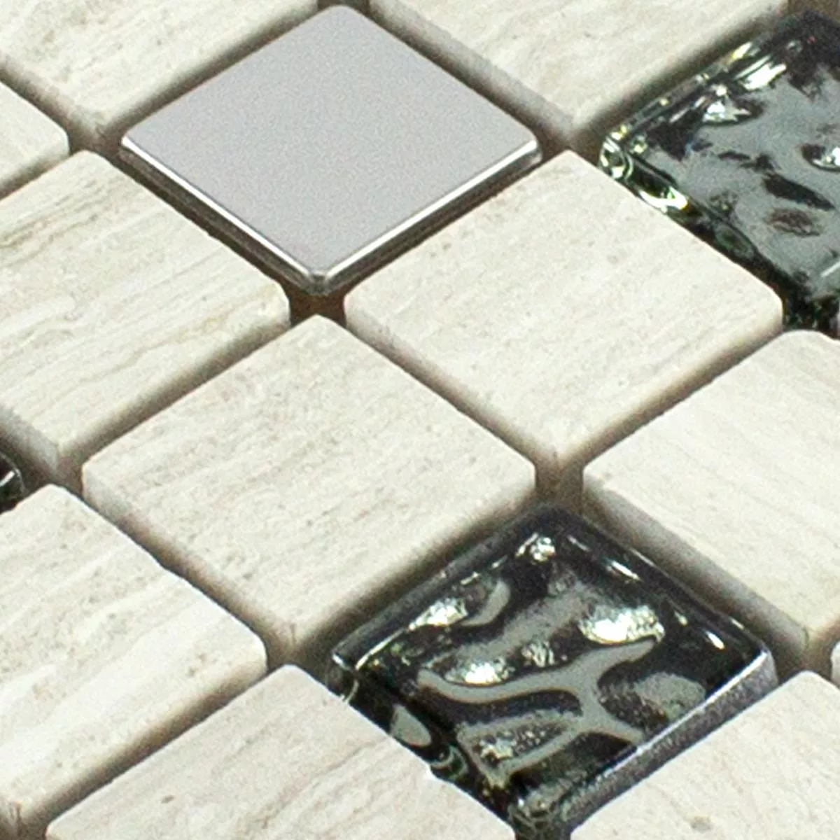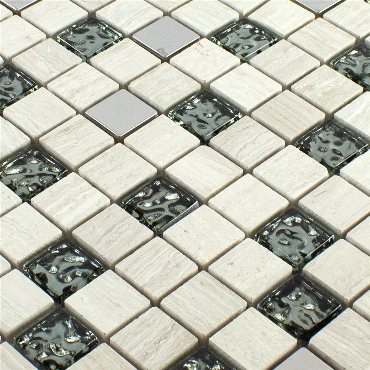 Sample Glass Natural Stone Metal Mosaic Tile Fulda Grey Silver