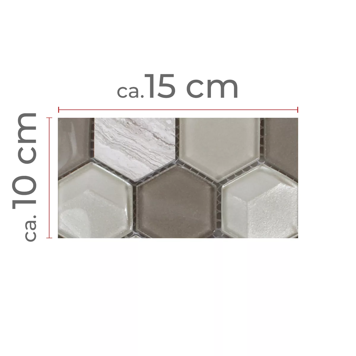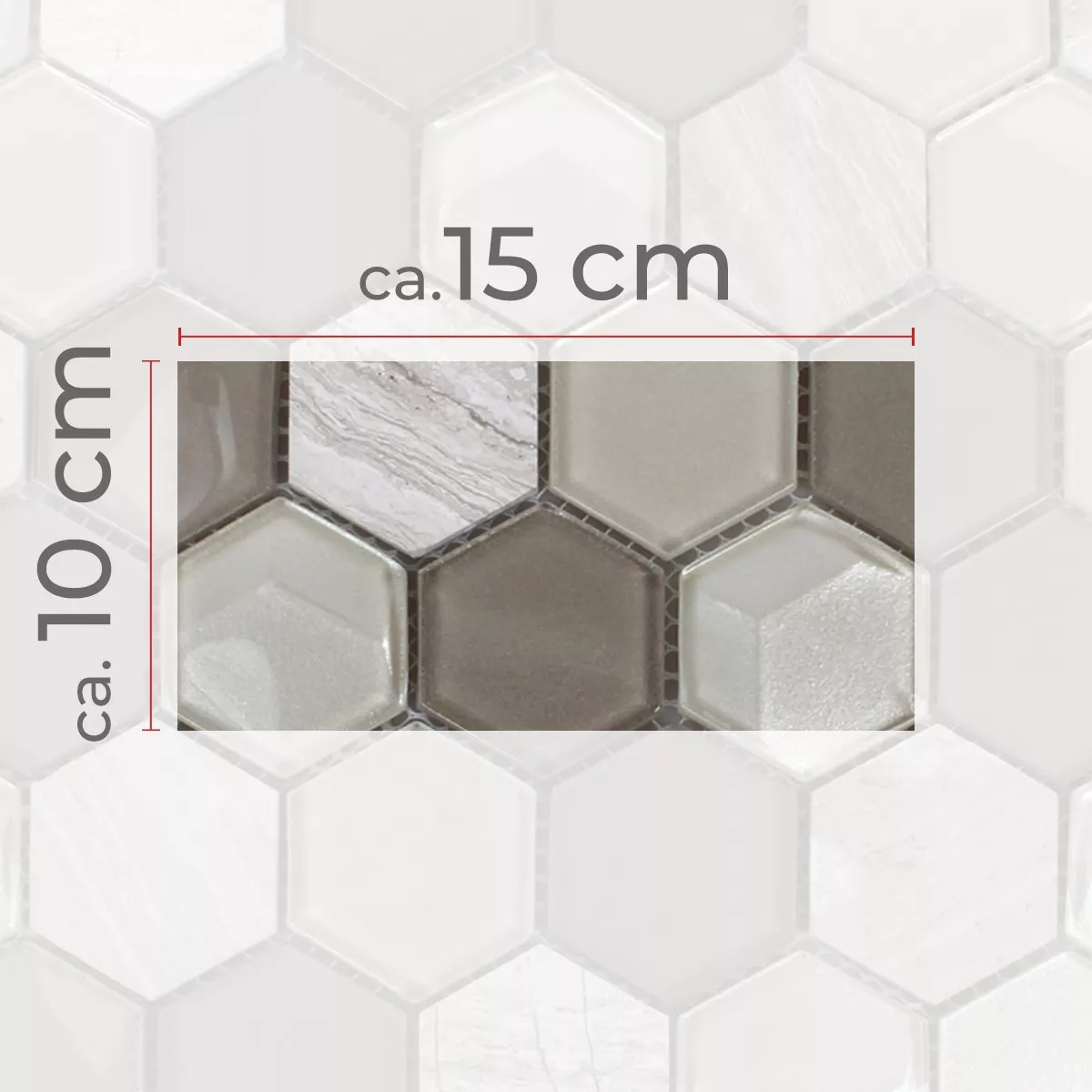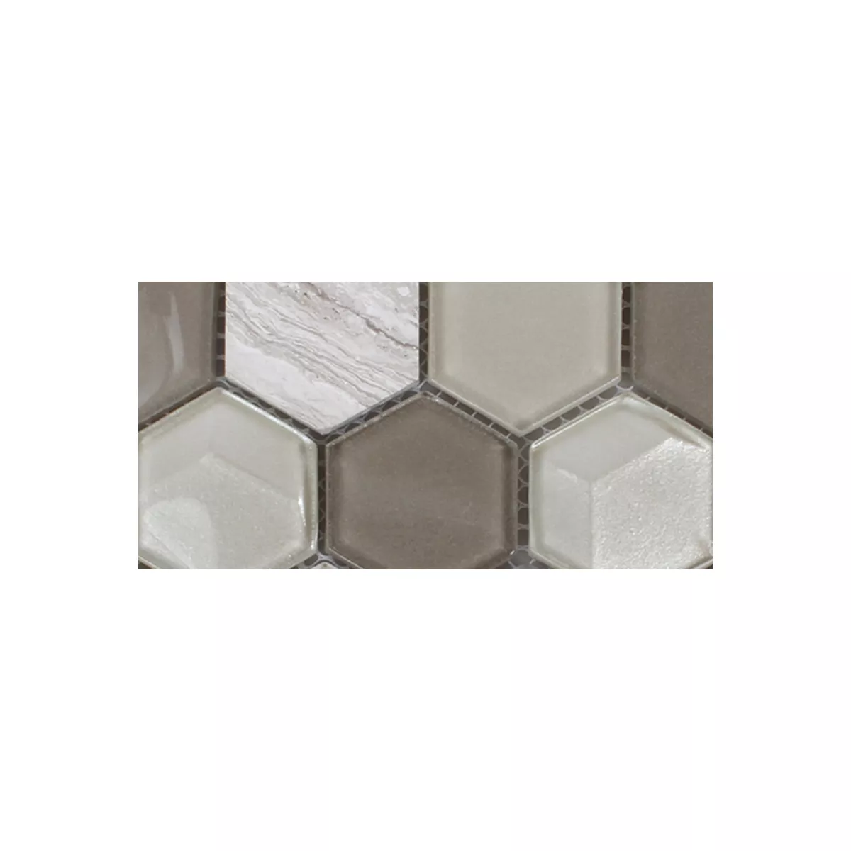 Sample Mosaic Tiles Hexagon Glass Natural Stone Light Grey 3D