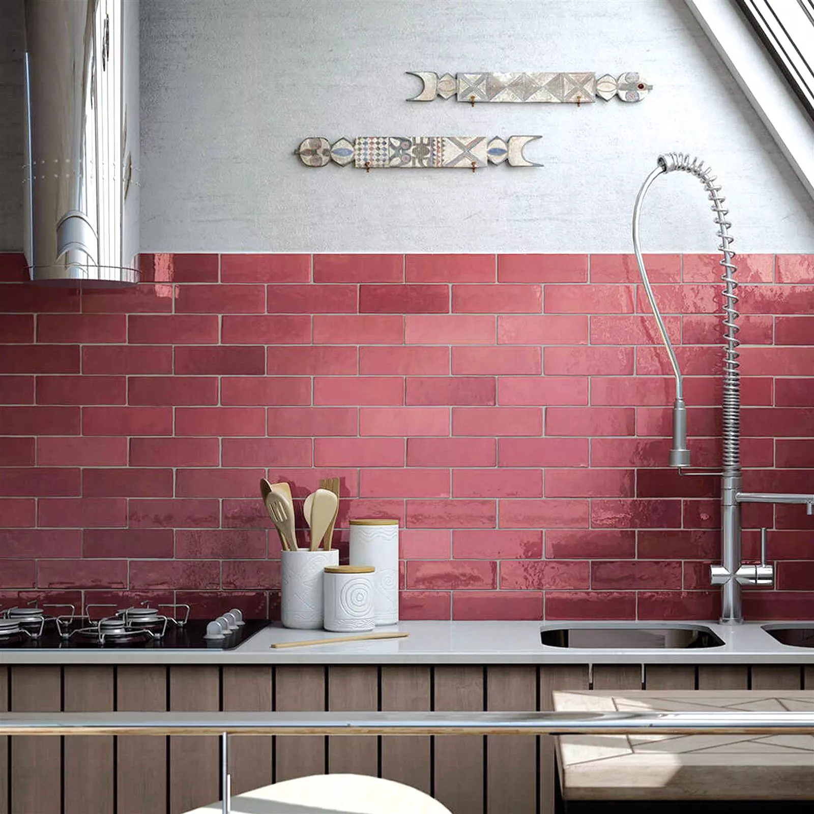 Choose the Concord wall tile in red and create a distinctive accent in your home with its glossy finish and unique wave look.