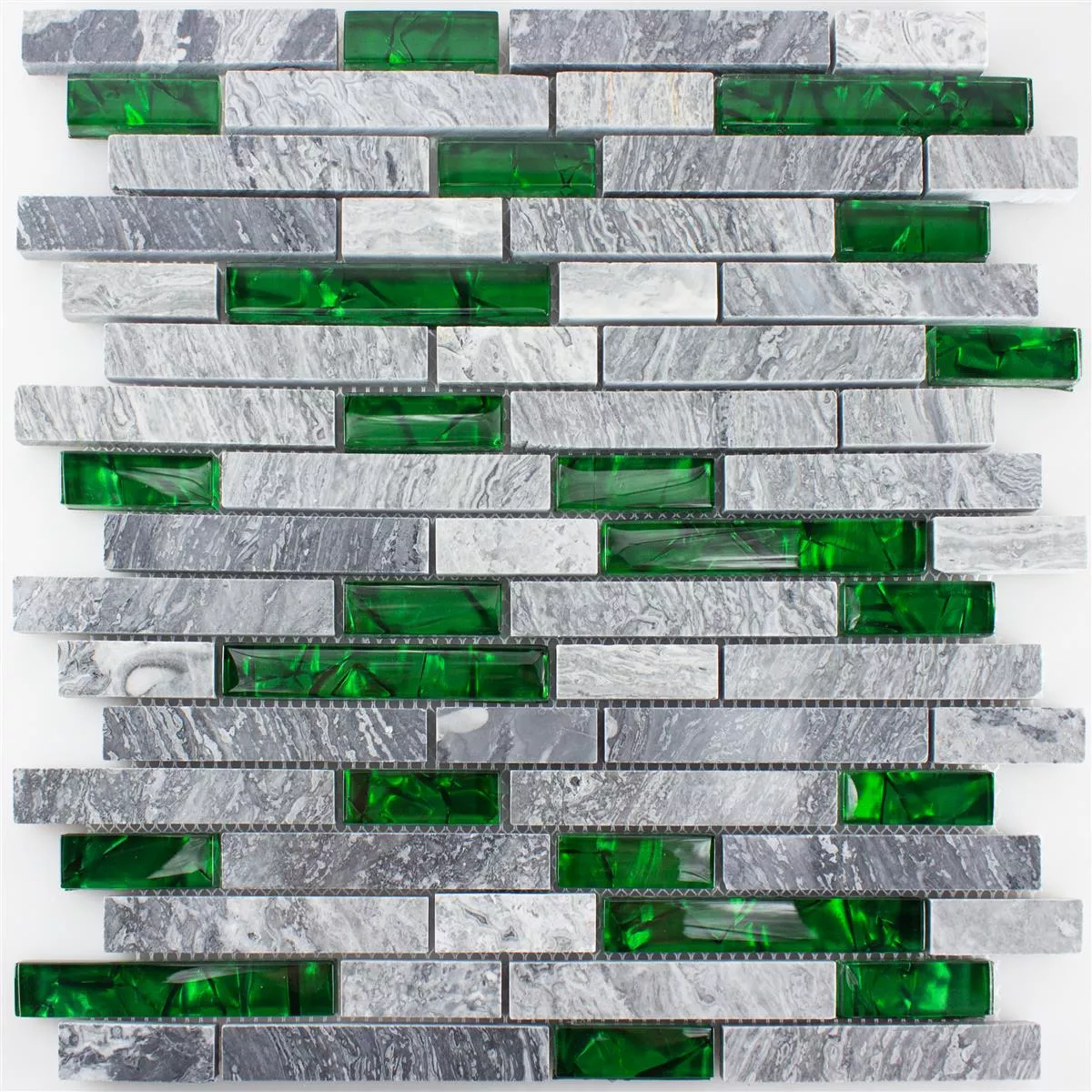 Glass Natural Stone Mosaic Tiles Sinop Grey Green Brick