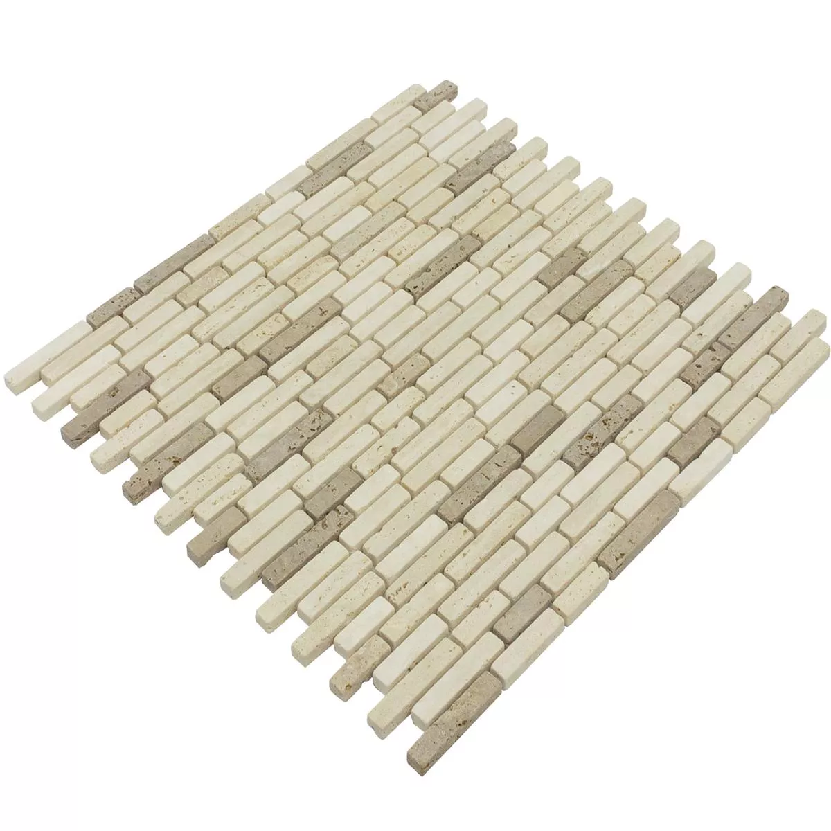 Experience timeless elegance with the marble natural stone mosaic tiles Tuscania Brick Beige. The warm brown tones and beige tones, paired with the matt, unglazed surface and the marble look, create an appealing look. These mosaic tiles, made from natural stone and marble, offer not only visual sophistication but also frost resistance.