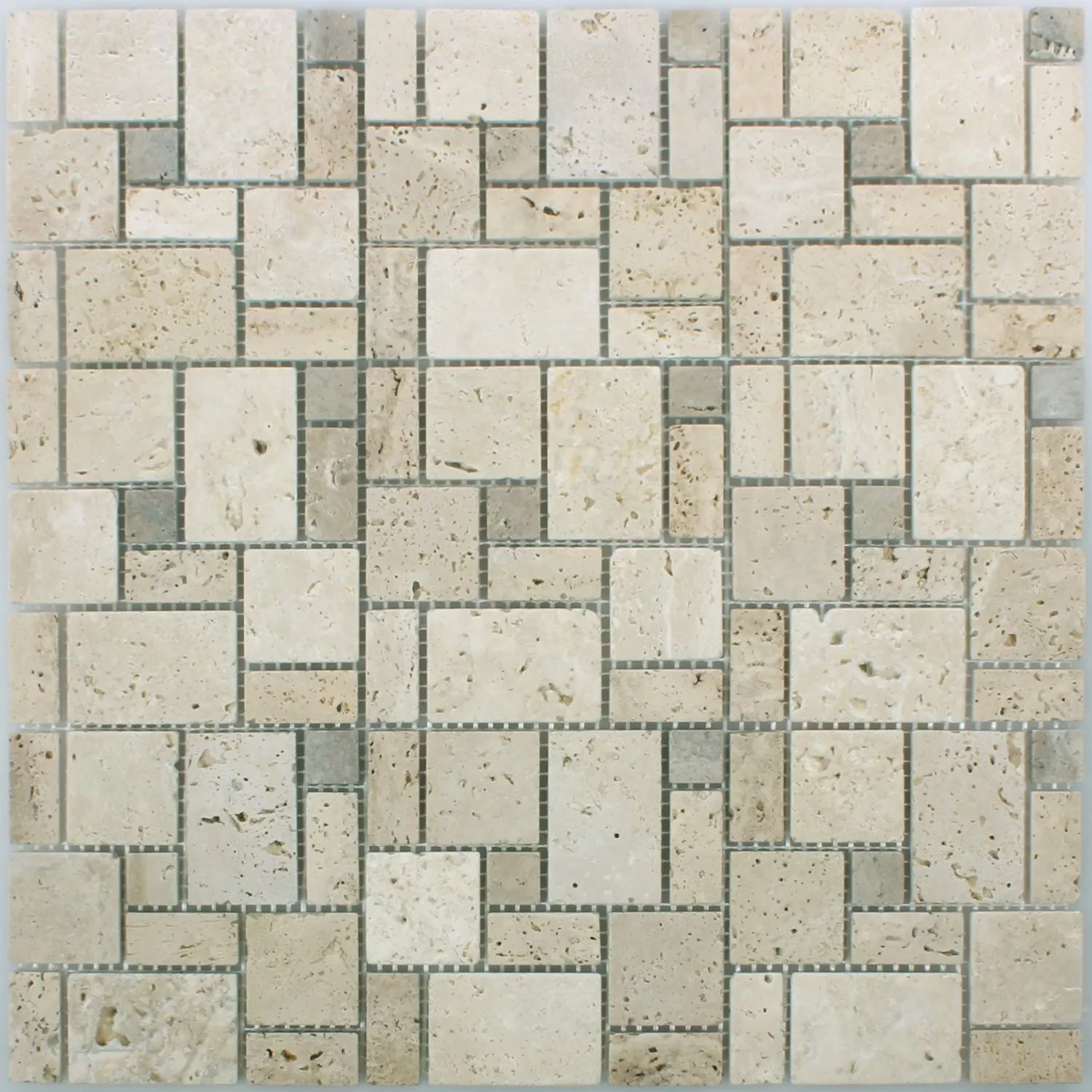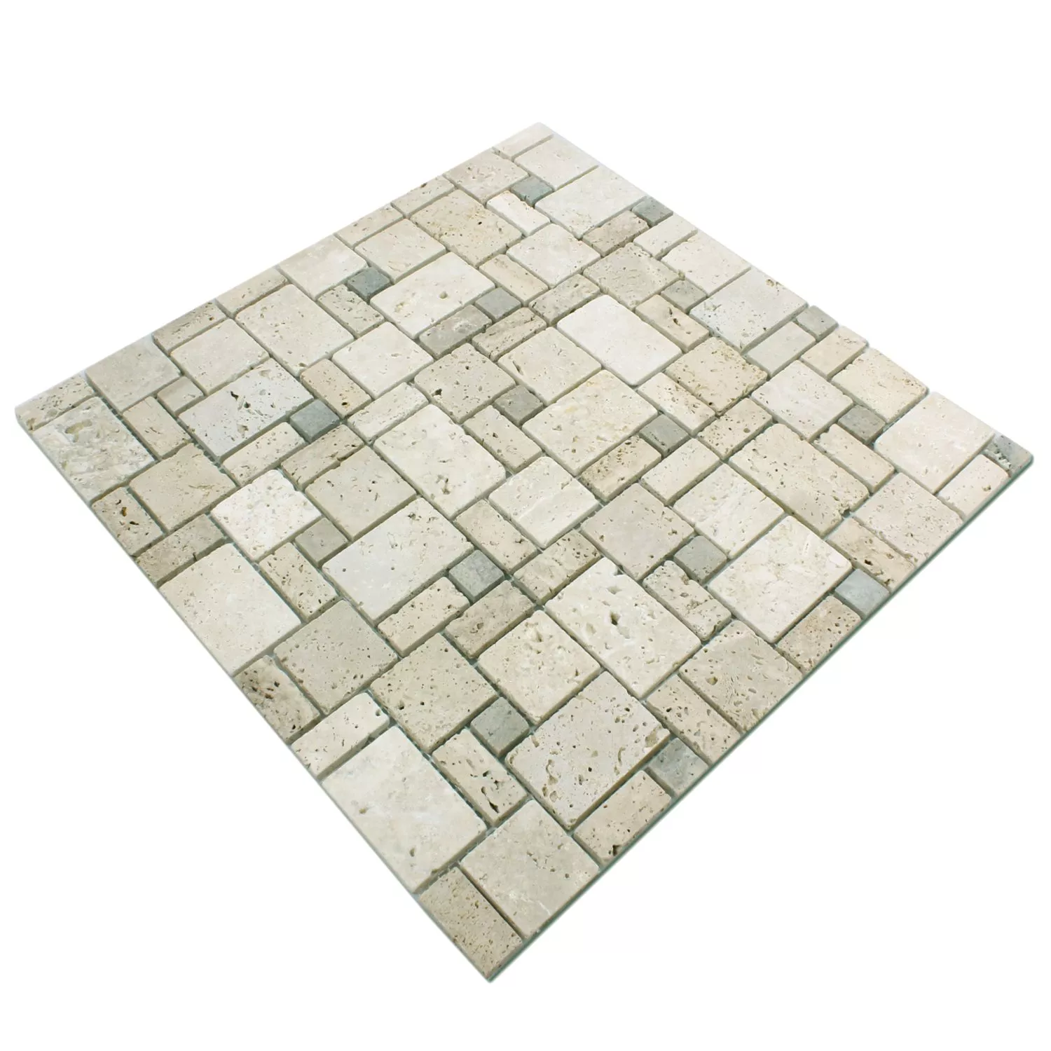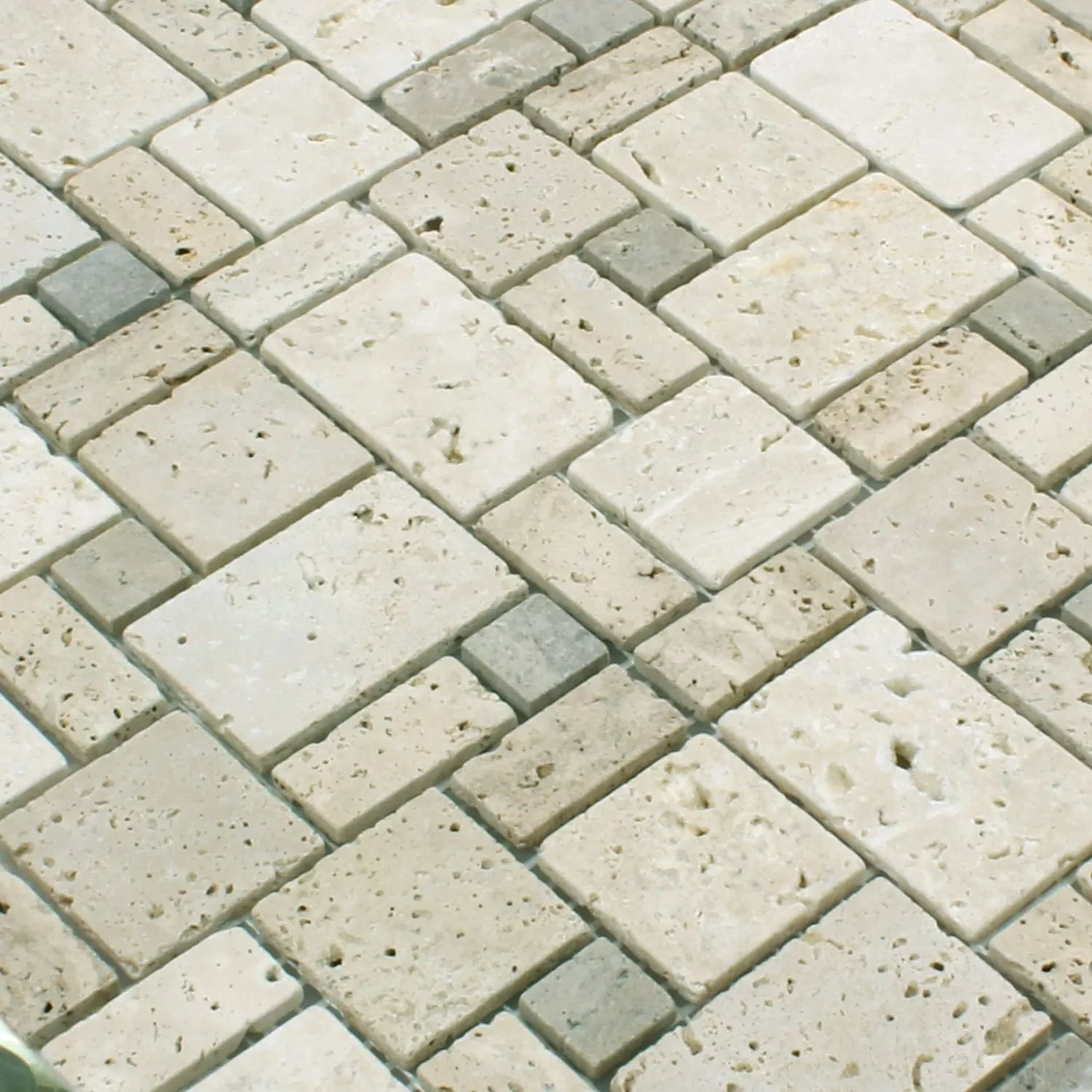 The tiles are available on mats and are made of natural stone. The different beige tones ensure a varied and also very attractive look, no matter which room or area you would like to use the tiles for. Furnish the rooms of your choice with these travertine mosaic tiles and ensure a pleasant, cozy and warm ambience paired with an easy-care surface. As an alternative to beige, you can also order these tiles in grey.