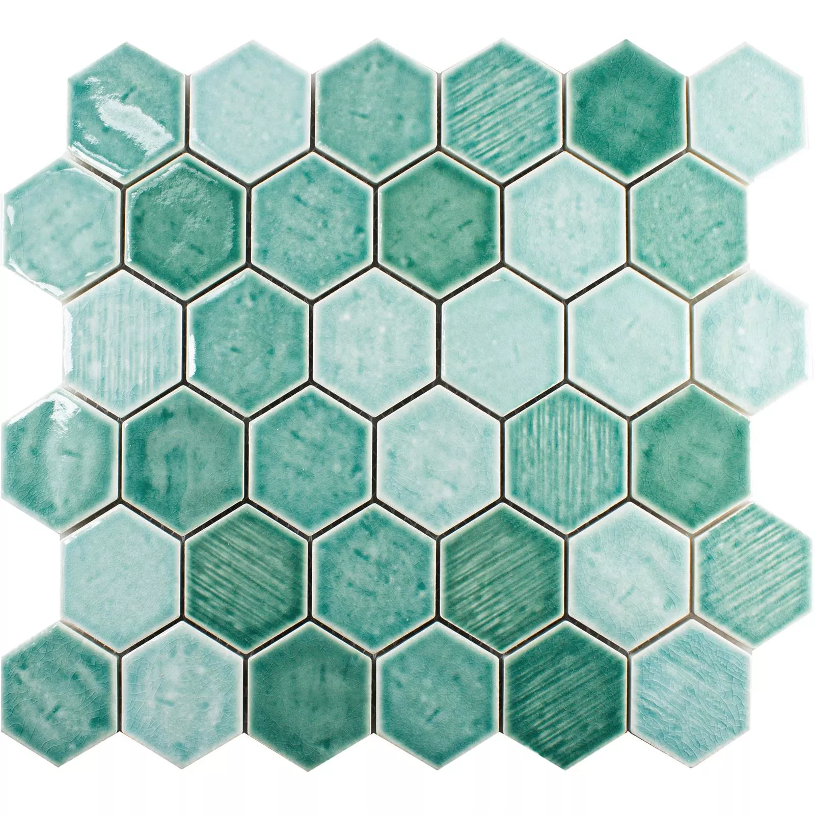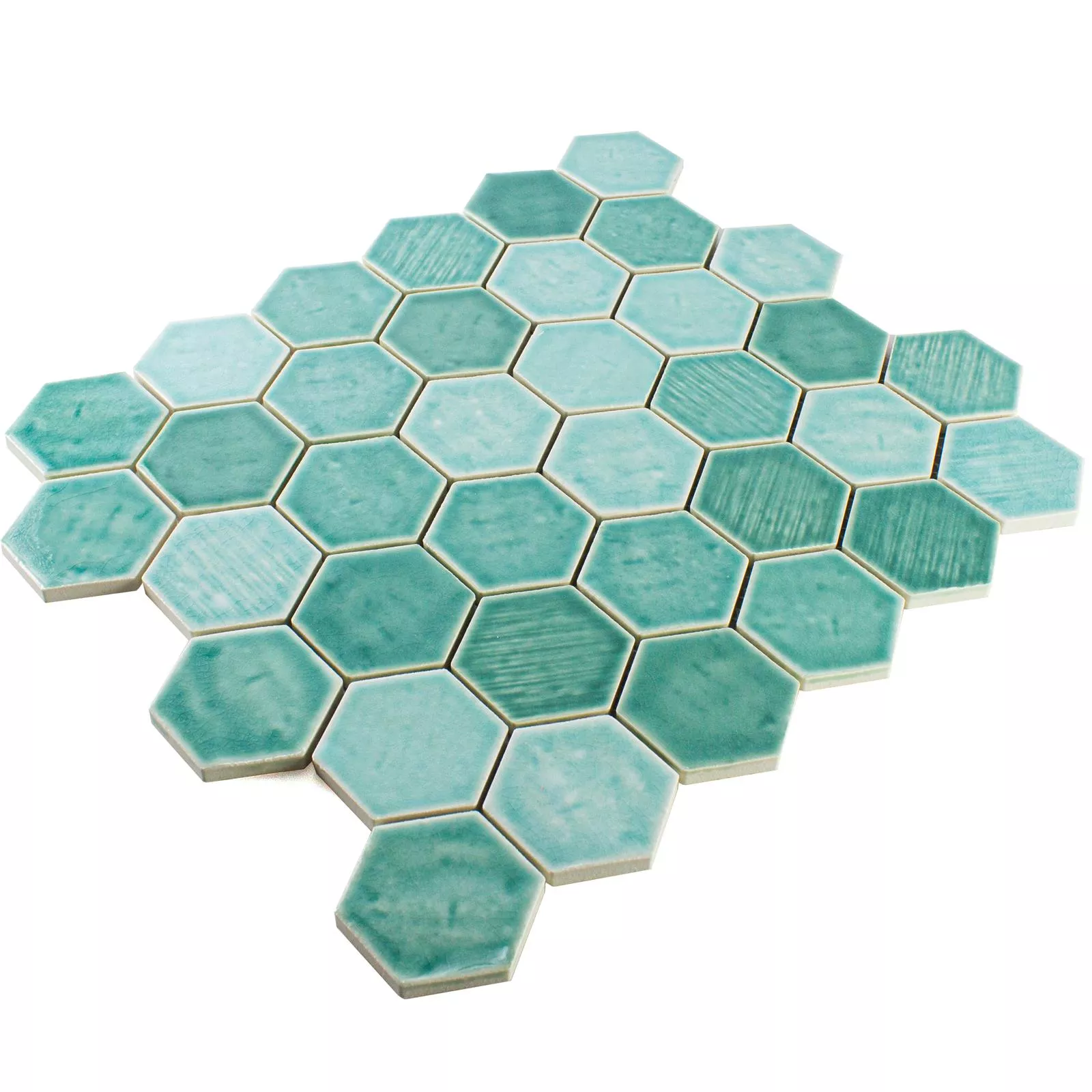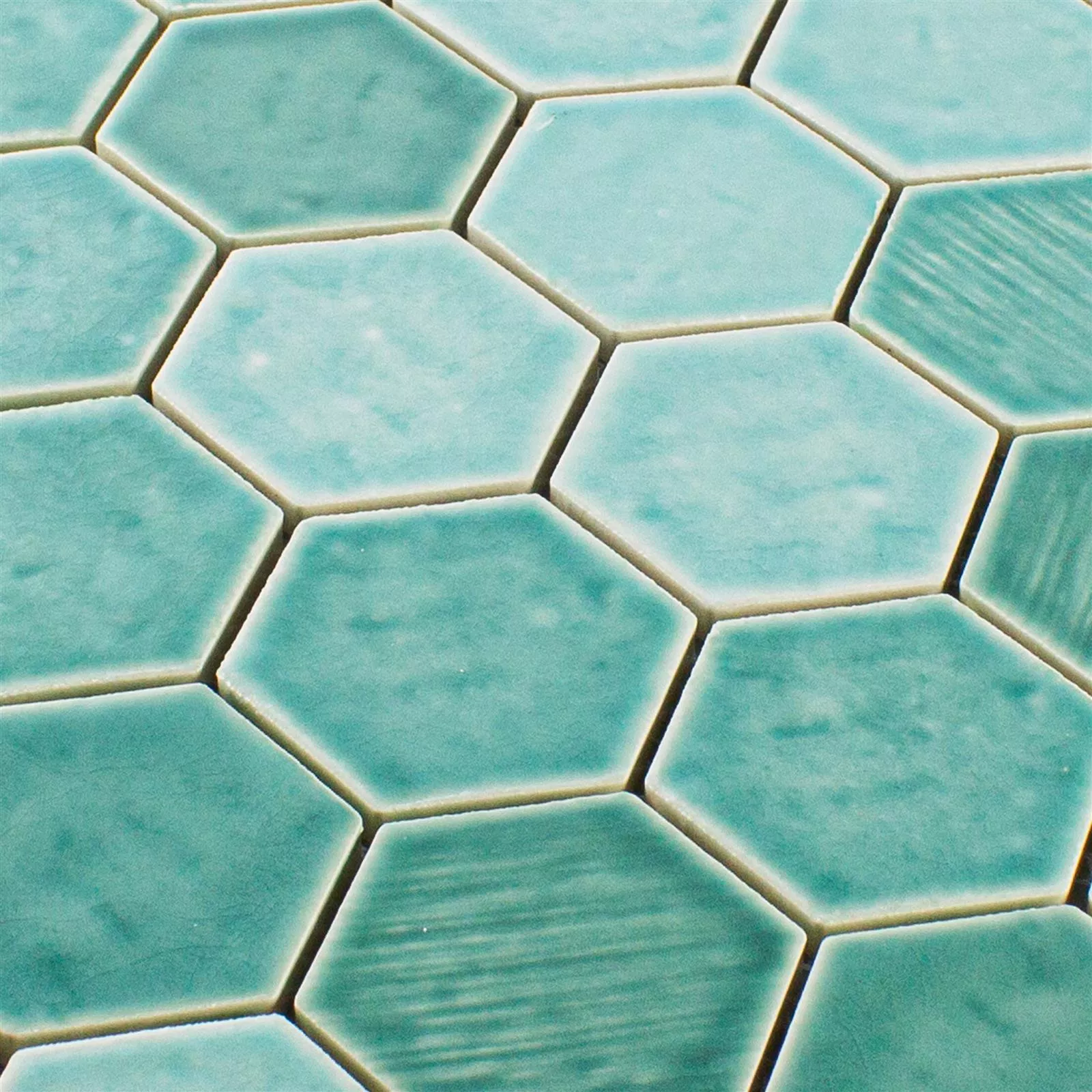 Sample Ceramic Mosaic Tile Roseburg Hexagon Glossy Cyan