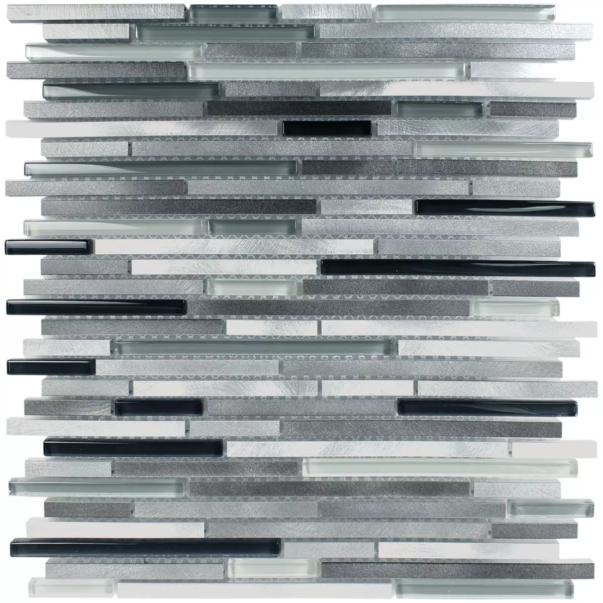 Sample Glass Metal Mosaic Tiles Freeway Black Silver