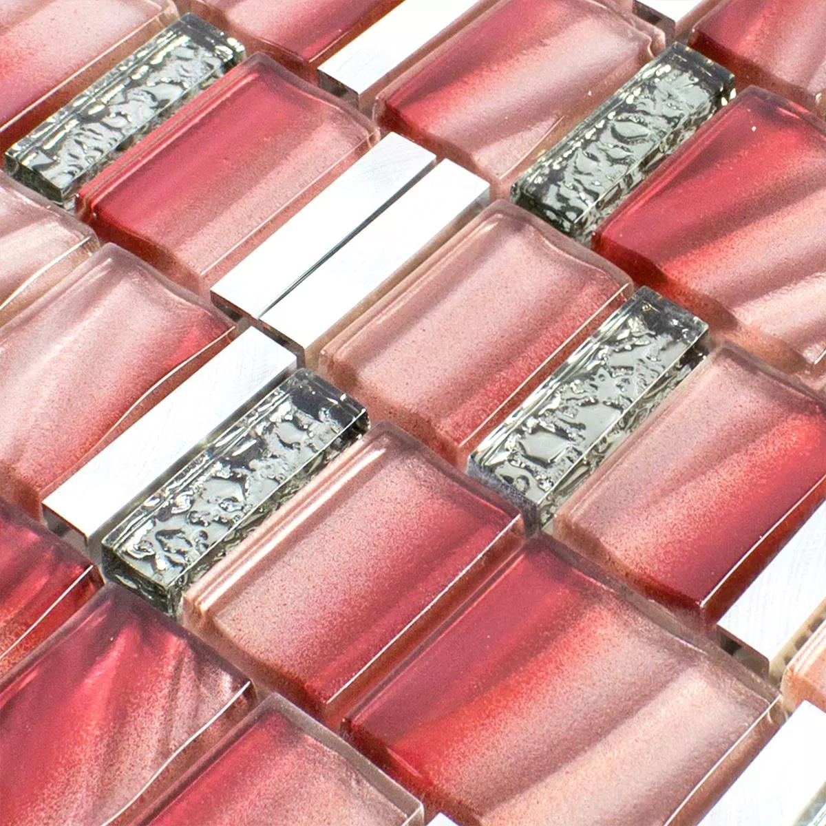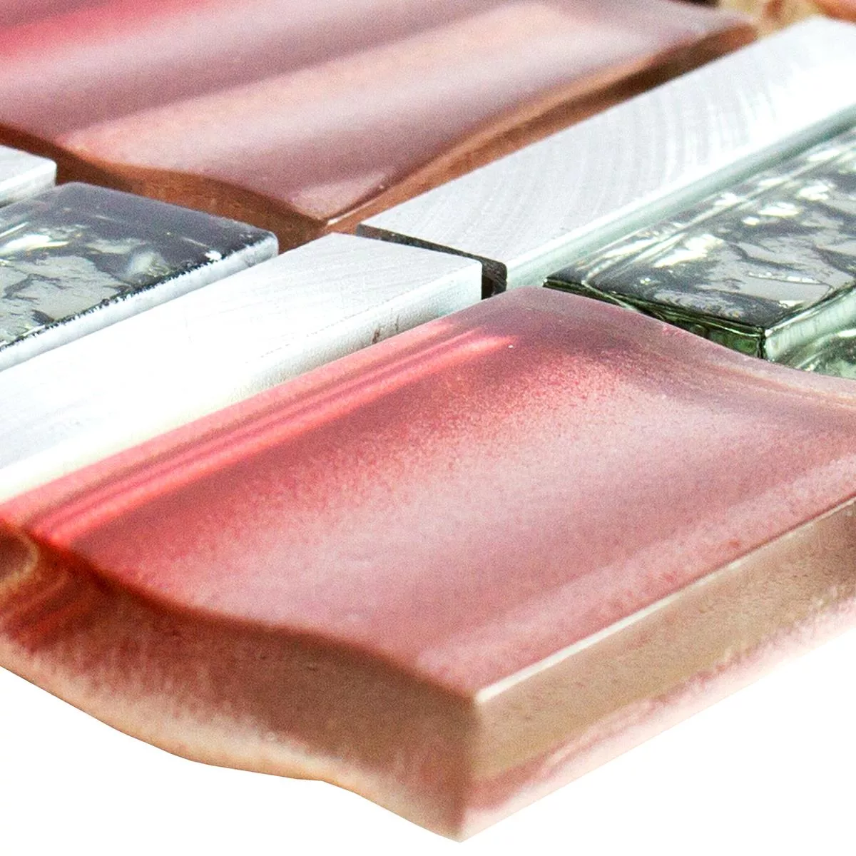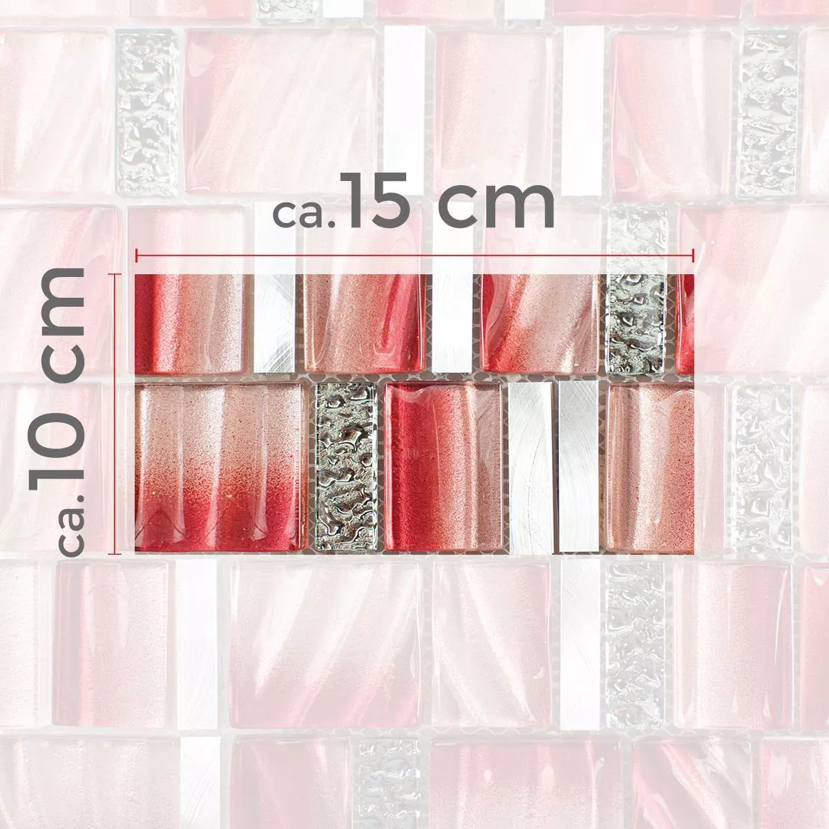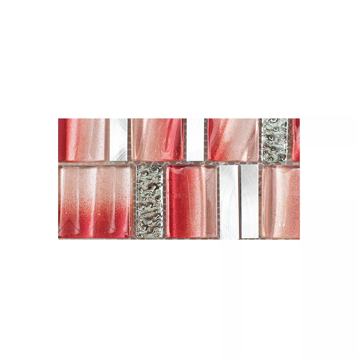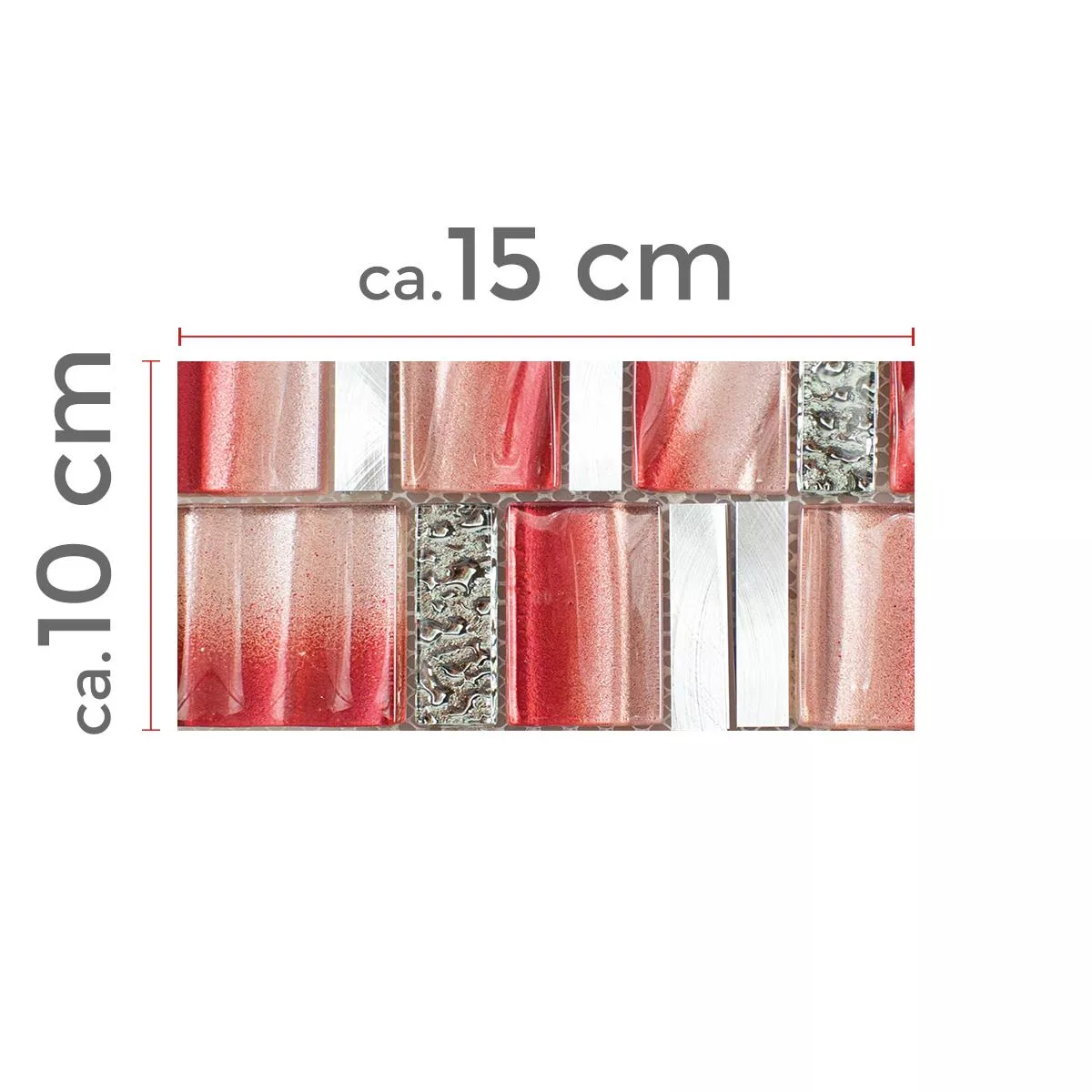 Sample Glass Metal Mosaic Tiles Union Red Silver