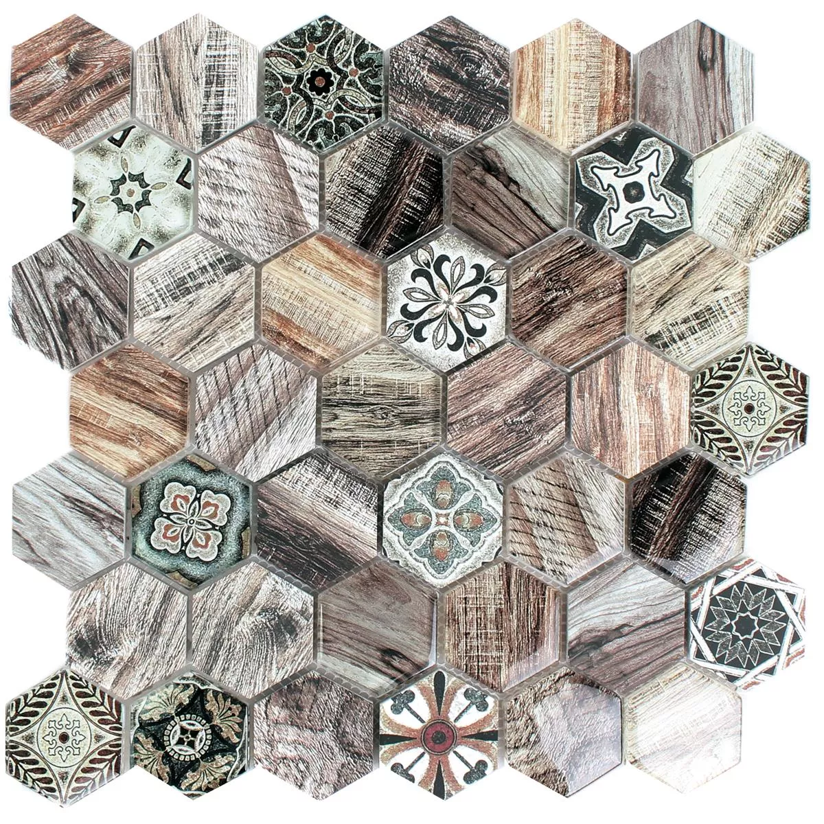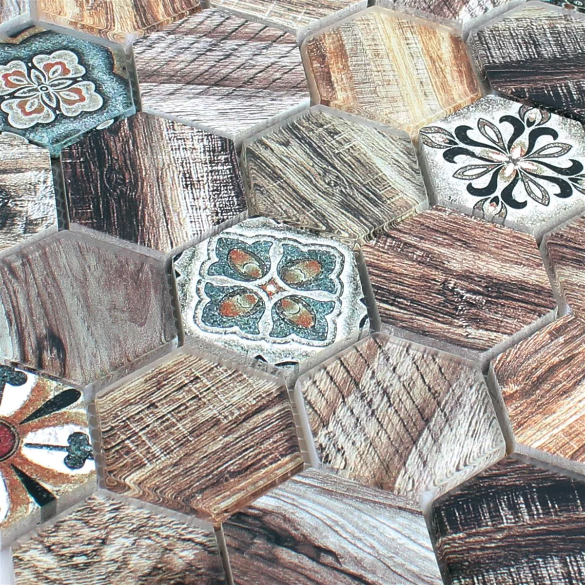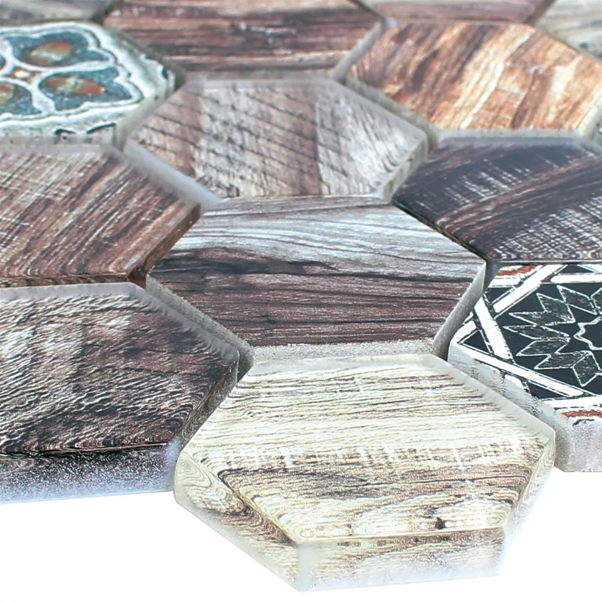 Sample Glass Natural Stone Mosaic Eritrea Wood Optic Brown Grey