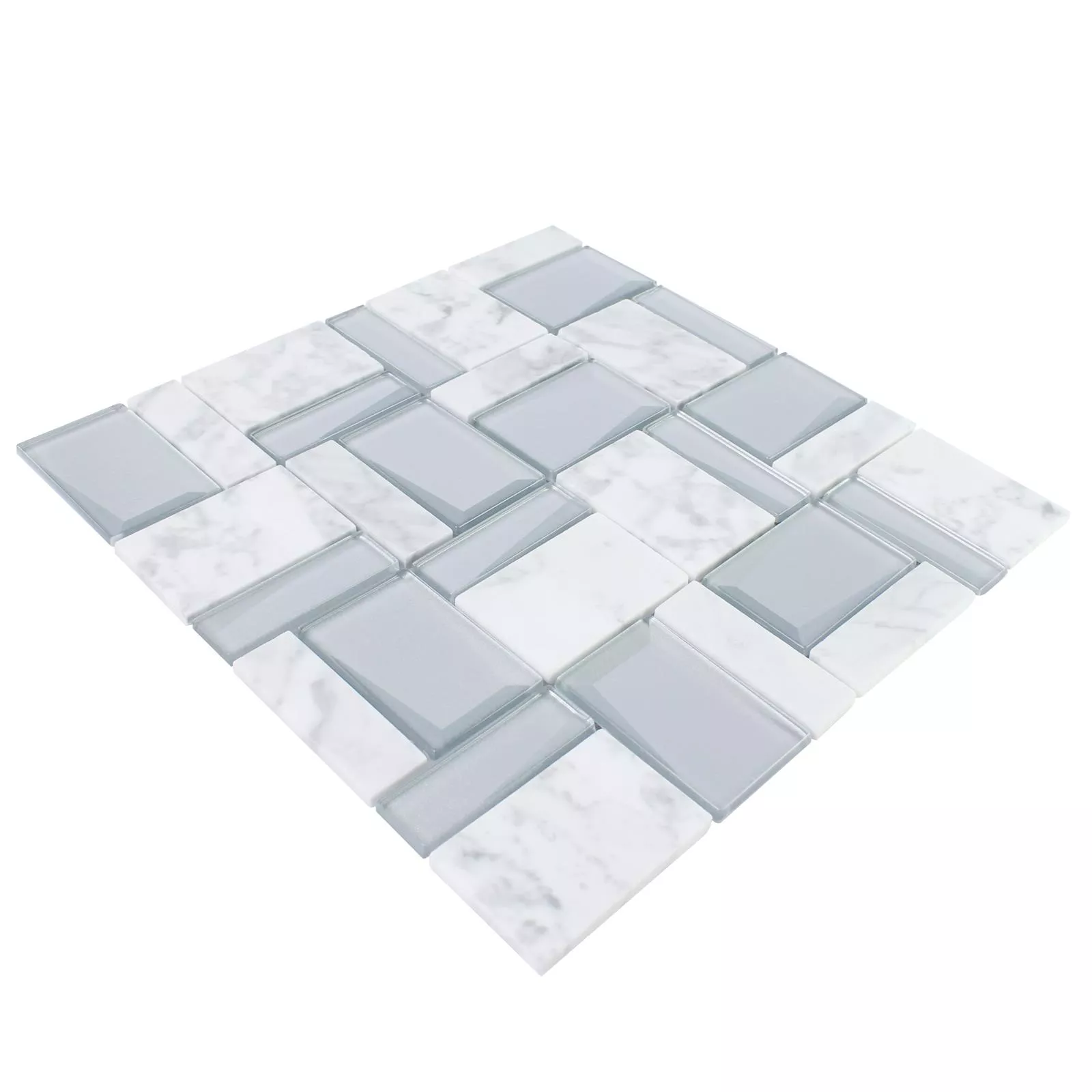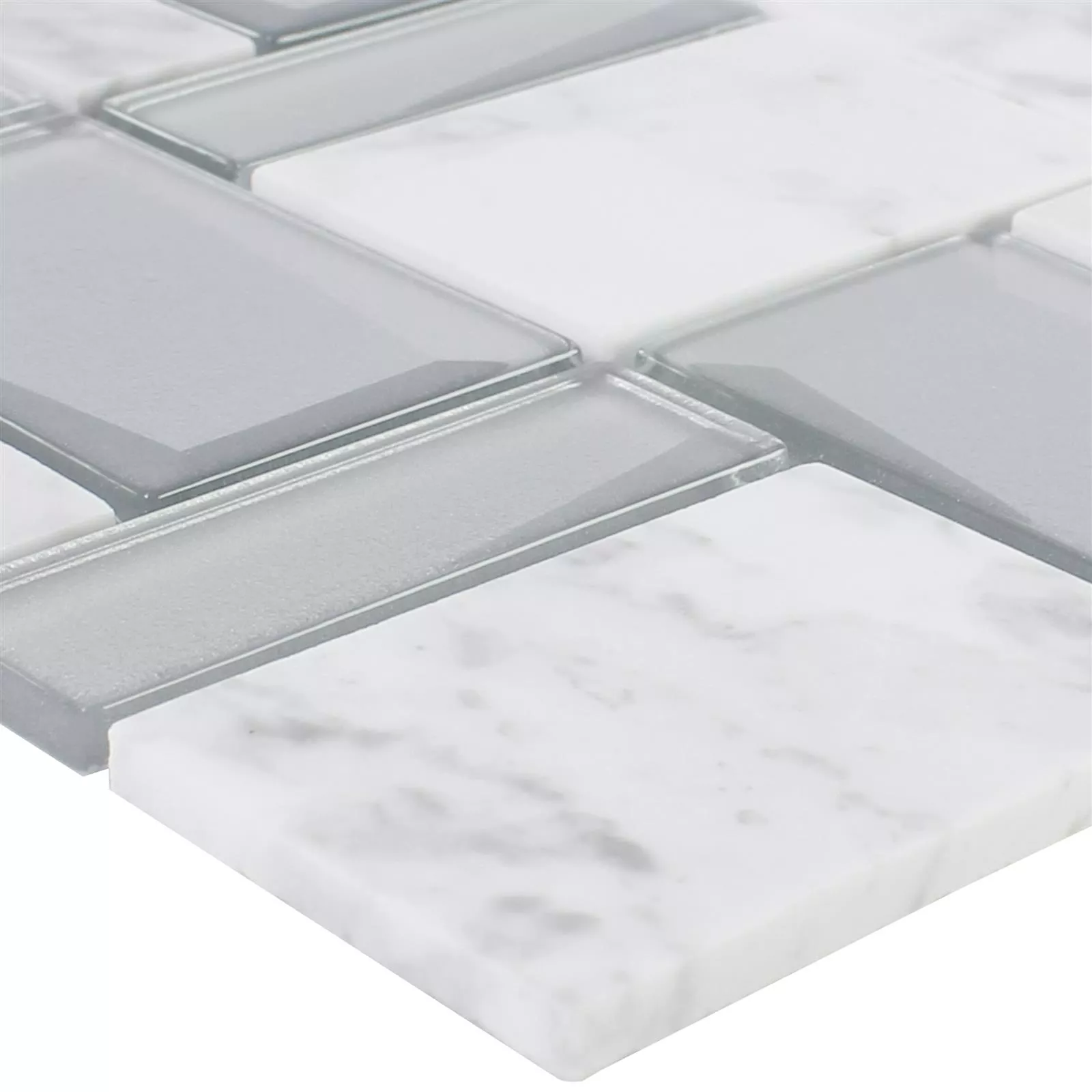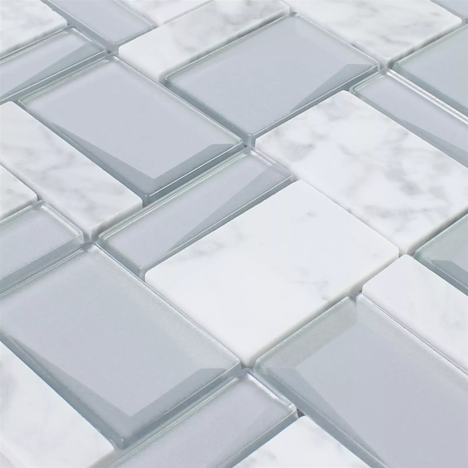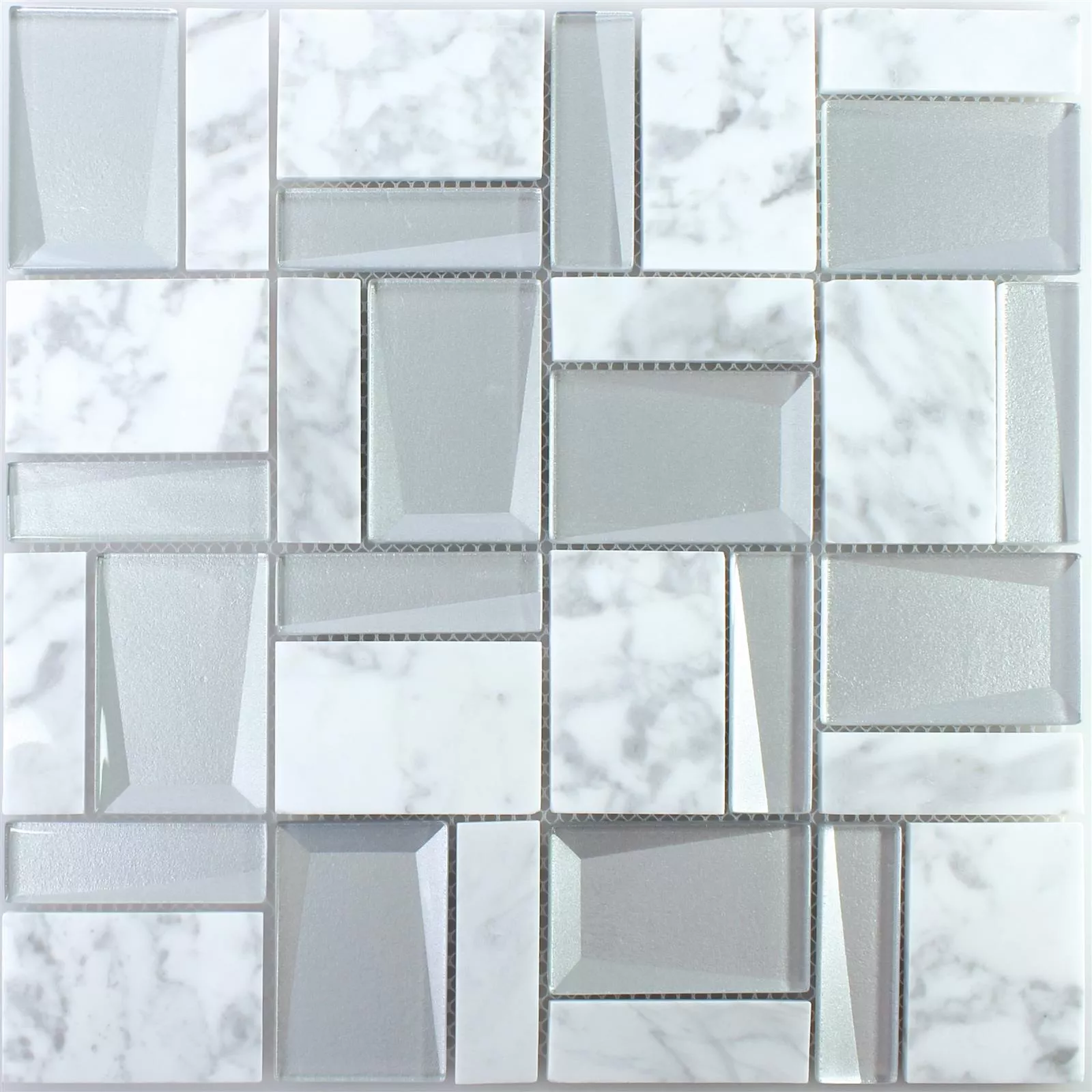 Sample Glass Natural Stone Mosaic Lapseki White Silver