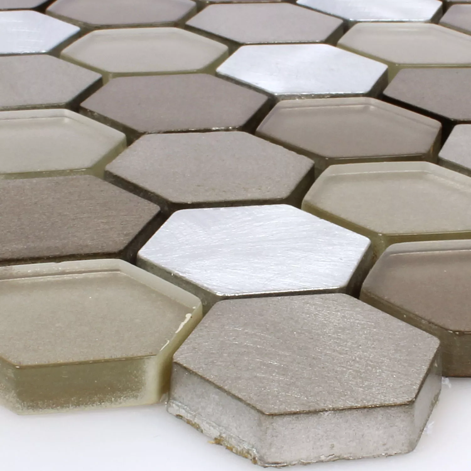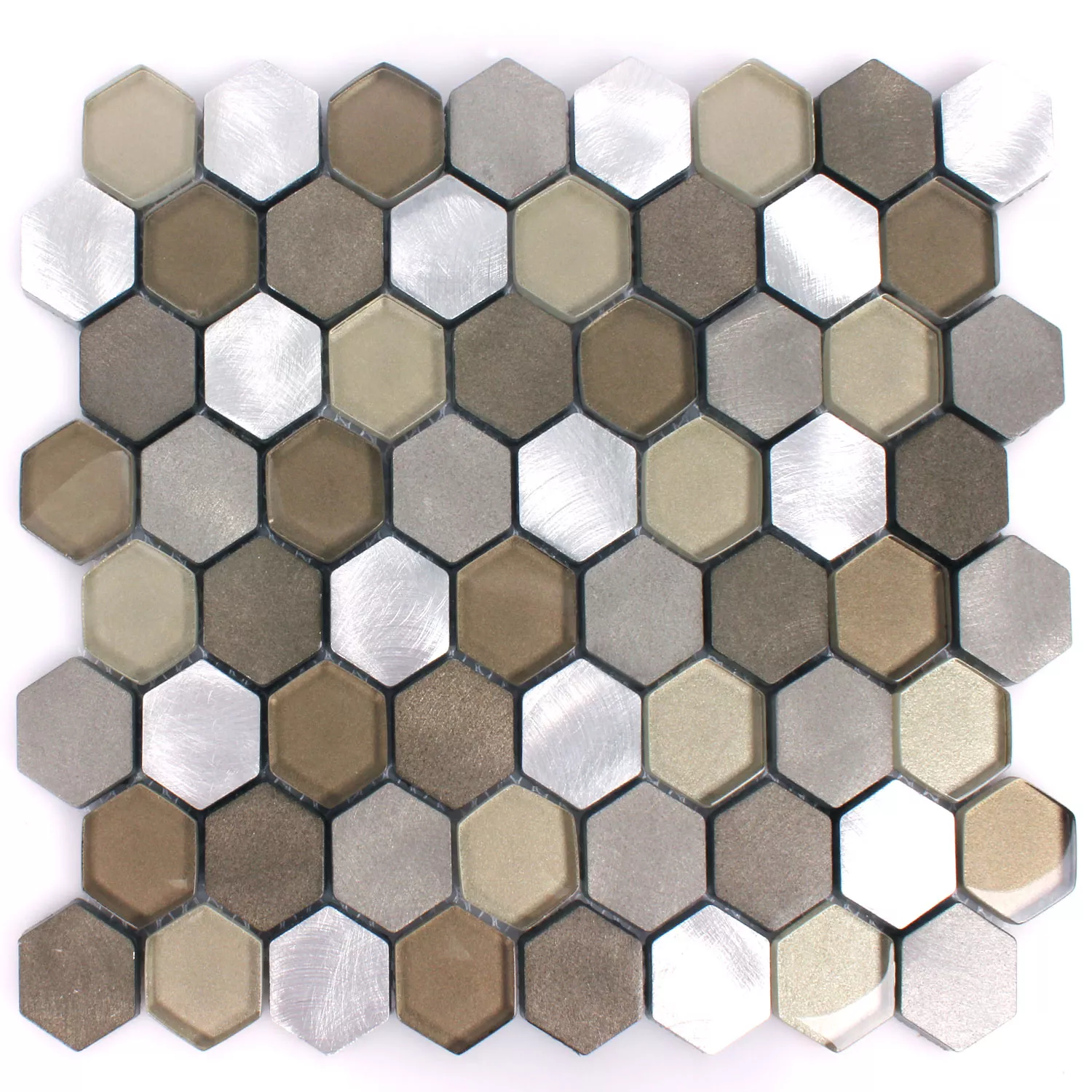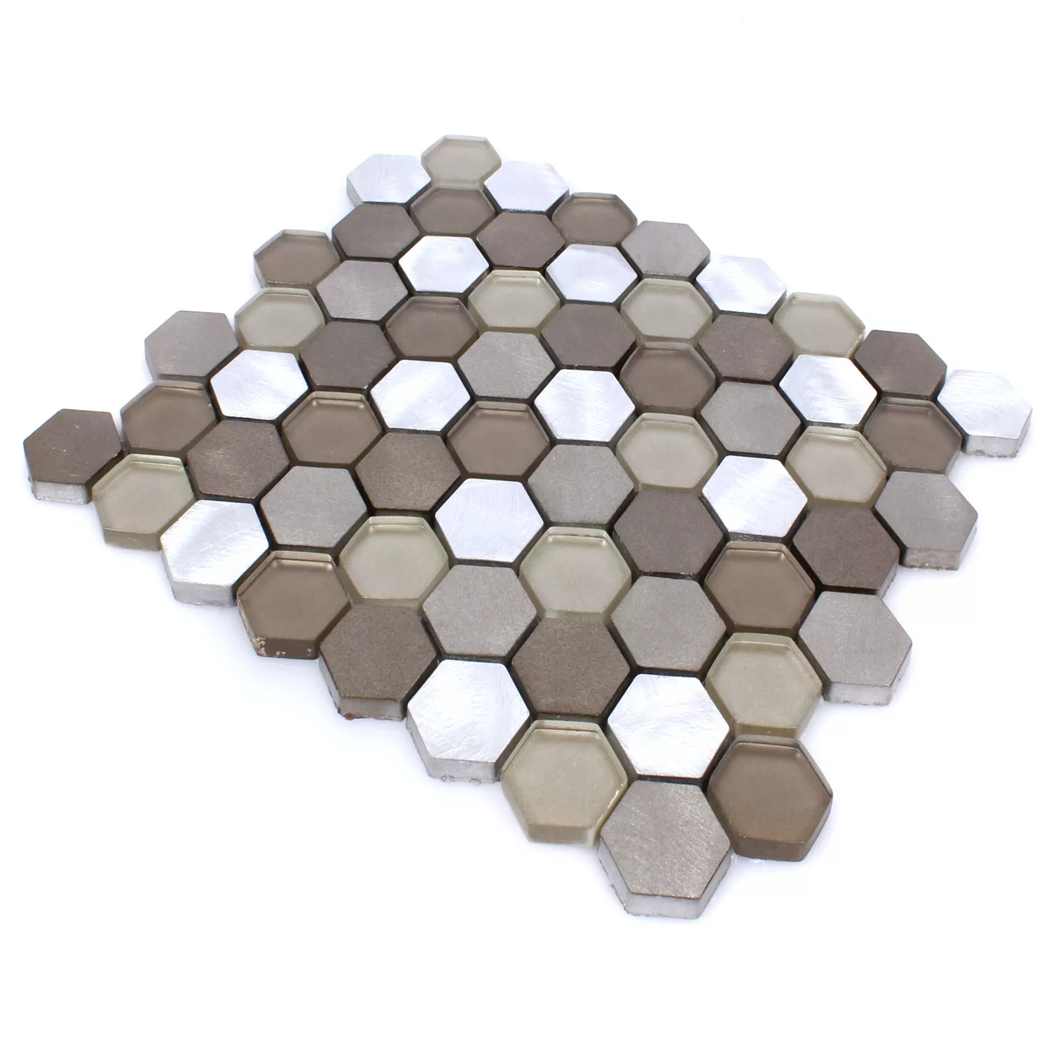 Sample Mosaic Tiles Glass Alu Angela Hexagon Brown Silver