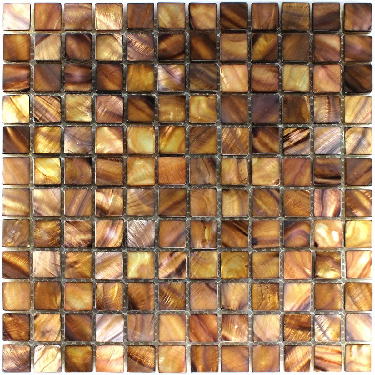 Sample Mosaic Tiles Glass Nacre Effect Brown Gold