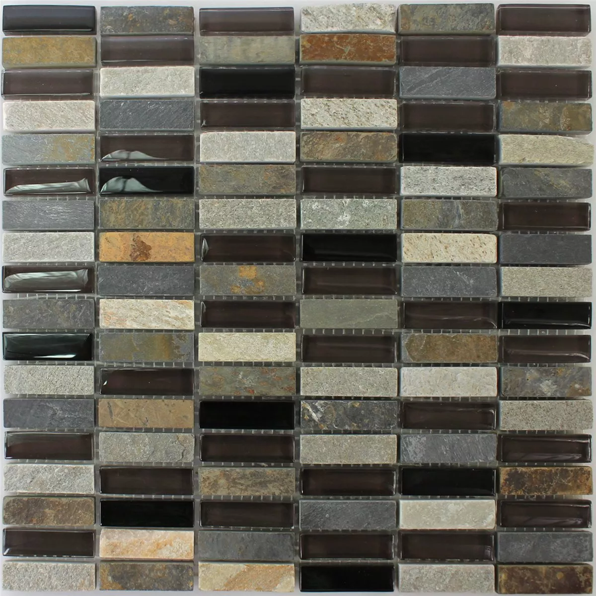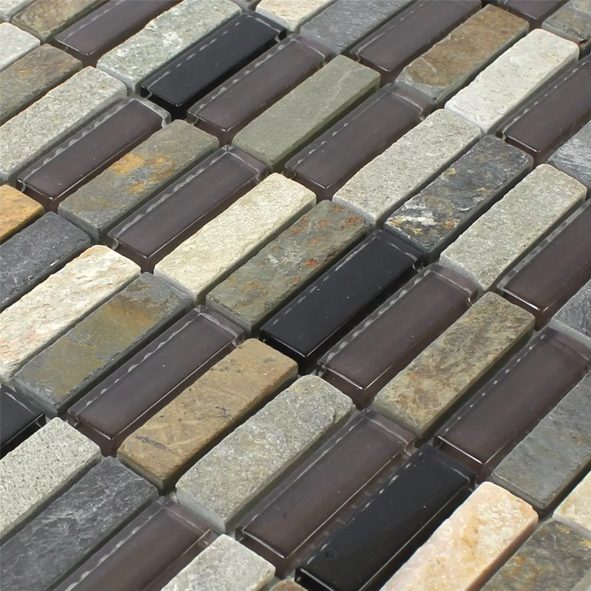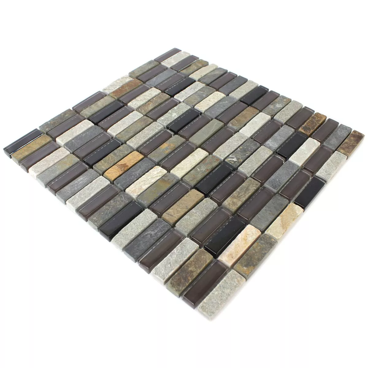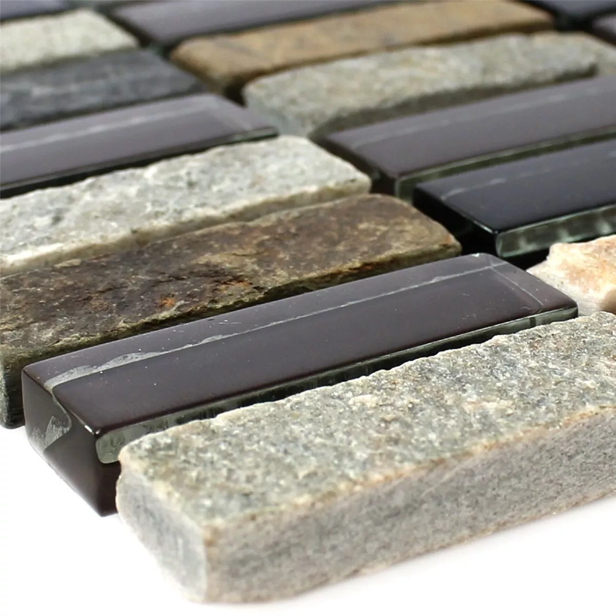Sample Mosaic Tiles Glass Quartzite Natural Stone Grey Brown