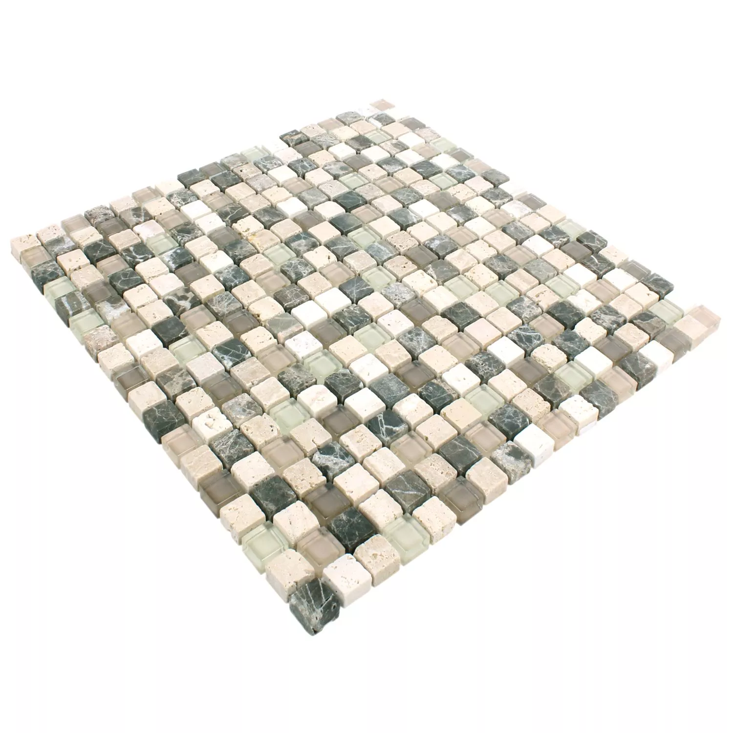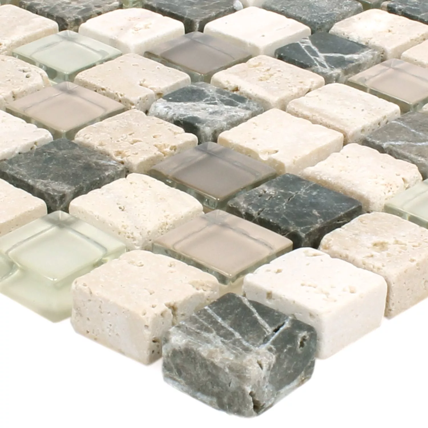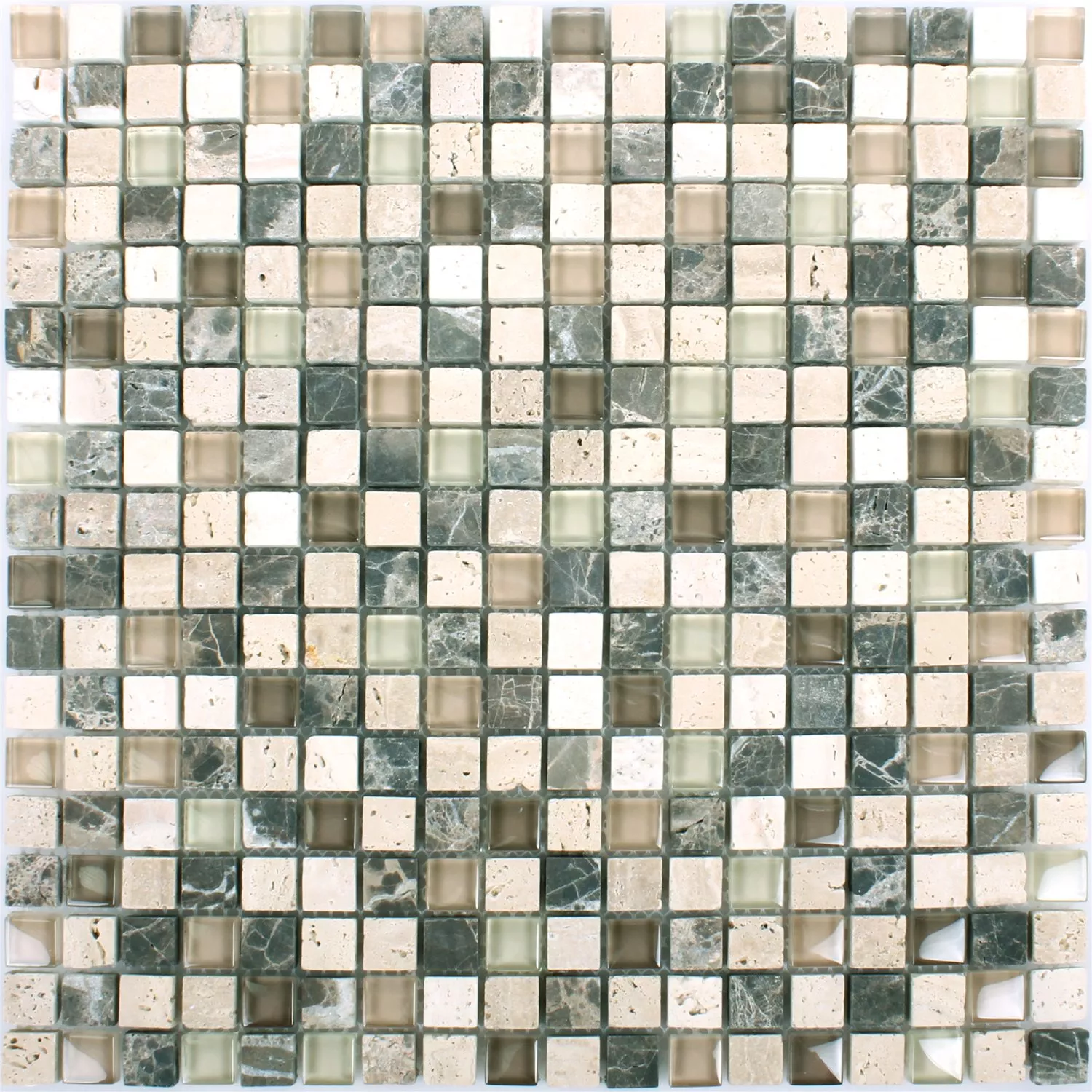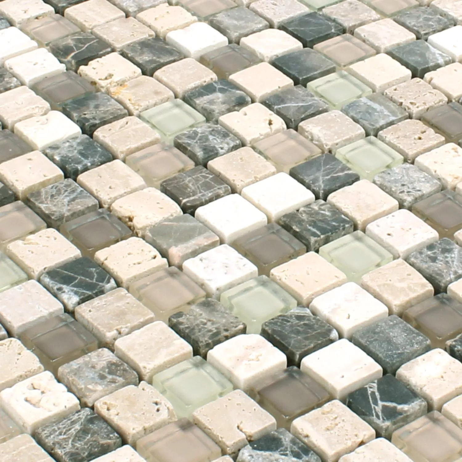 Sample Mosaic Tiles Milos Glass Natural Stone Mix Brown Beige Quadrat