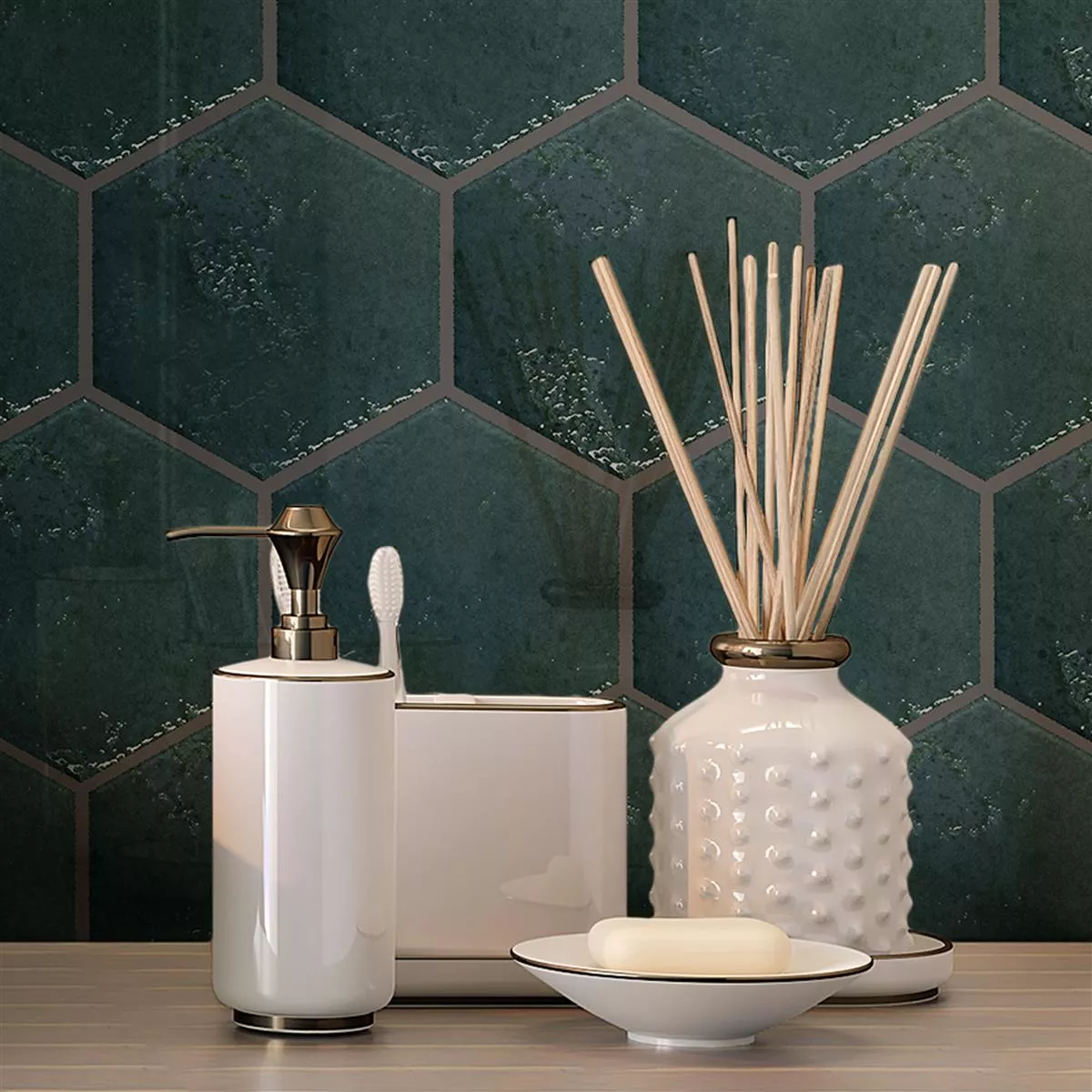 With a thickness of 7 mm, the tile is robust and versatile - ideal for bathrooms, showers, kitchens and living rooms. The hexagonal format (13 x 15 cm) enables a modern, geometric design and gives your walls a stylish structure.