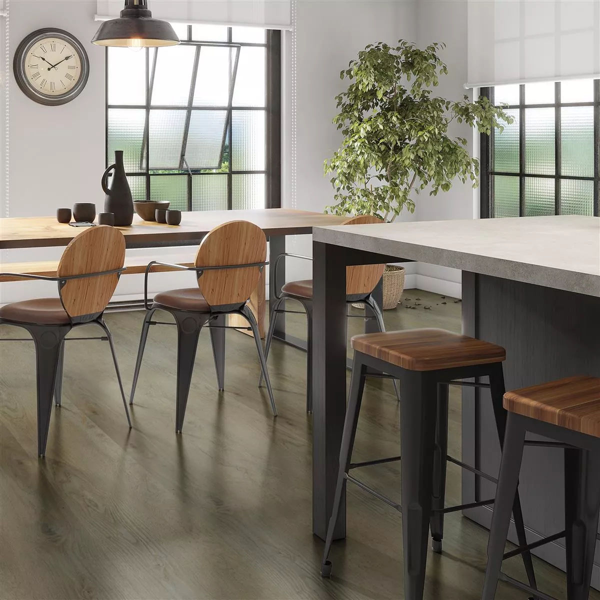 The Hollywood click system vinyl flooring in warm brown gives your rooms a cozy and timelessly elegant look. This high-quality flooring combines an attractive wooden look with modern comfort to create an inviting atmosphere.
