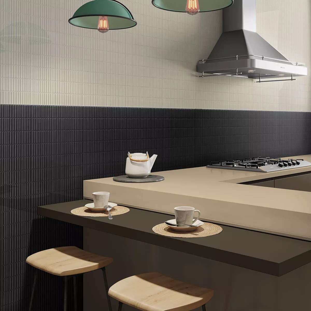 The striking relief structure gives these glazed earthenware tiles a fascinating dimension that brings your walls to life. In the timeless colour black and with a glossy surface, they bring a touch of luxury and sophistication to any room.