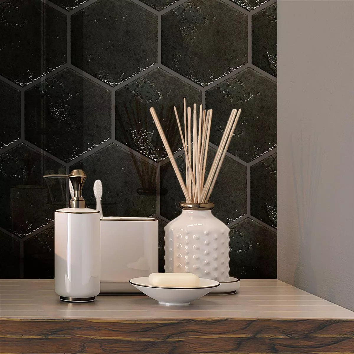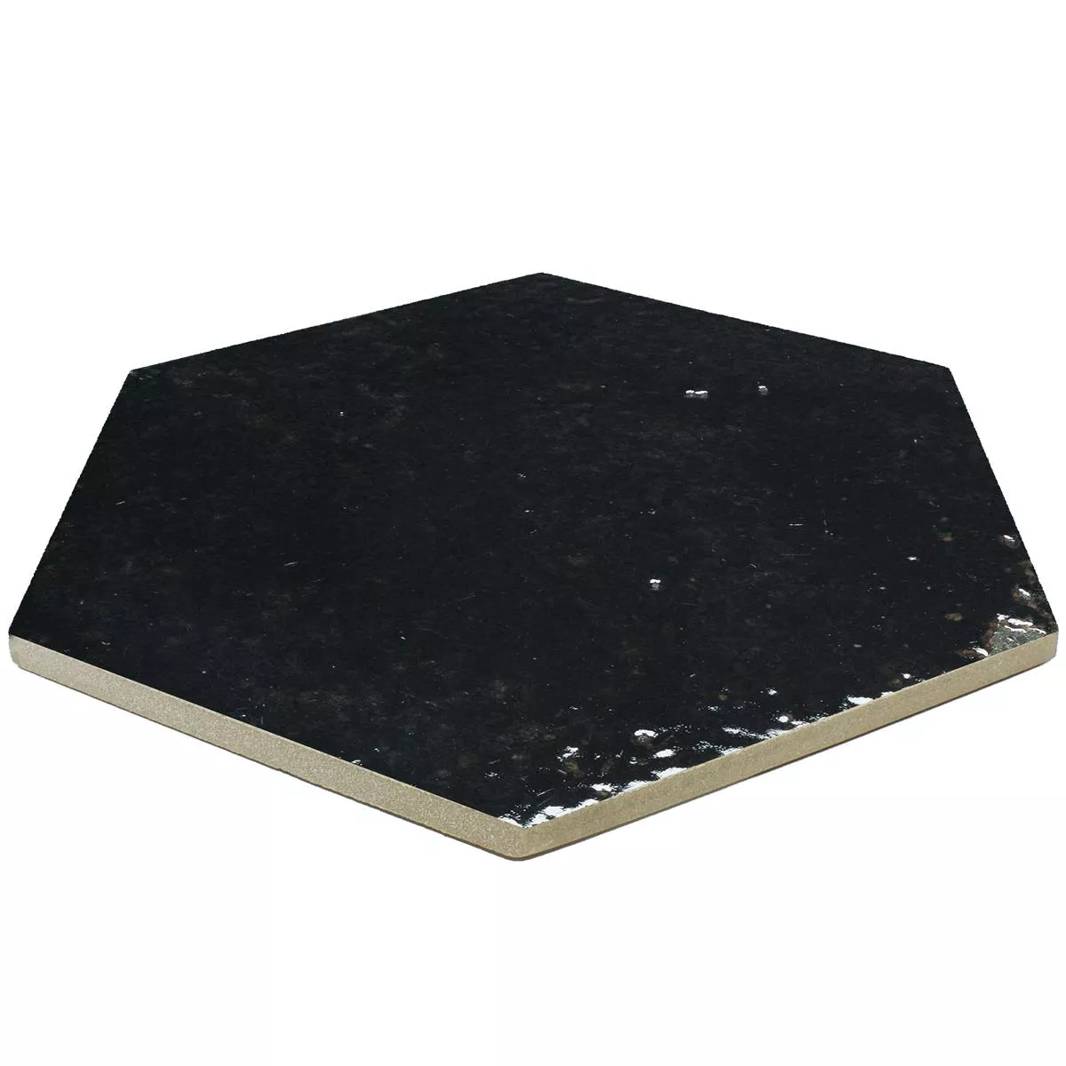 Wall Tiles Lara Glossy Waved 13x15cm Hexagon Black
