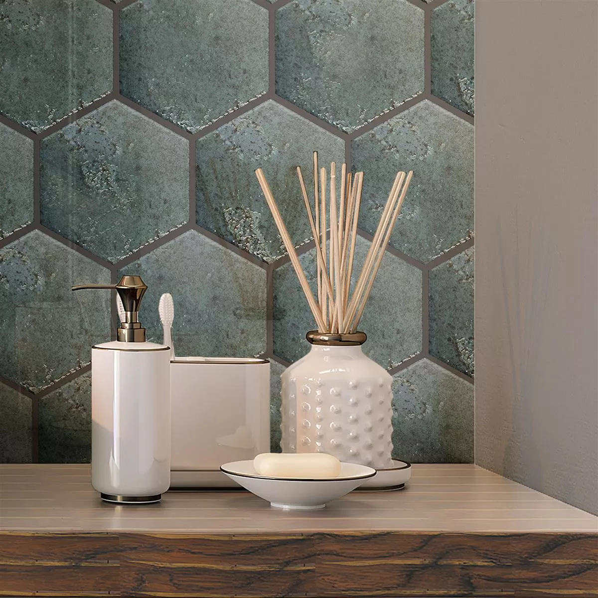 With a thickness of 7 mm, the tile is robust and ideal for numerous applications, including bathrooms, showers, kitchens and living rooms. The hexagonal format (13 x 15 cm) brings a modern geometric aesthetic to your rooms and can be combined flexibly.
