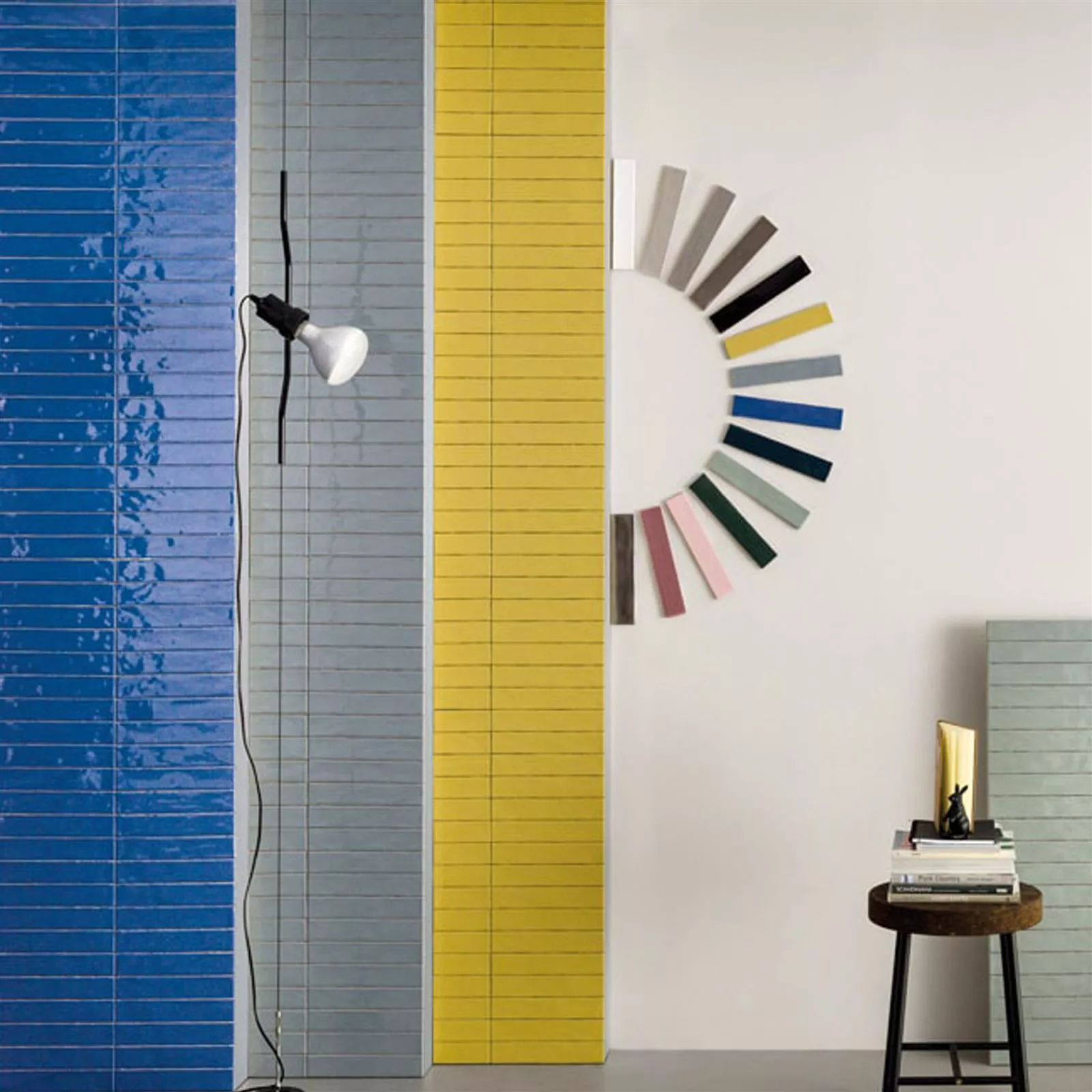 Wall tiles Montreal in different colors, with a wavy, glazed surface made of earthenware. Shiny surface with natural edge.